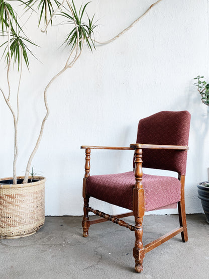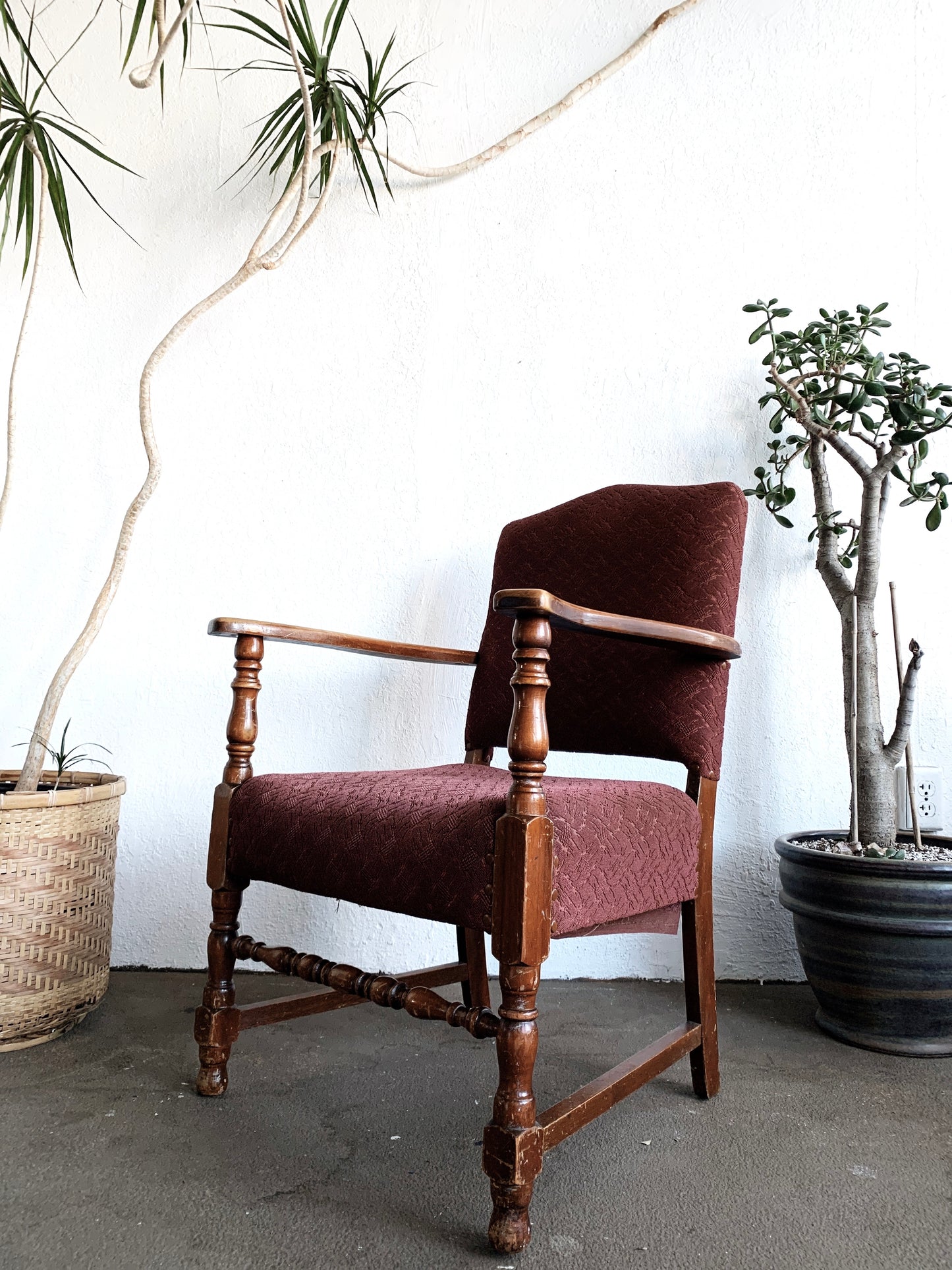 Wonderful upholstered arm chair with super clean fabric and sturdy! The only issue with this lovely is scratches and dings to the wood legs. She’s a Beaty though! Elegant and classy. Local pickup only