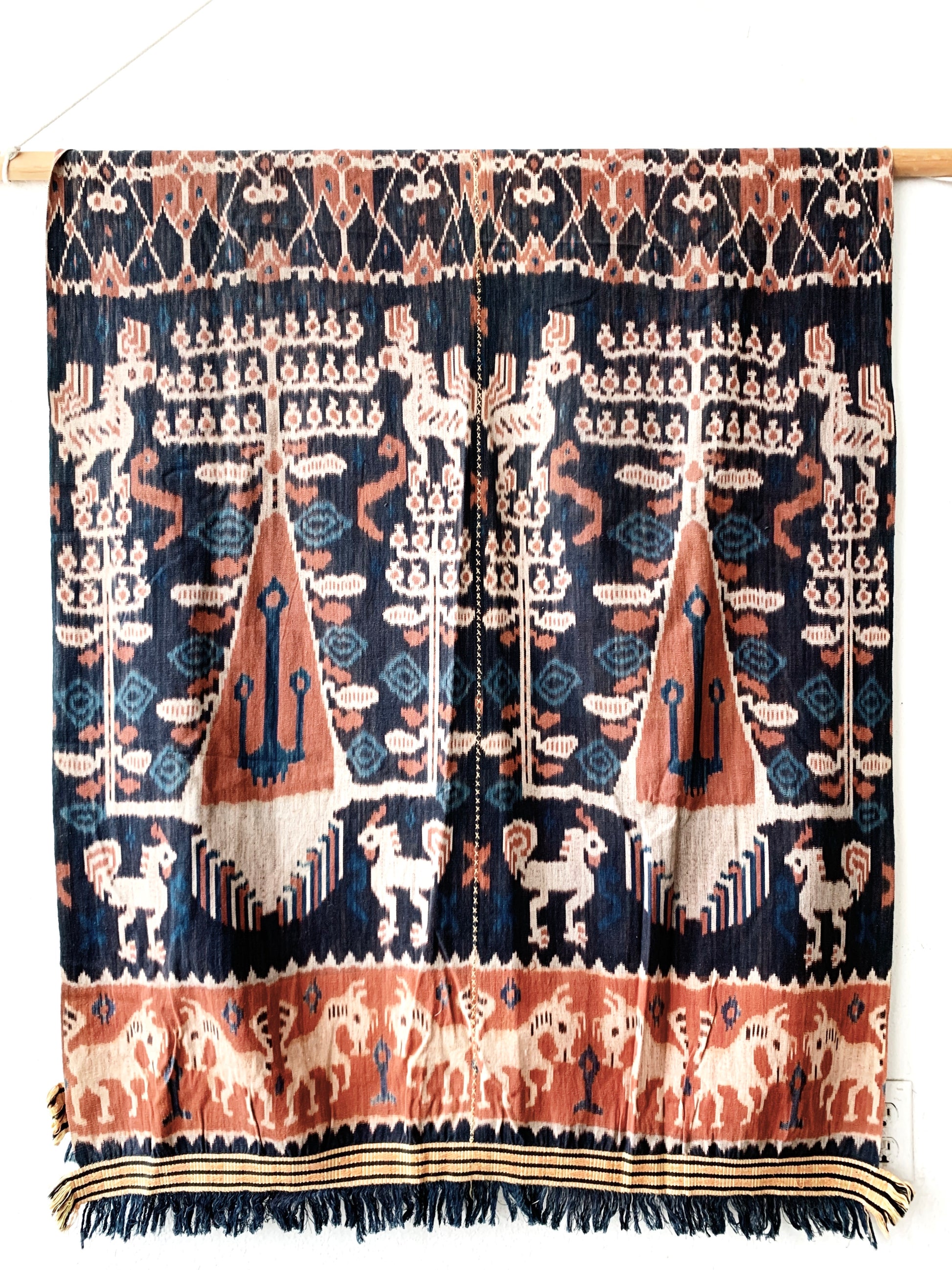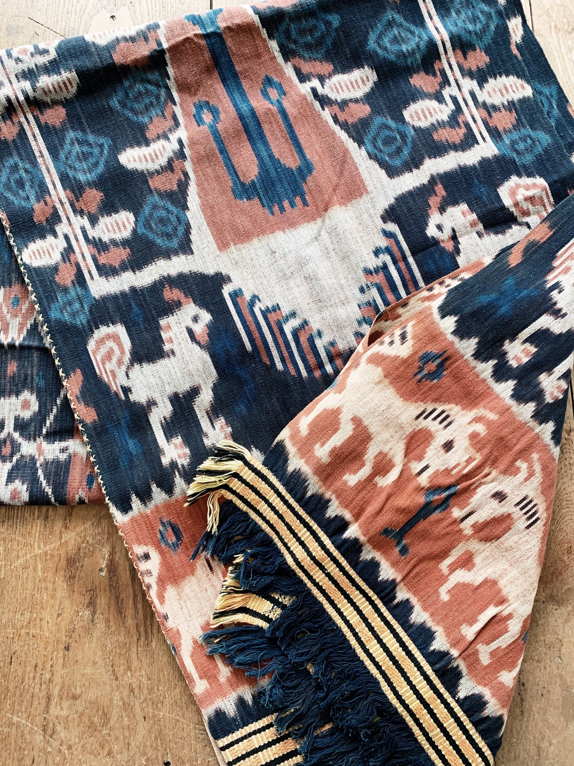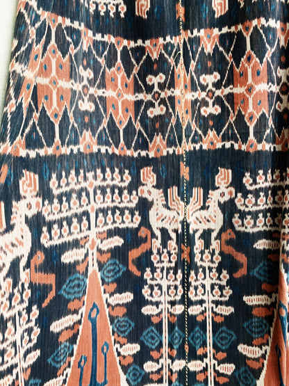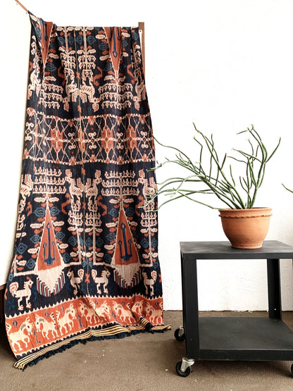 Such a beautiful work of art. From the mid century, naturally hand dyed and stitched large ikat textile. Excellent condition.