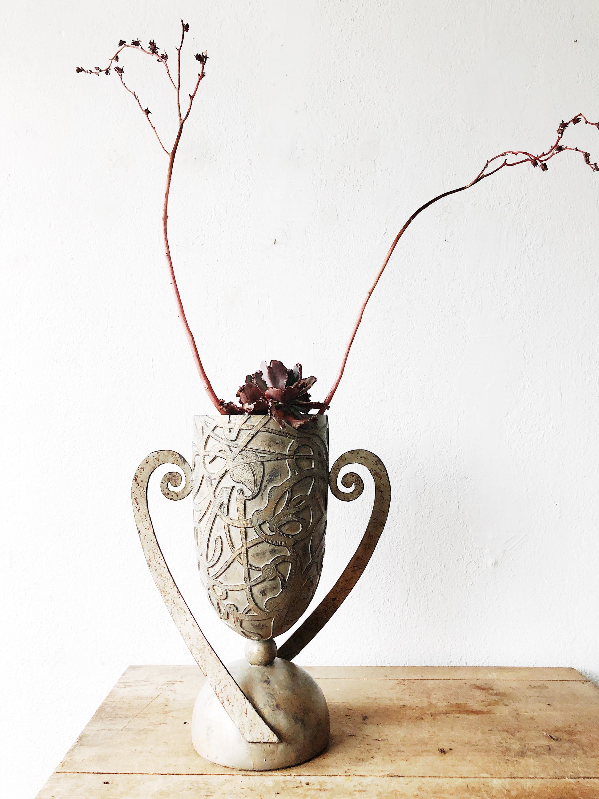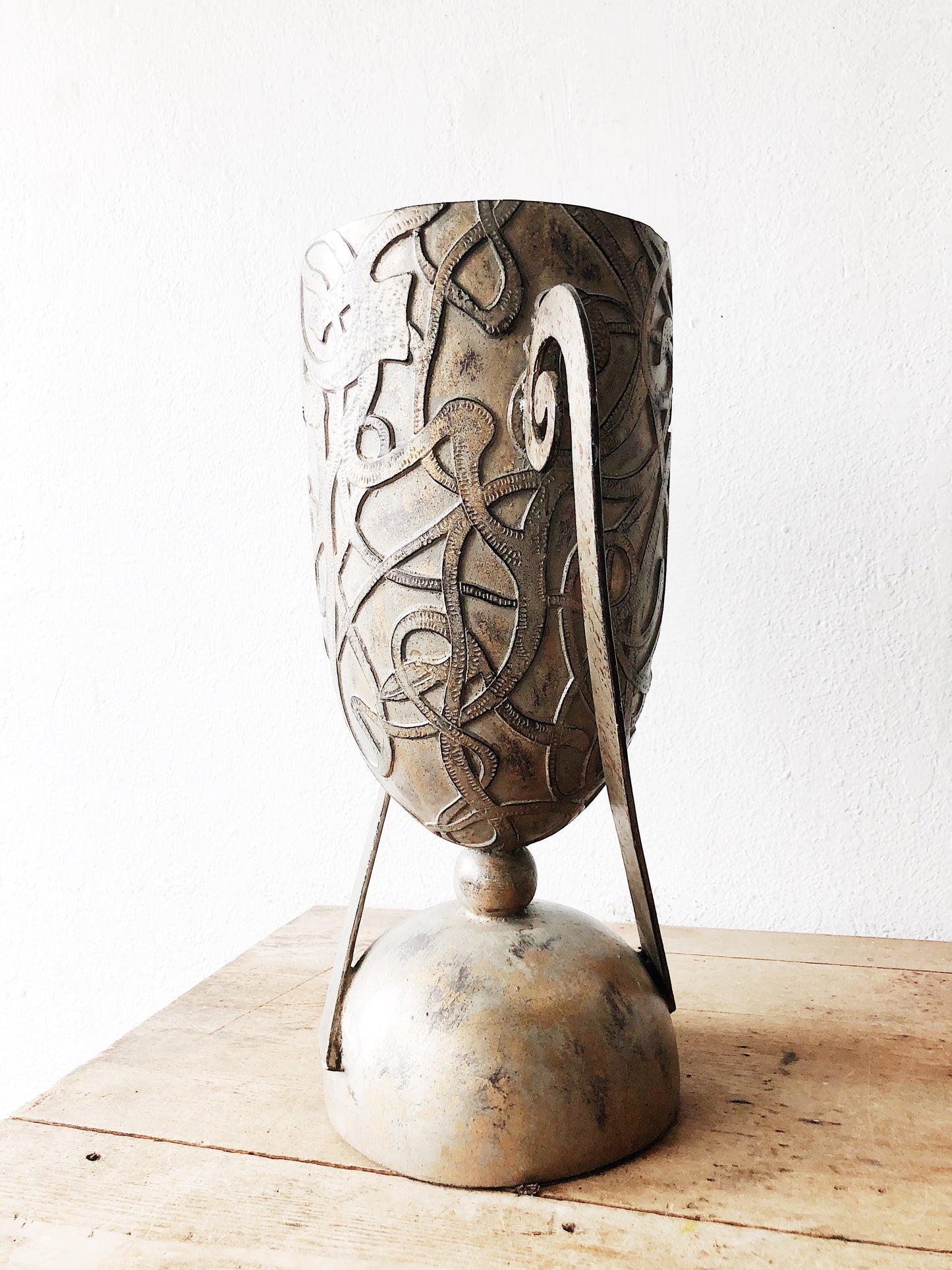 Large and weighty. Incised with art nouveau styling. Dated. A stunning piece for planting up or just as is