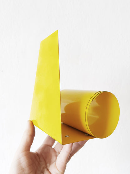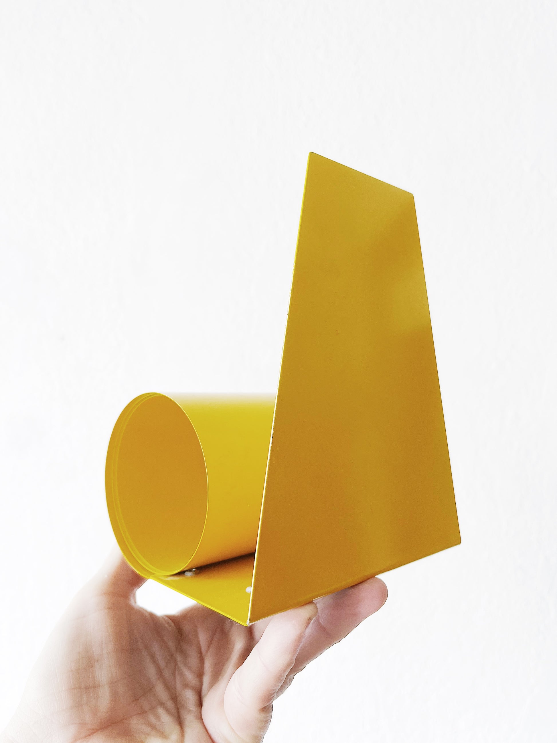 1960s modernist ‘bookworm’ metal bookend with coil holder that expands to hold a growing collection of books. Made by Wix, England