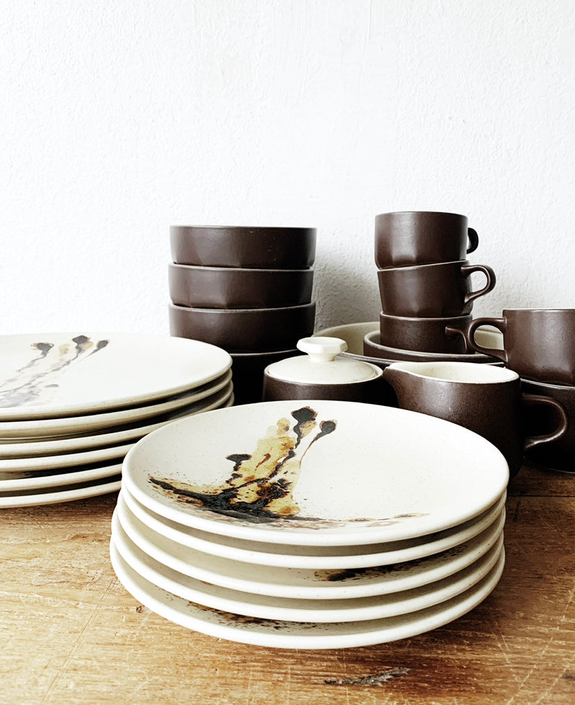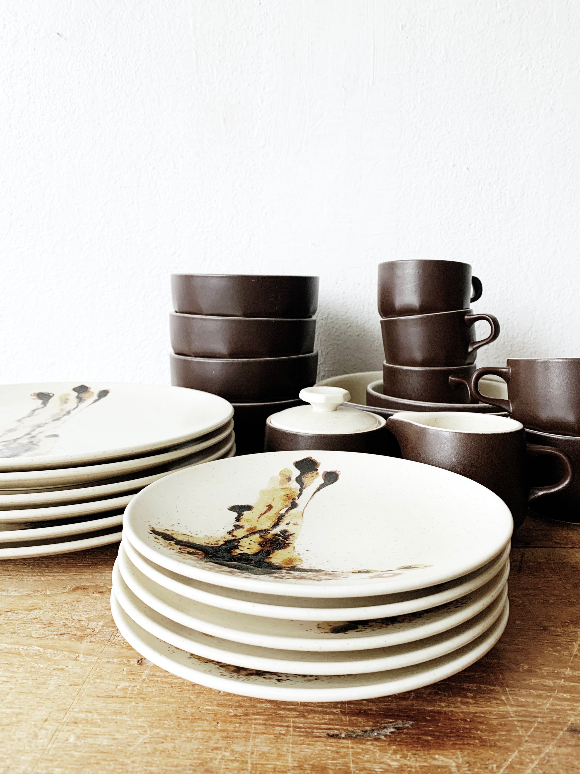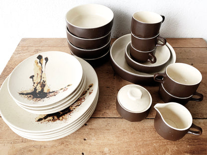 1970’s Mikasa Indian Feast Peace Pipe and Bark Brown 24 PC Set
