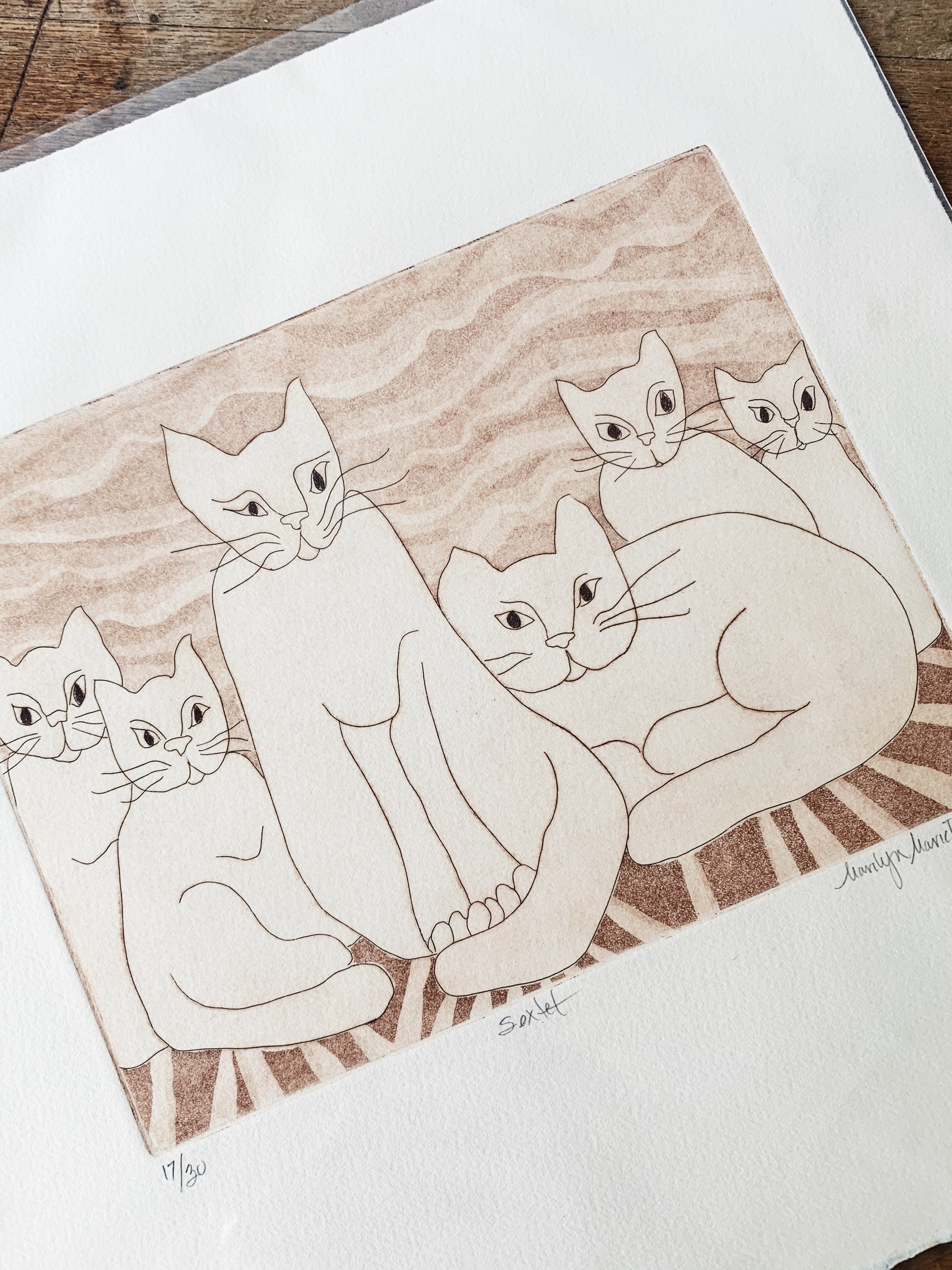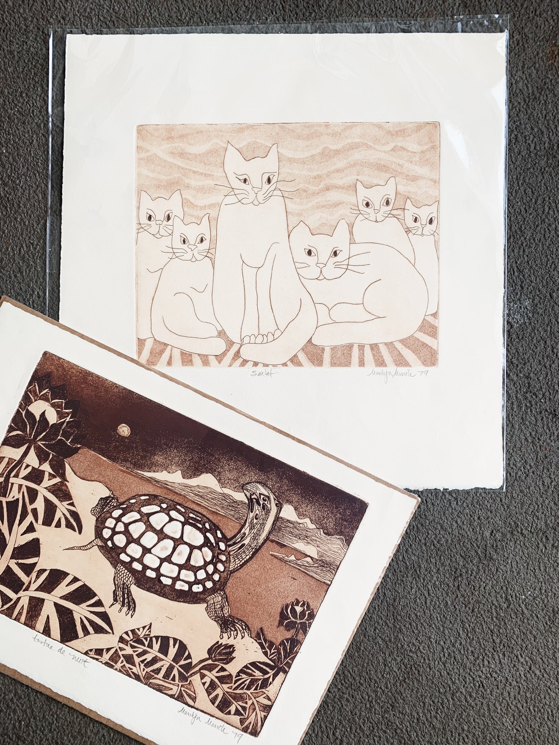 Vintage original etching by prolific Pacific Northwest artist Marilyn Maricle. Sold individually, Unframed