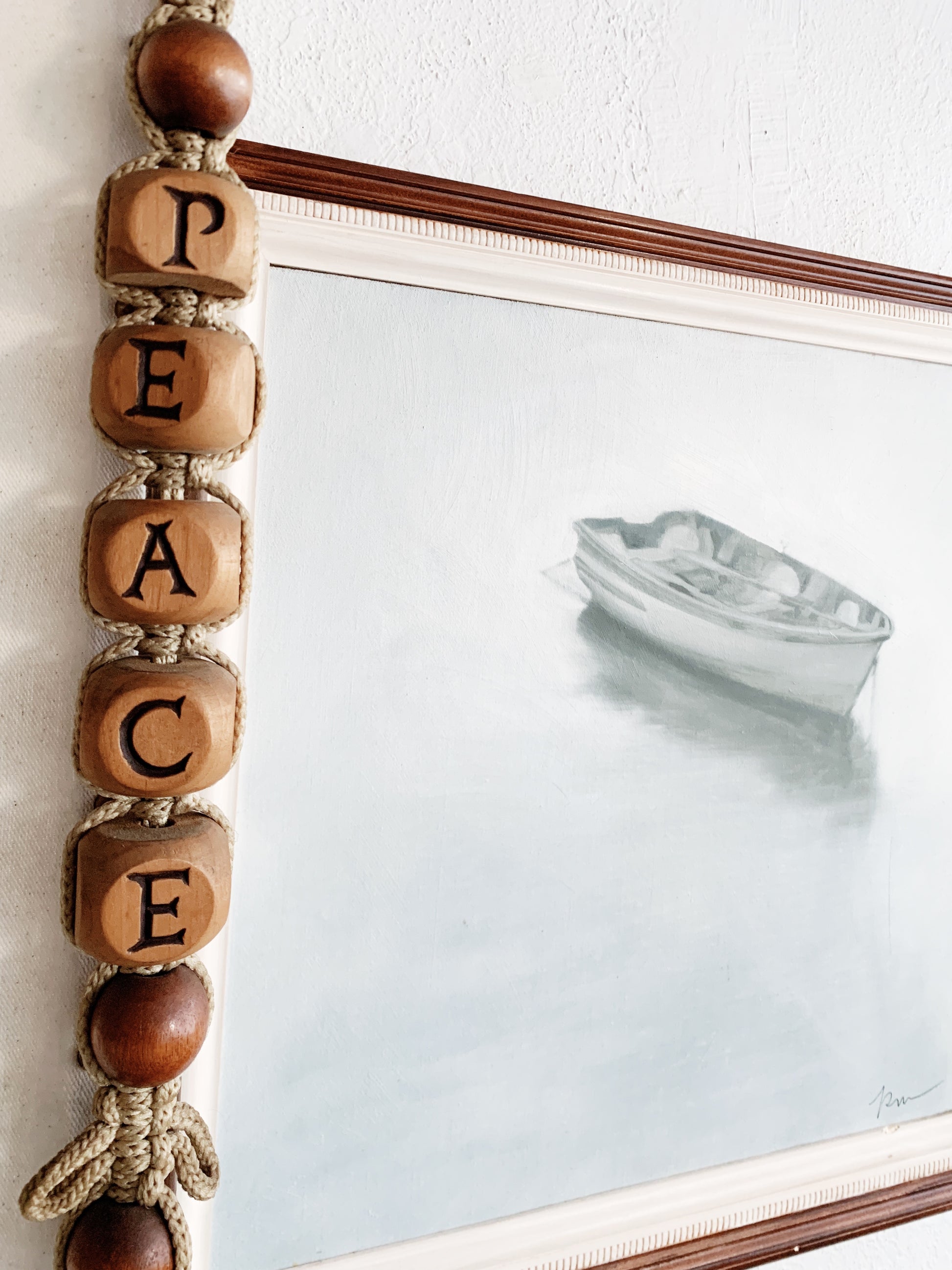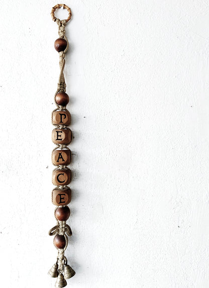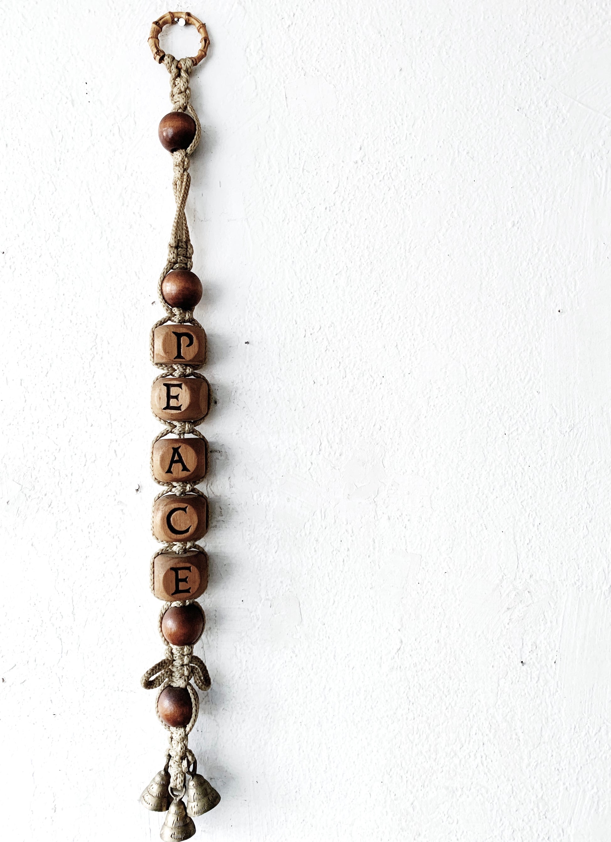 Fab Chunky wood peace doorbells from the 70’s. Macrame with bamboo ring and three incised brass bells