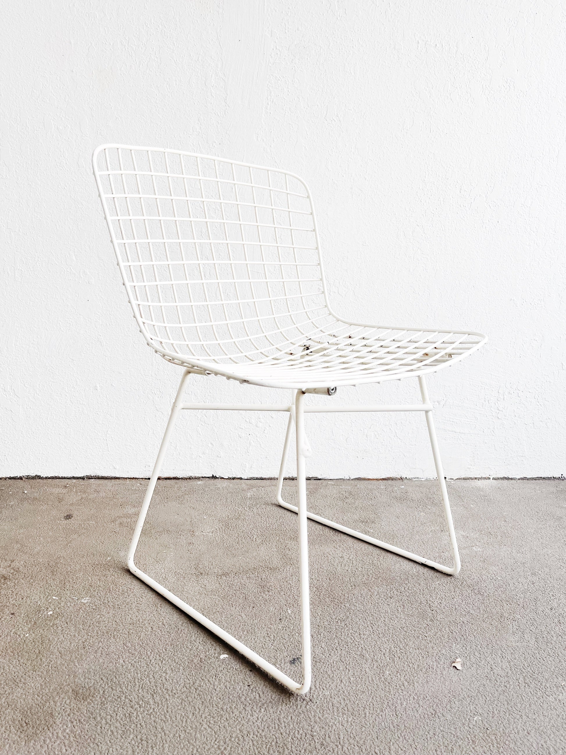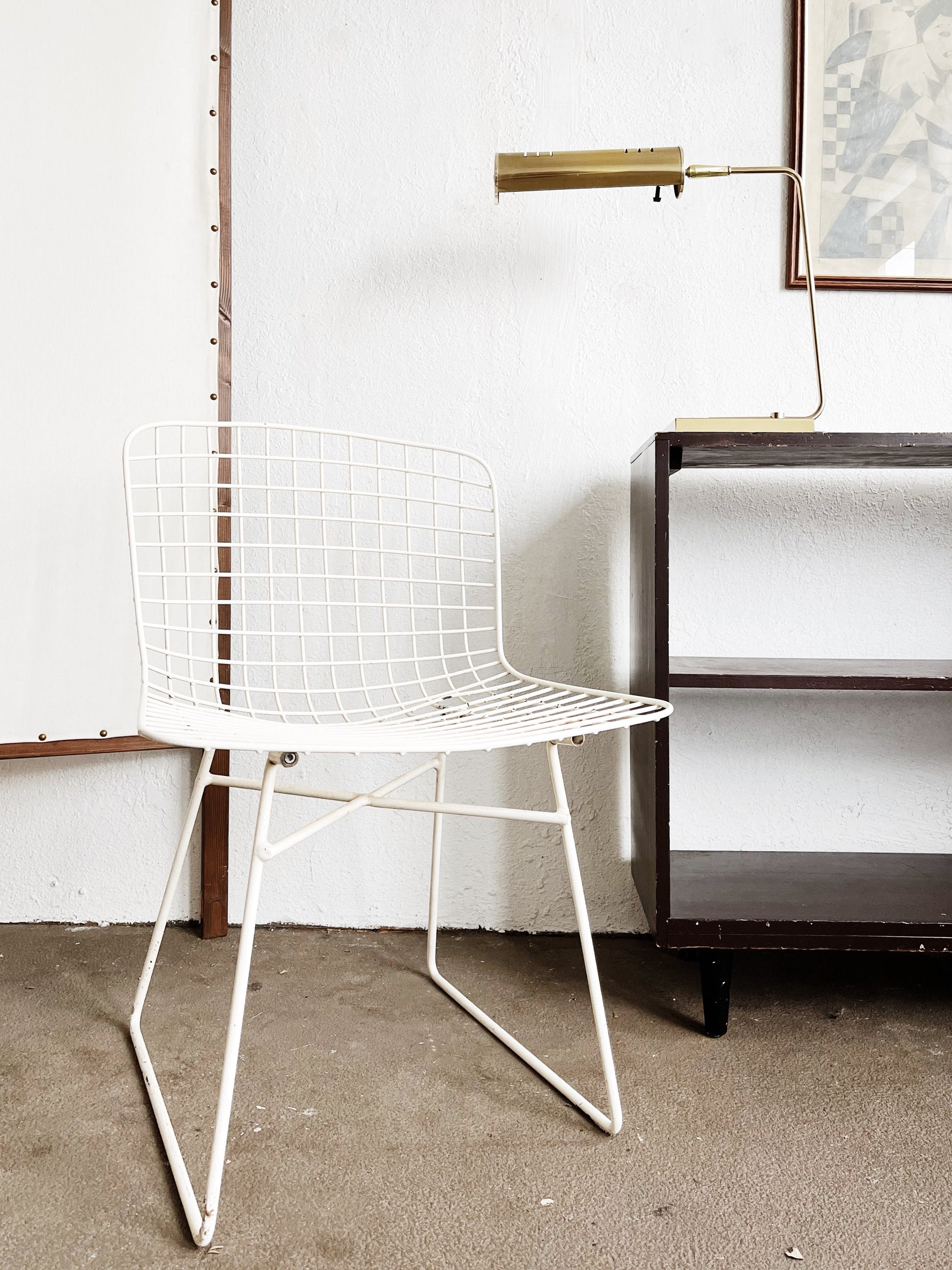 Wire chair in the style of Bertoia. By Emu made in Italy 1970s. Epoxy coated metal over a formed wire chair. Has a slight spring to the back. Comfortable! Has some minor overall wear conducive to age