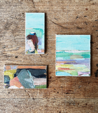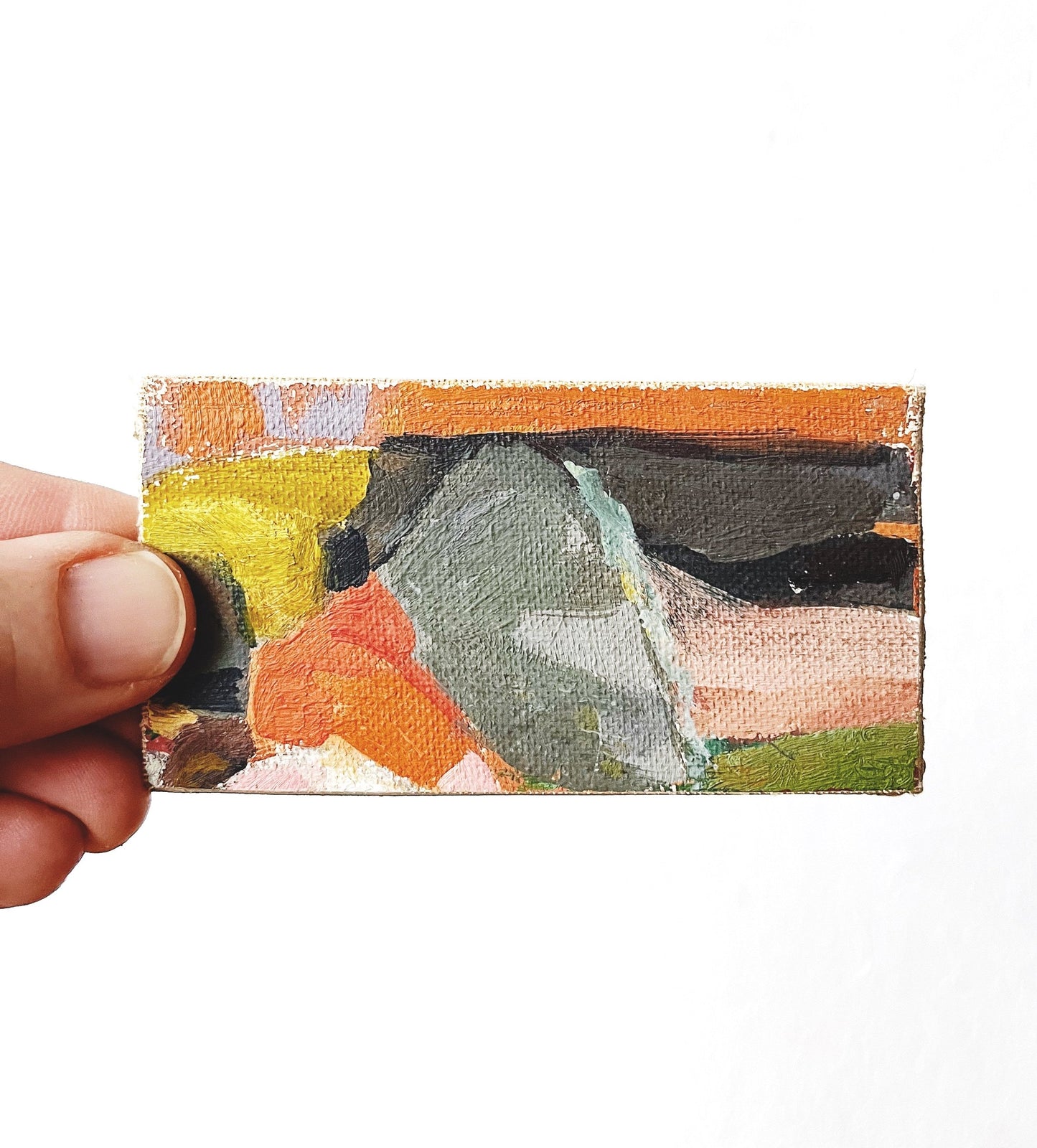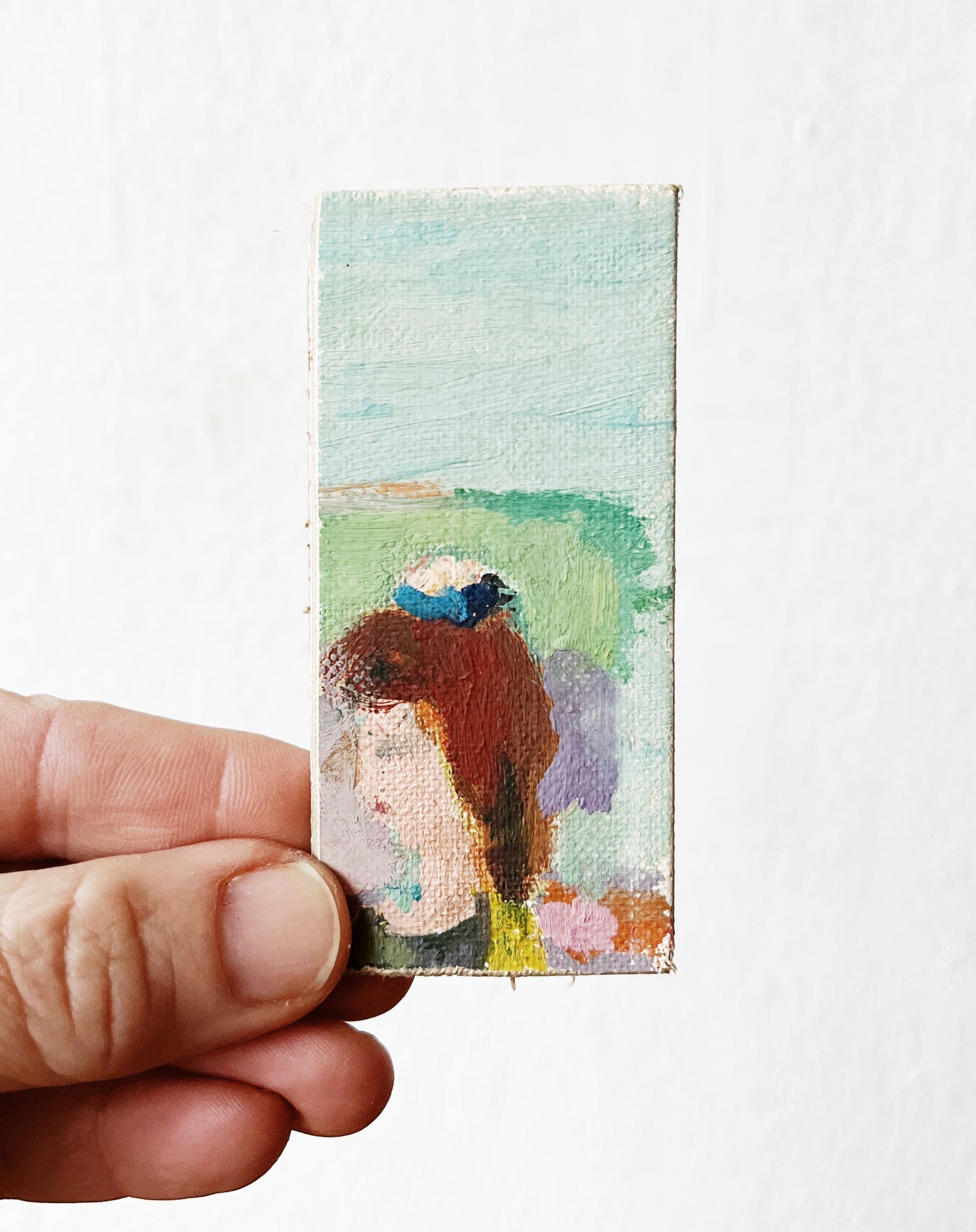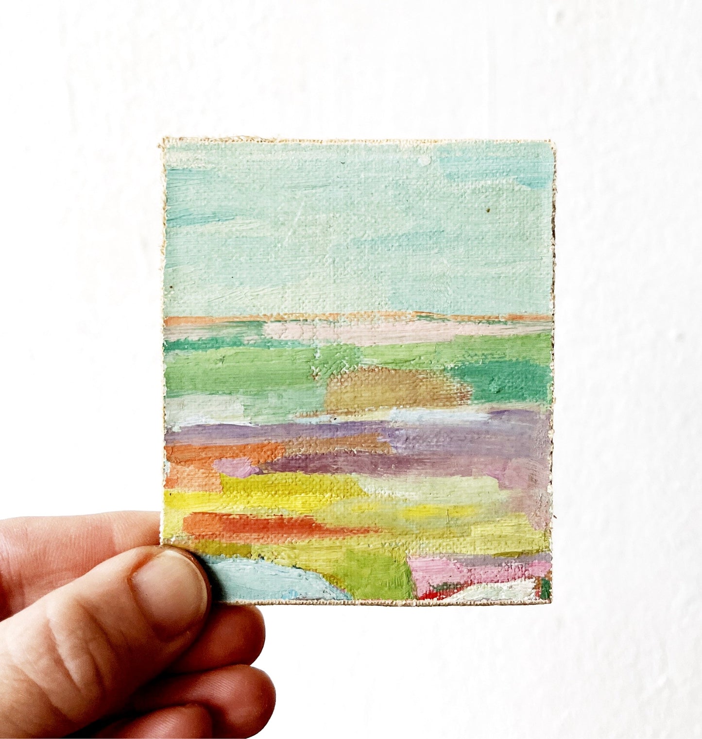 One of three little mini paintings that we found. Such a great little extra tucked onto the outside of a gift. This will prop or hang with the attached plastic hook