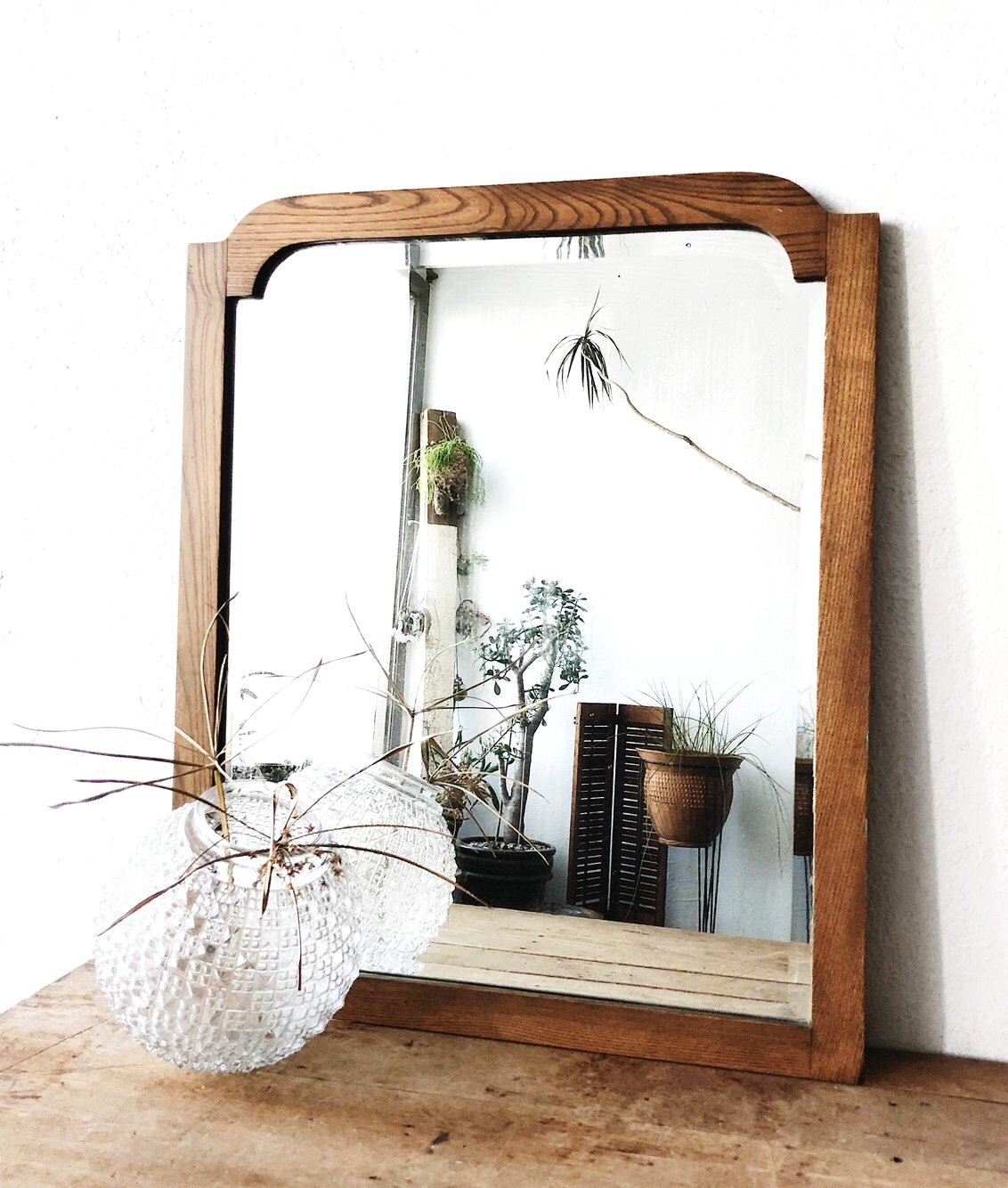 Antique Oak Beveled Mirror