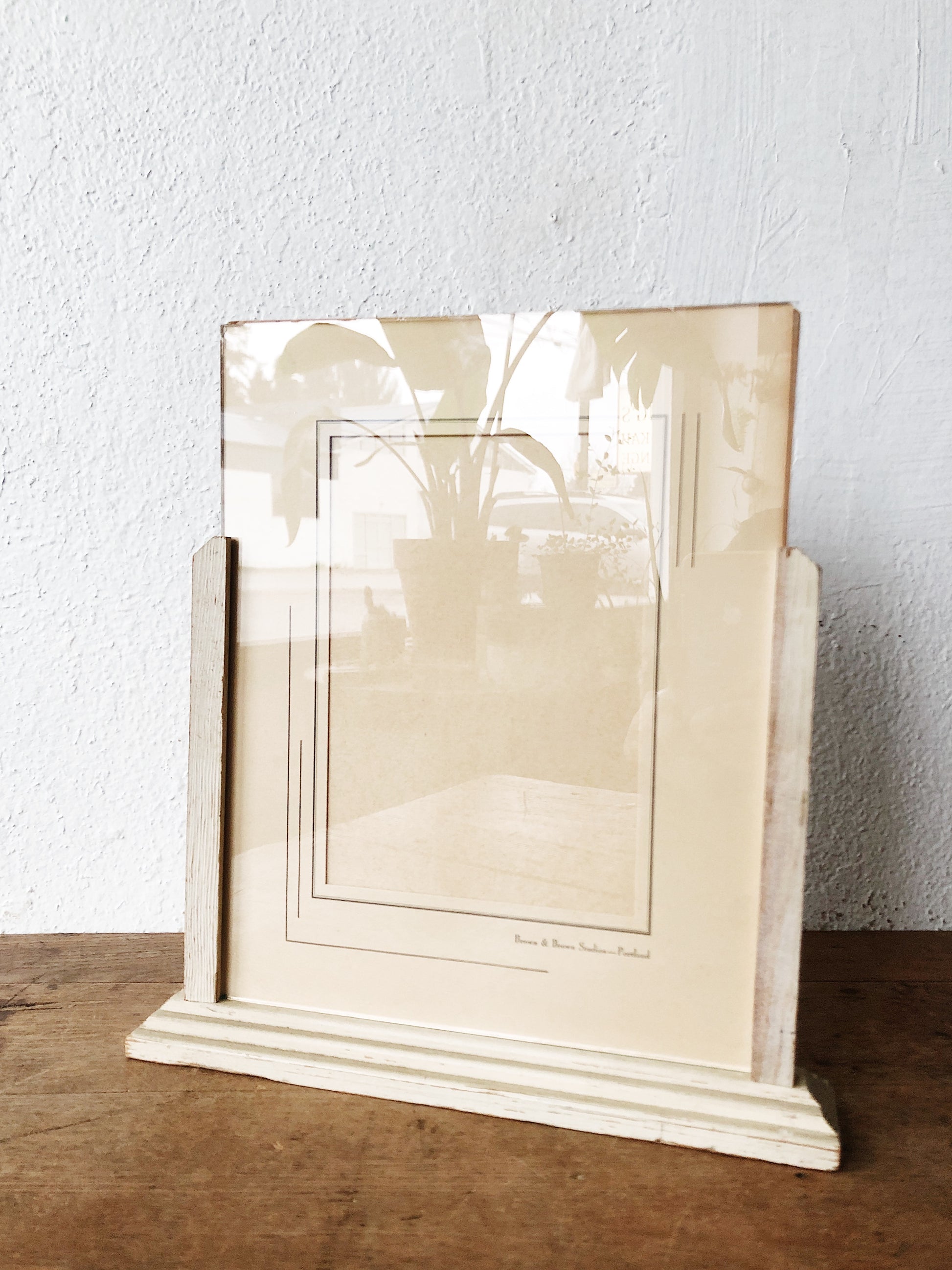 From the 1920s, an old standing frame with Art Deco matting. Glass between wood