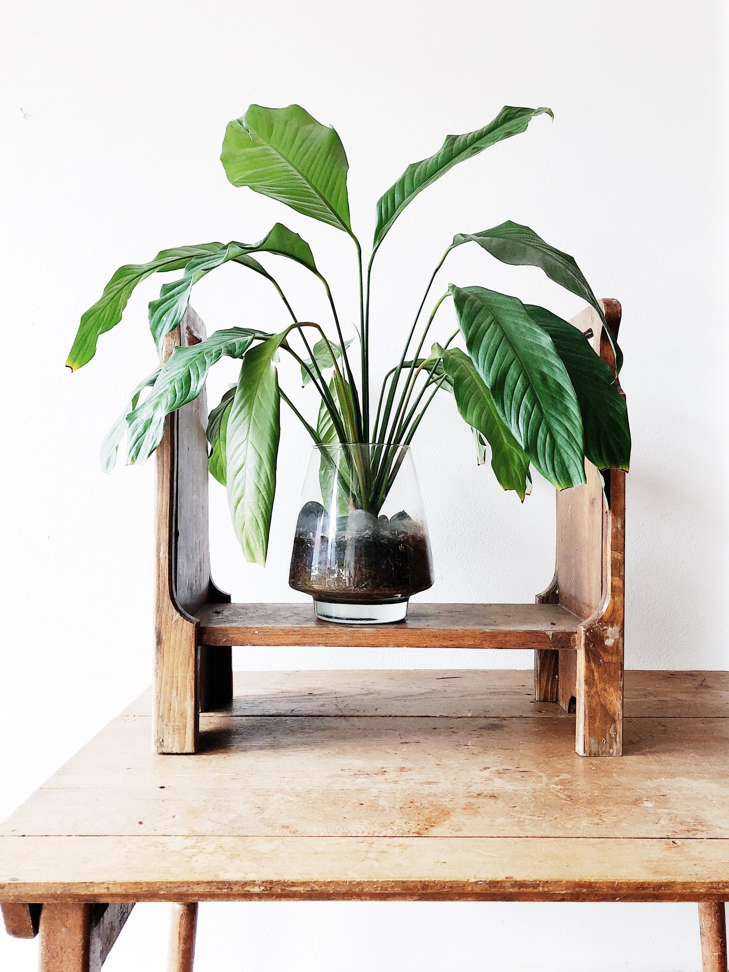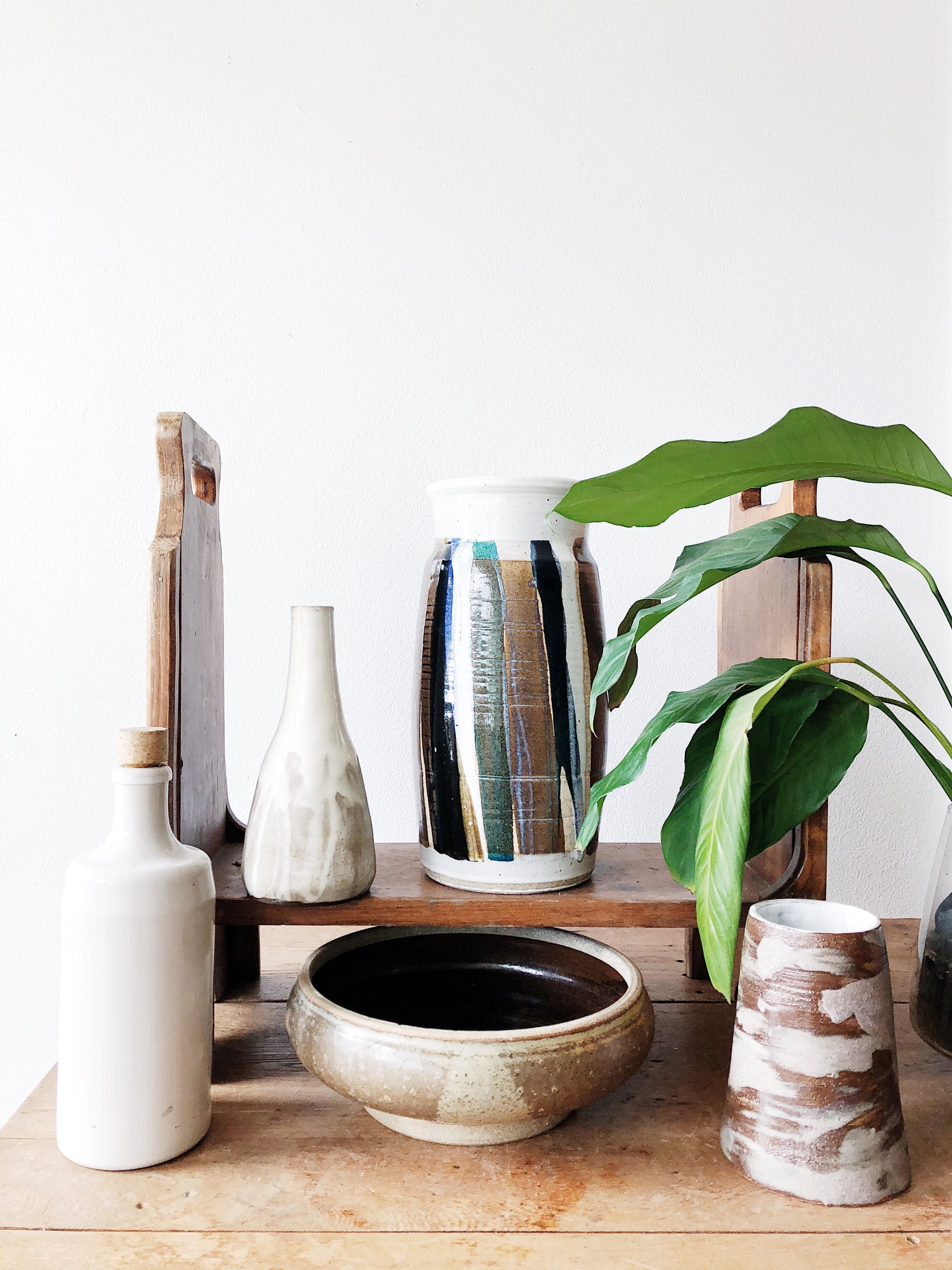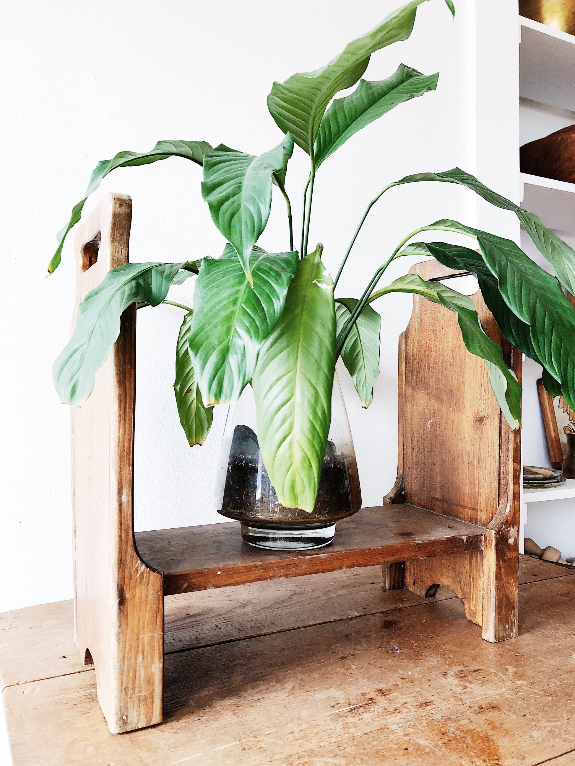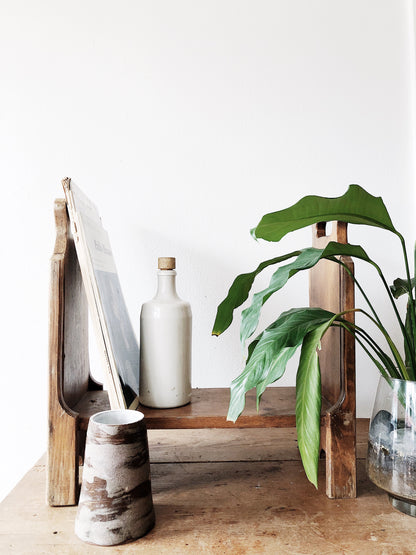 This old church kneeler makes a great bookshelf for larger tomes, as well as display for plants or pottery. Lovely patina