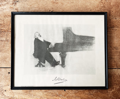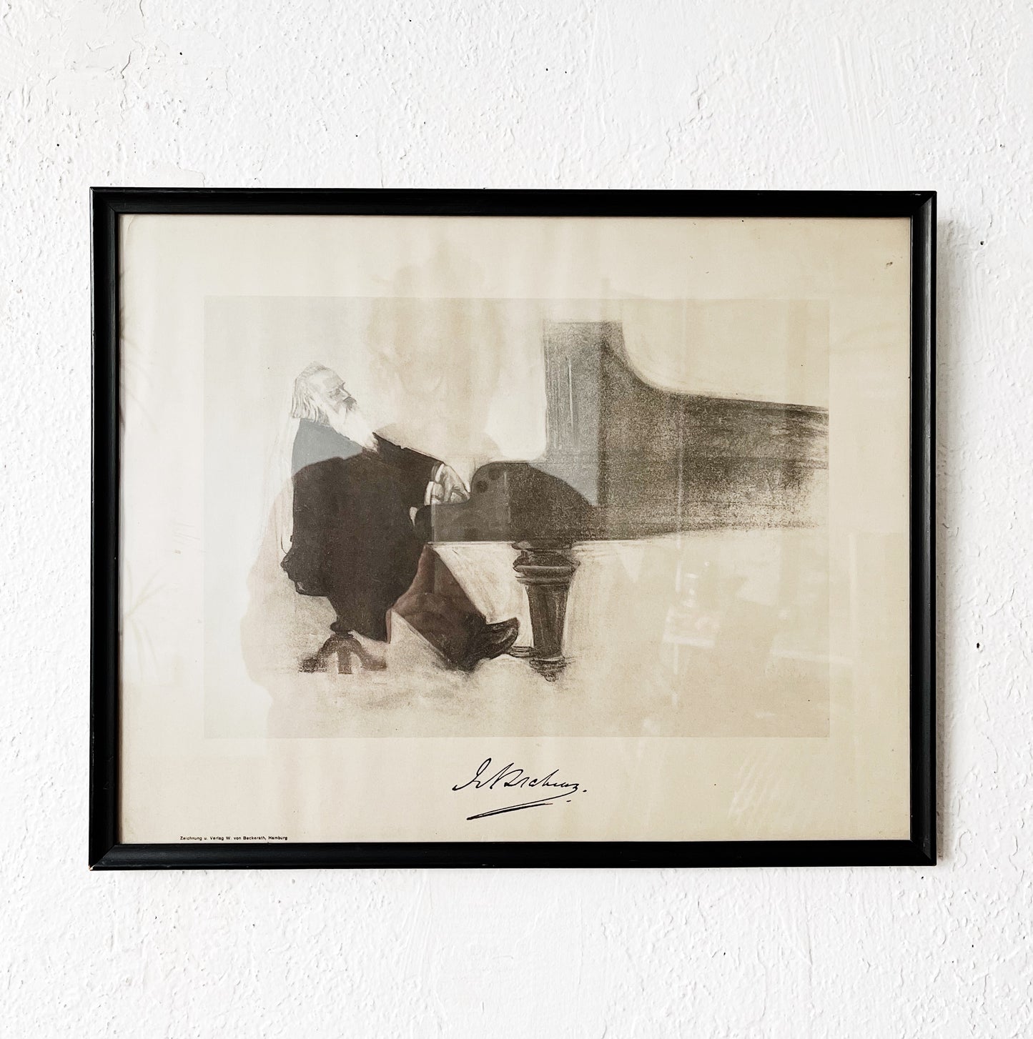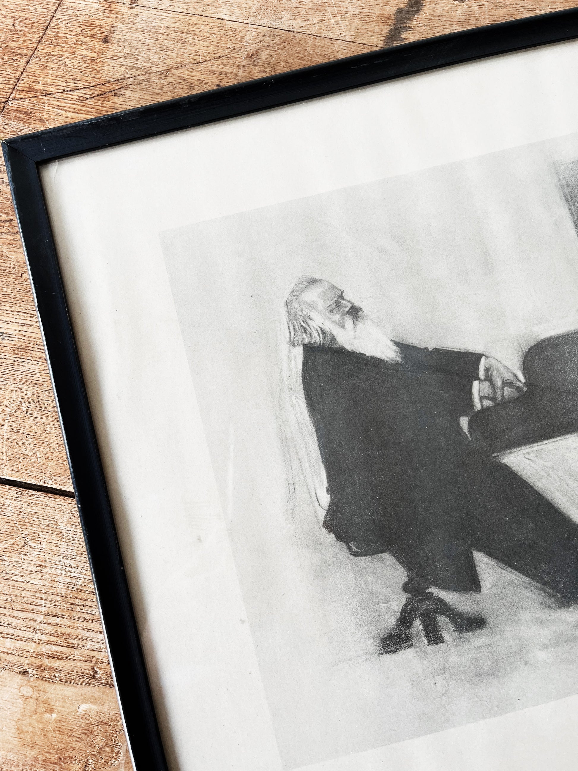 Tons of character in this antique litho from a charcoal drawing. Framed under glass