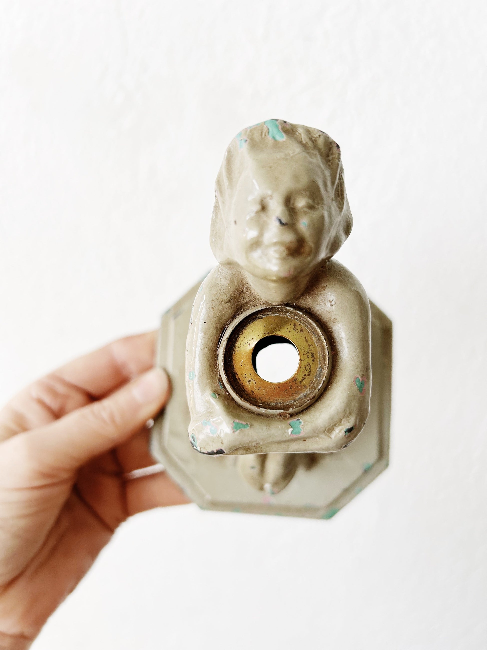 Art Deco era Frankart cast iron lamp base that can be made into a lamp again or use it as a candle or incense holder.