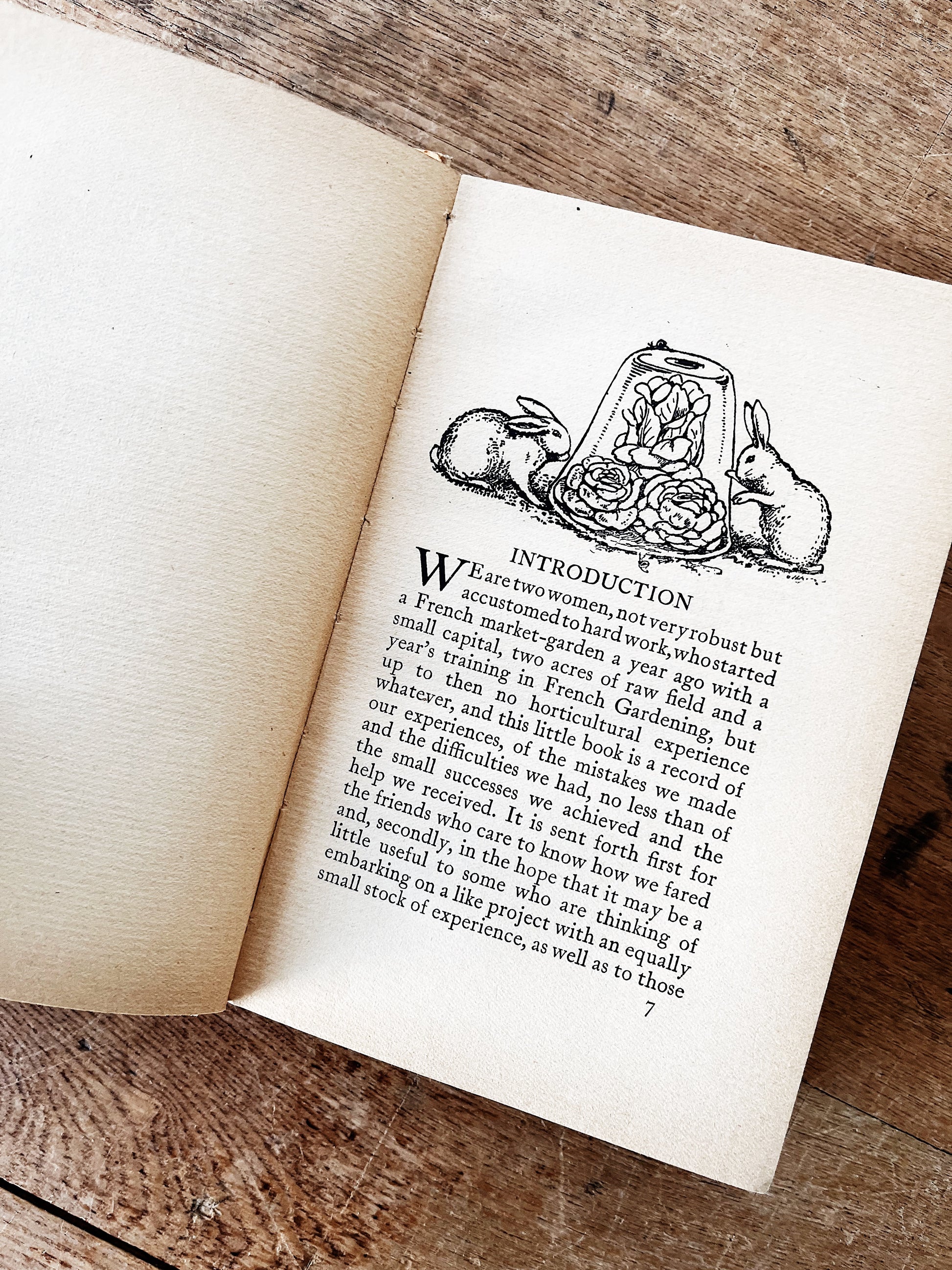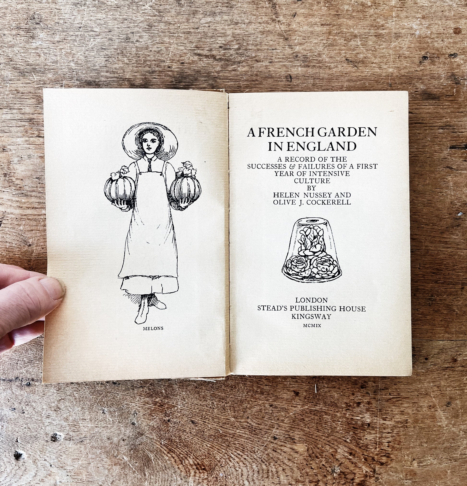 ‘A French garden in England’ c 1909. Hardcover with letterpressed jacket and charming illustrations. Really lovely antique book for the garden lover