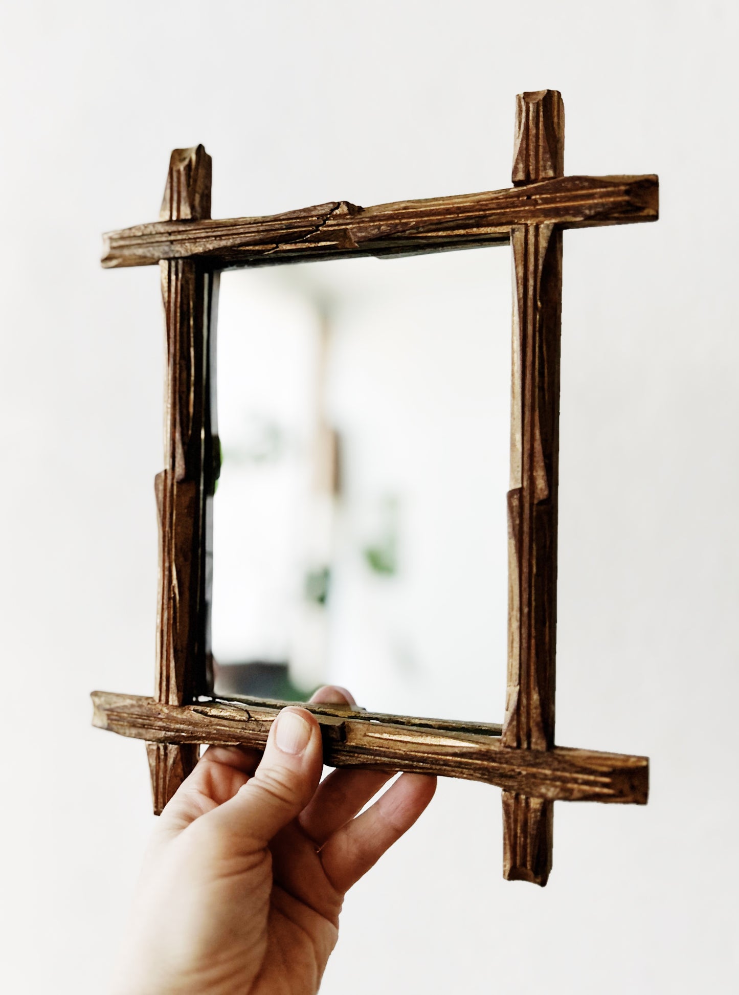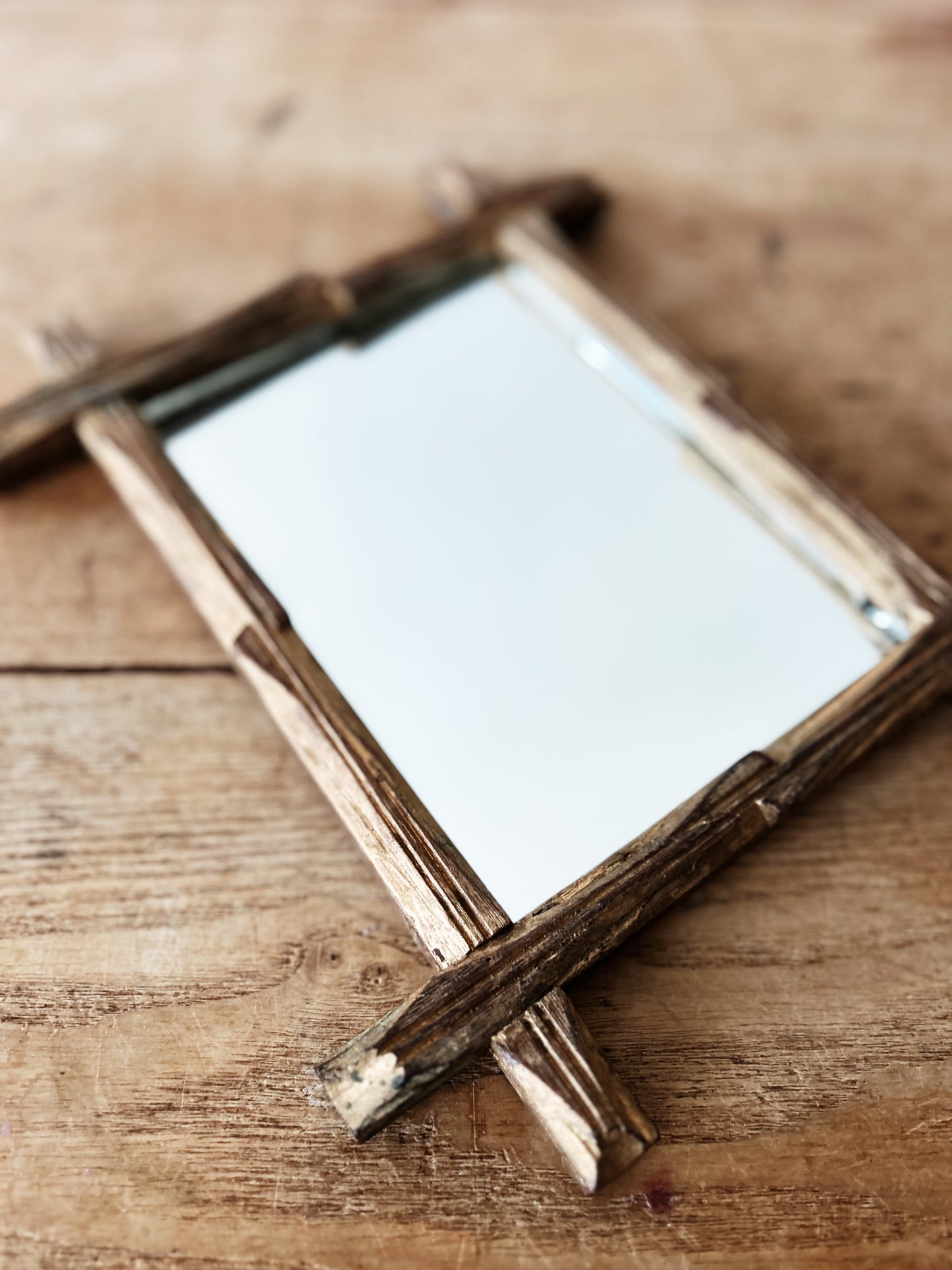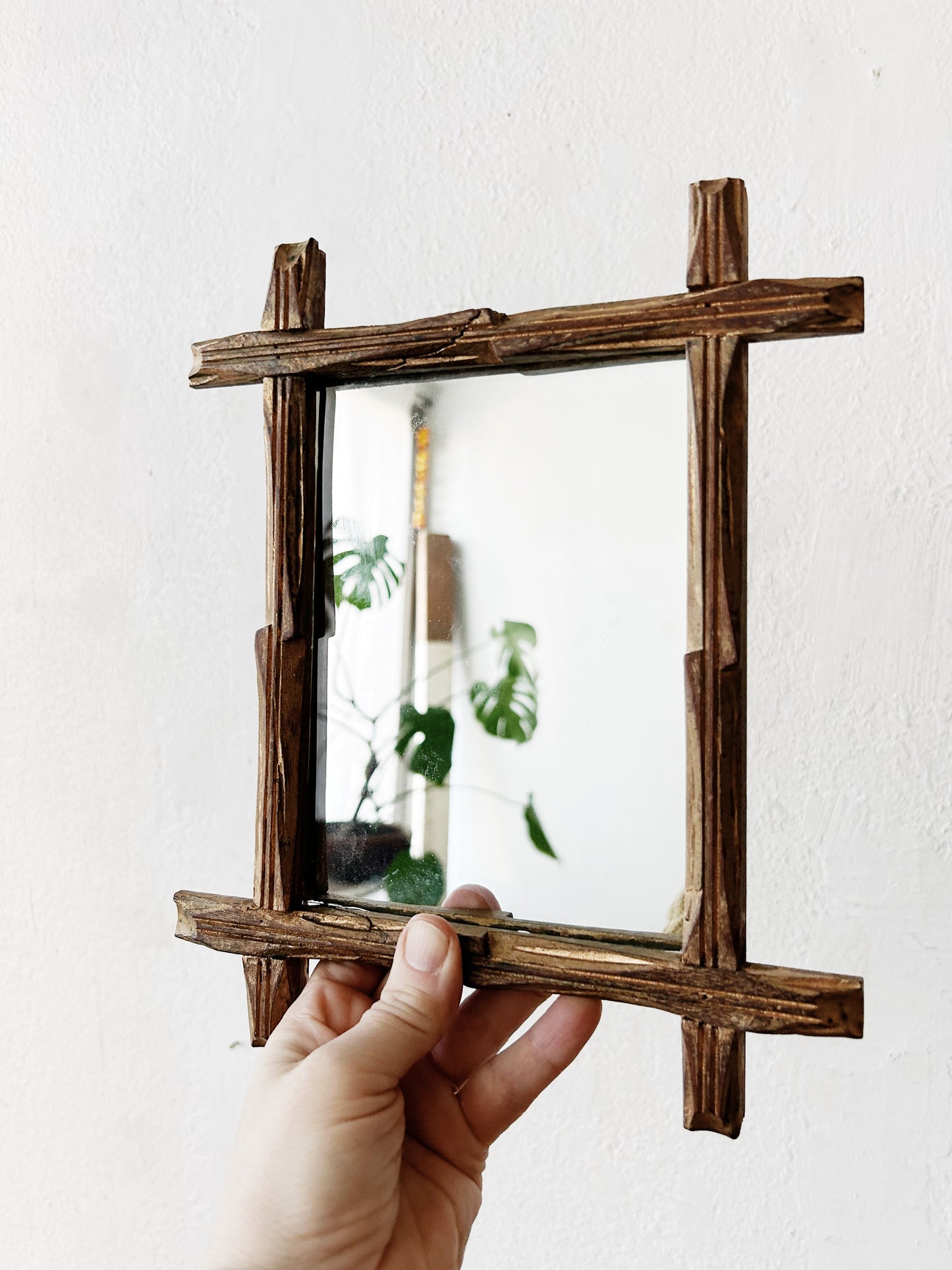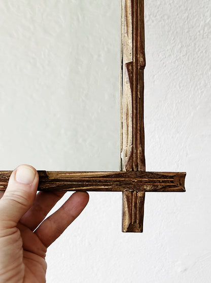 Antique Victorian era mirror in gold leafed carved wood. Mirror is plate glass and nice and clean. Petite size is charming