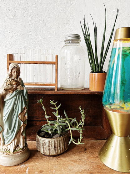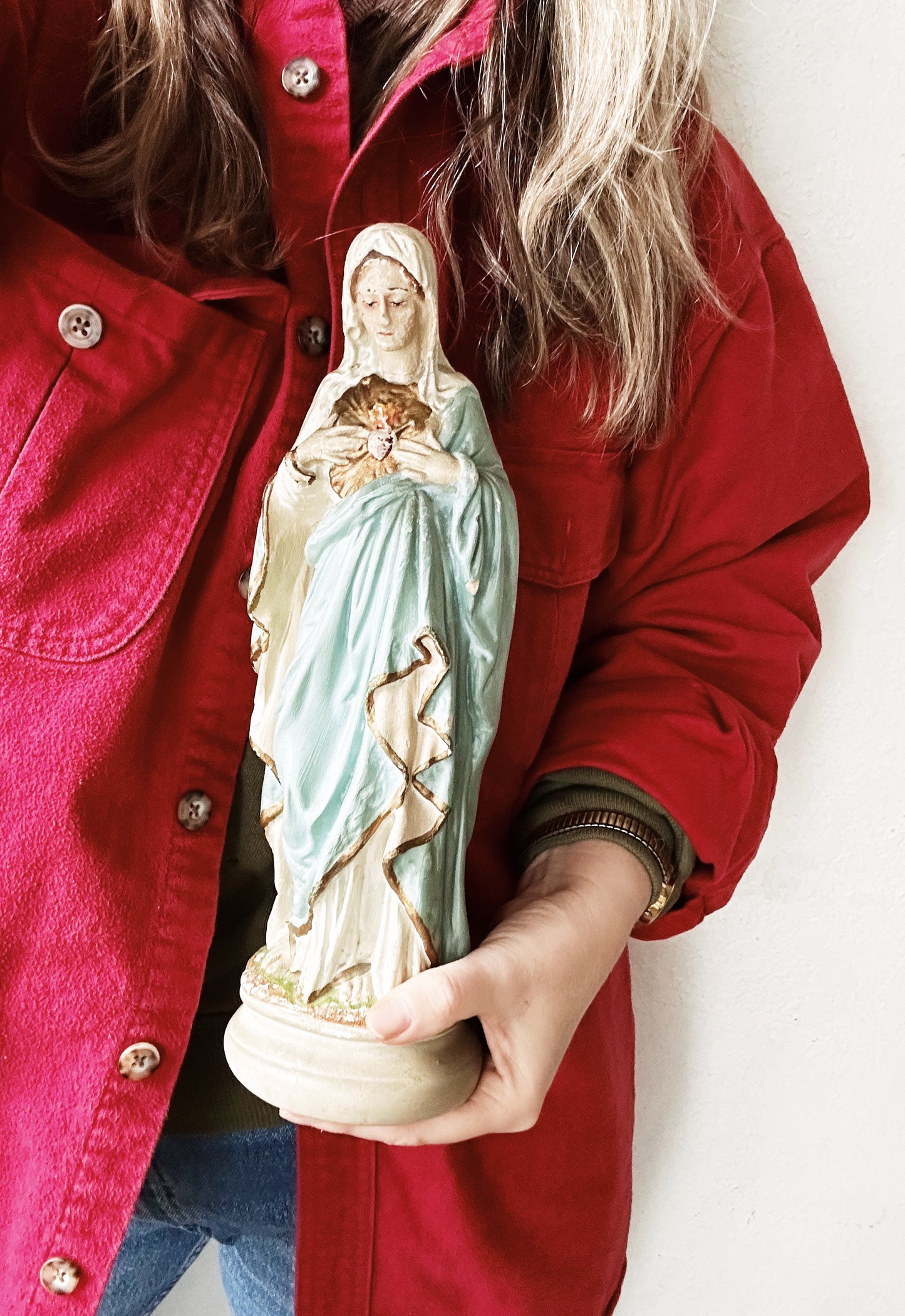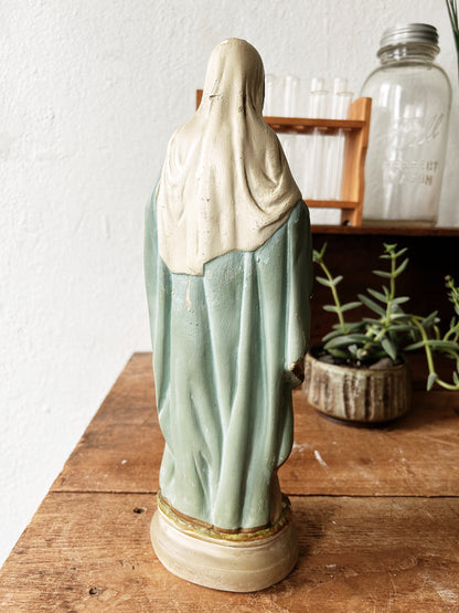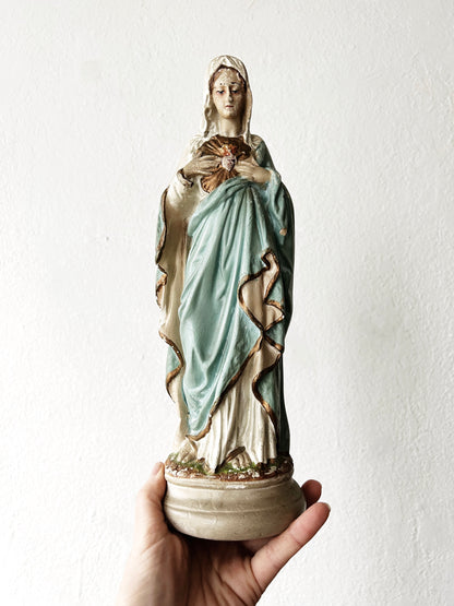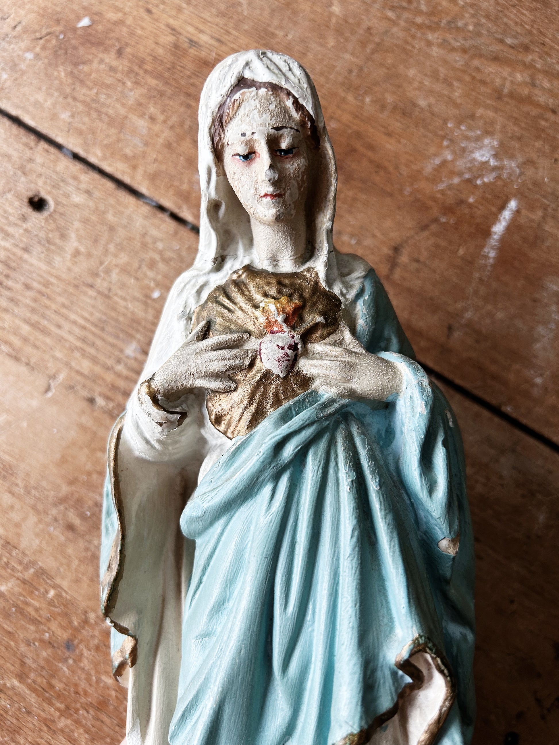 Really beautiful antique hand painted Mary Magdalene with sacred heart. Hairline repair on back.