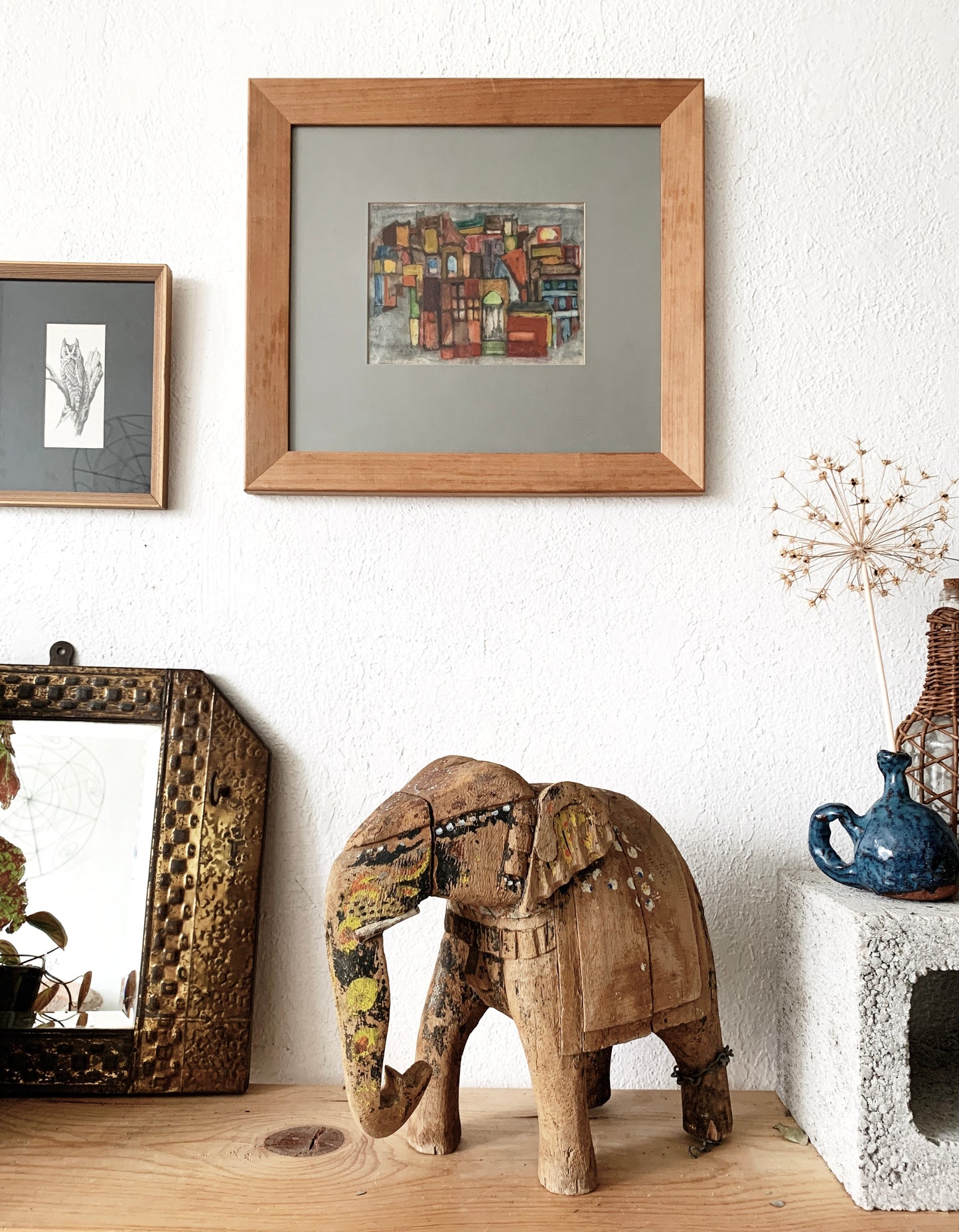 Antique Hand Painted Wood Elephant
