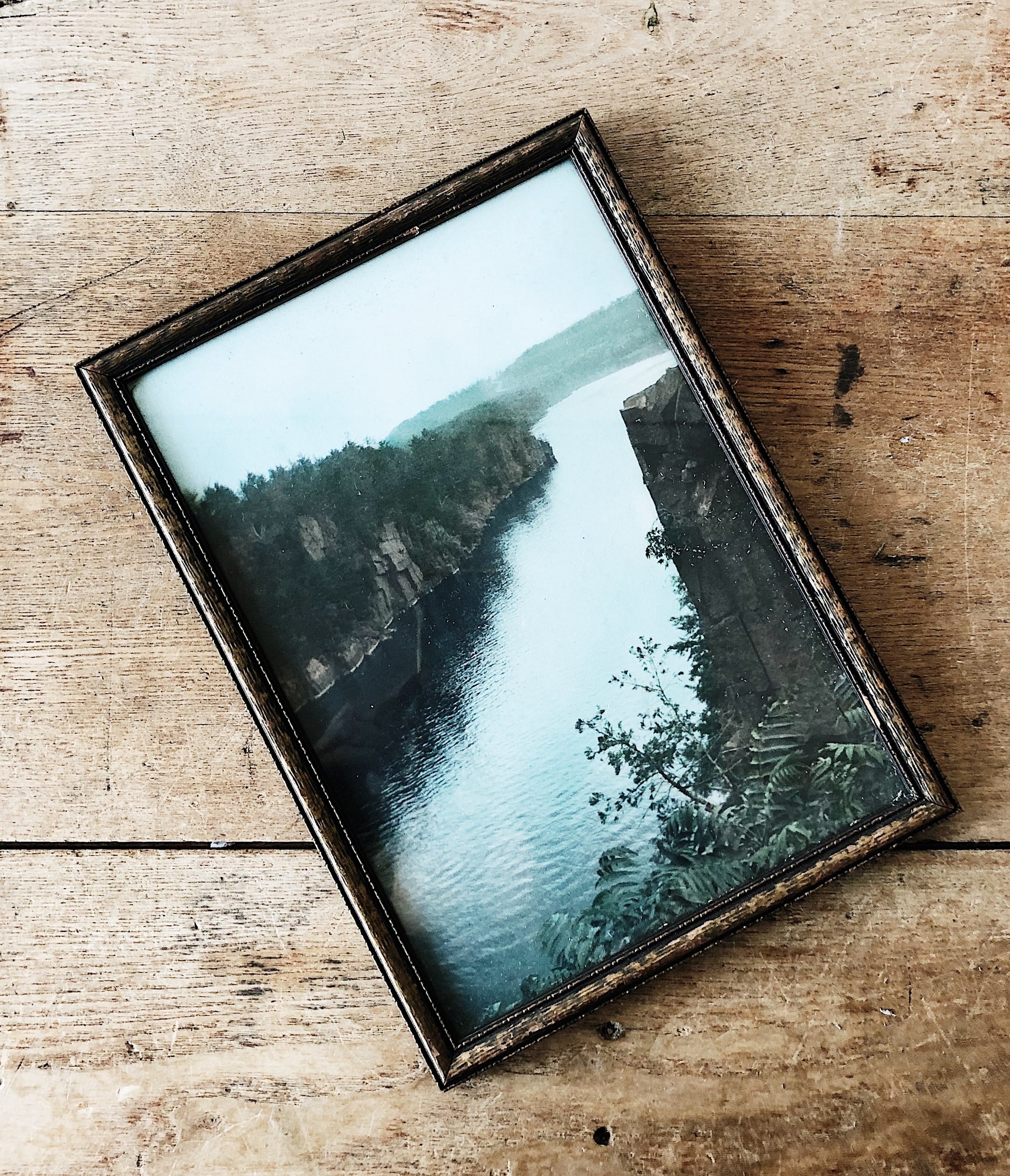 Dated hand tinted photo of Wisconsin/Minnesota. Lovely coloring and old frame