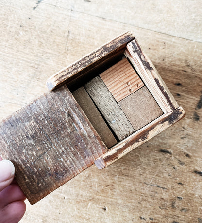 Sweet teeny handmade block set. Slide top with notched handle. Honestly we live for things like this.