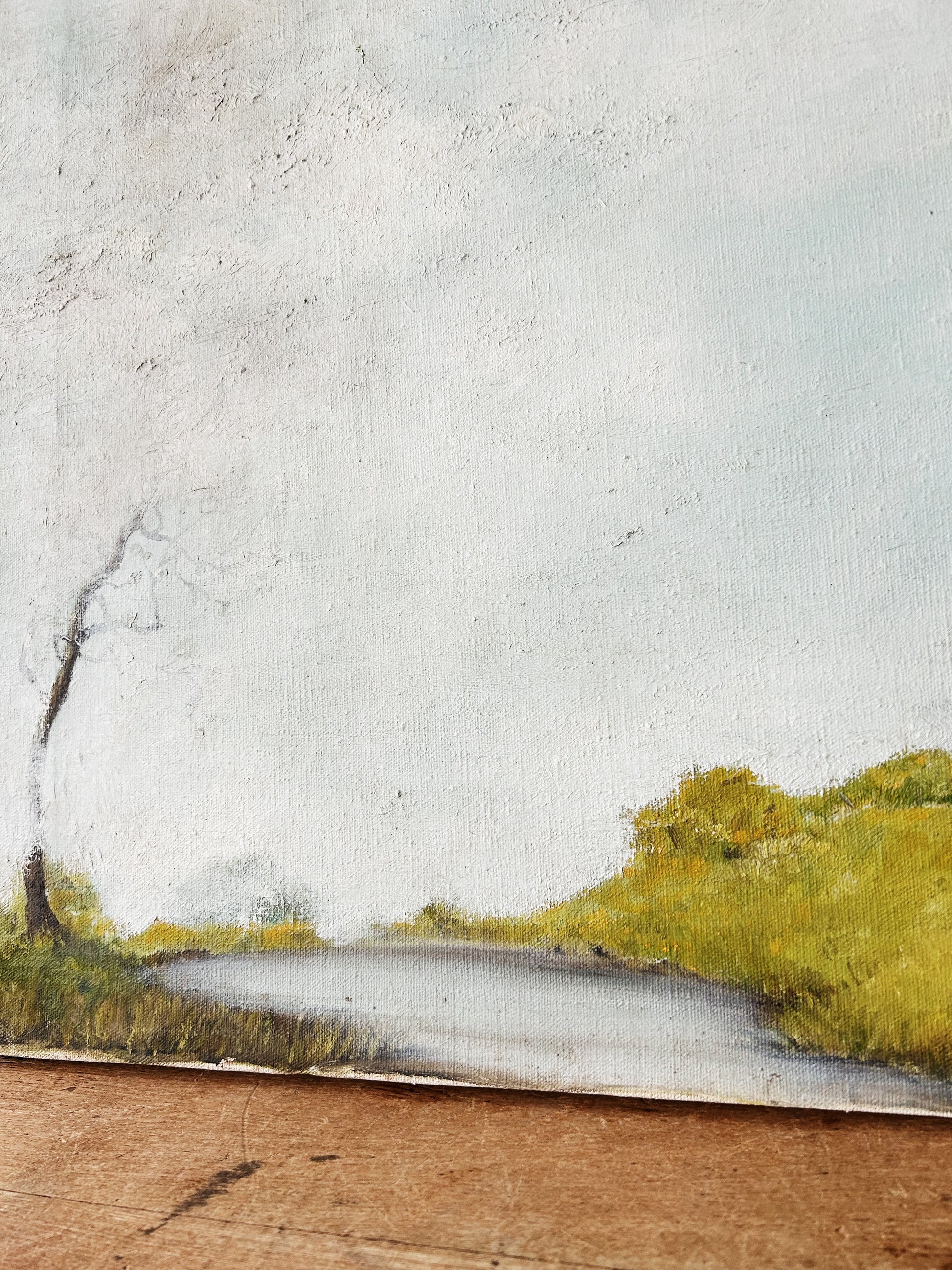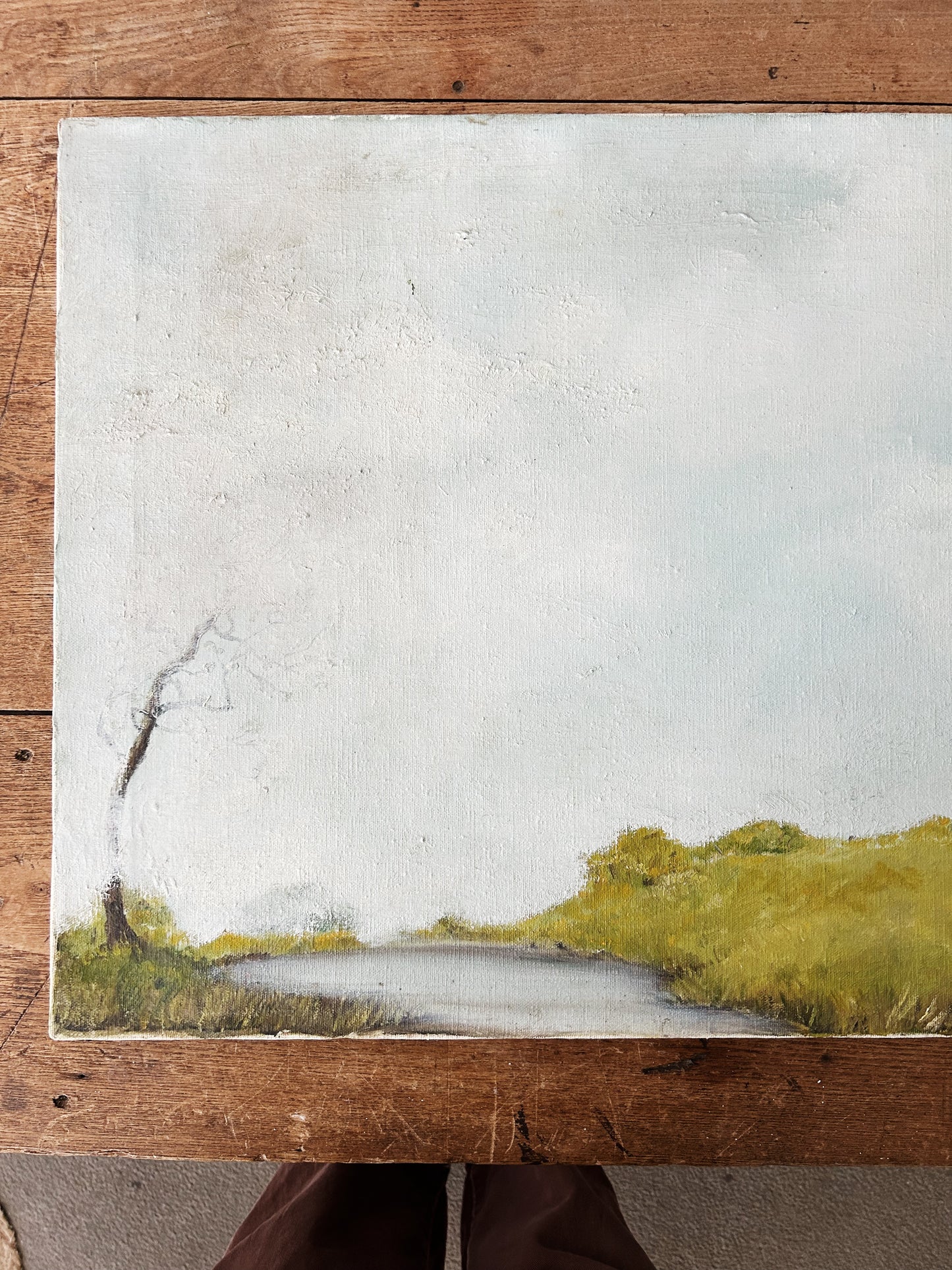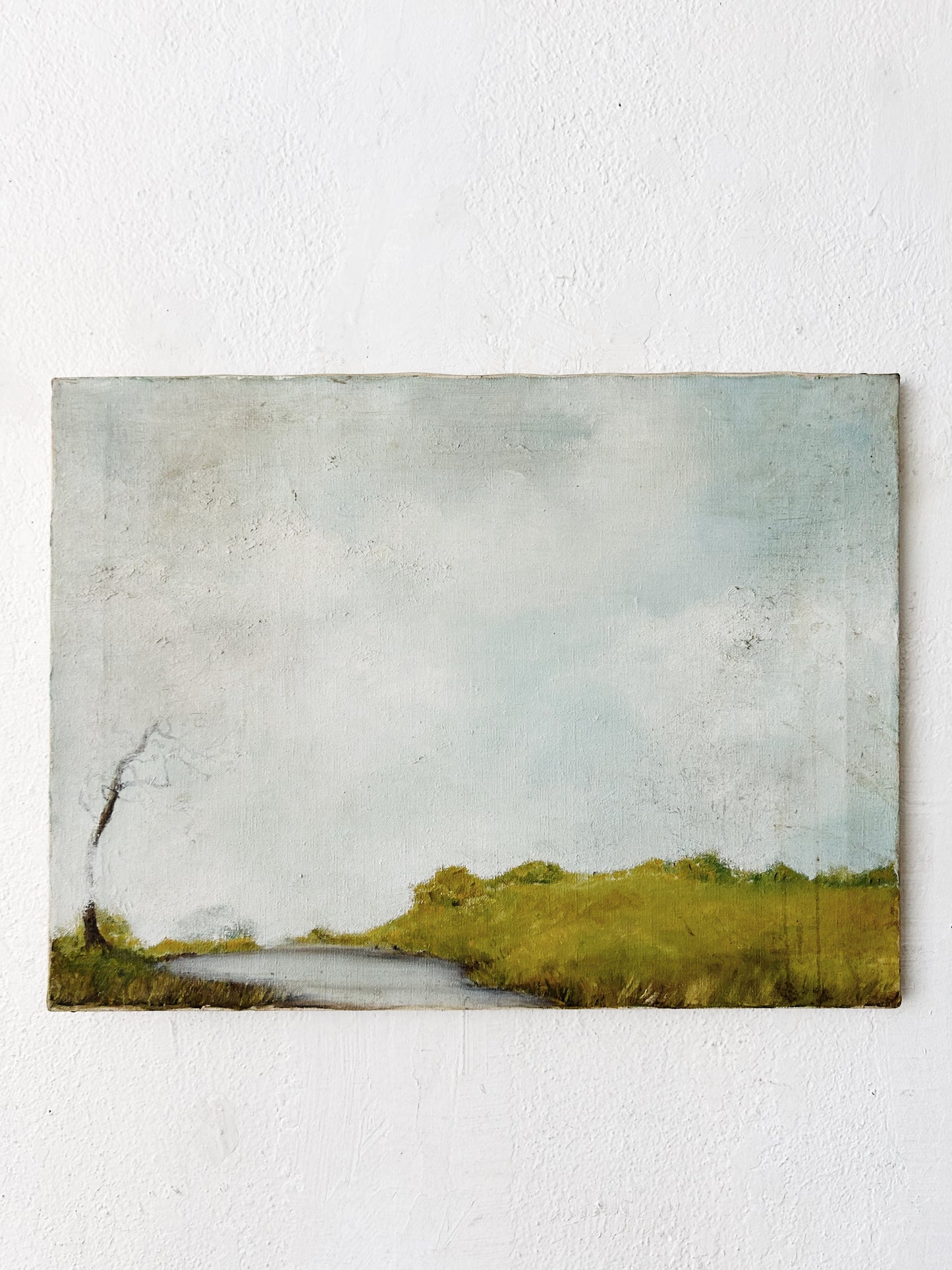 Beautiful old painting that has a sparse Wyeth feel to it. Moody but uplifting in its spaciousness.