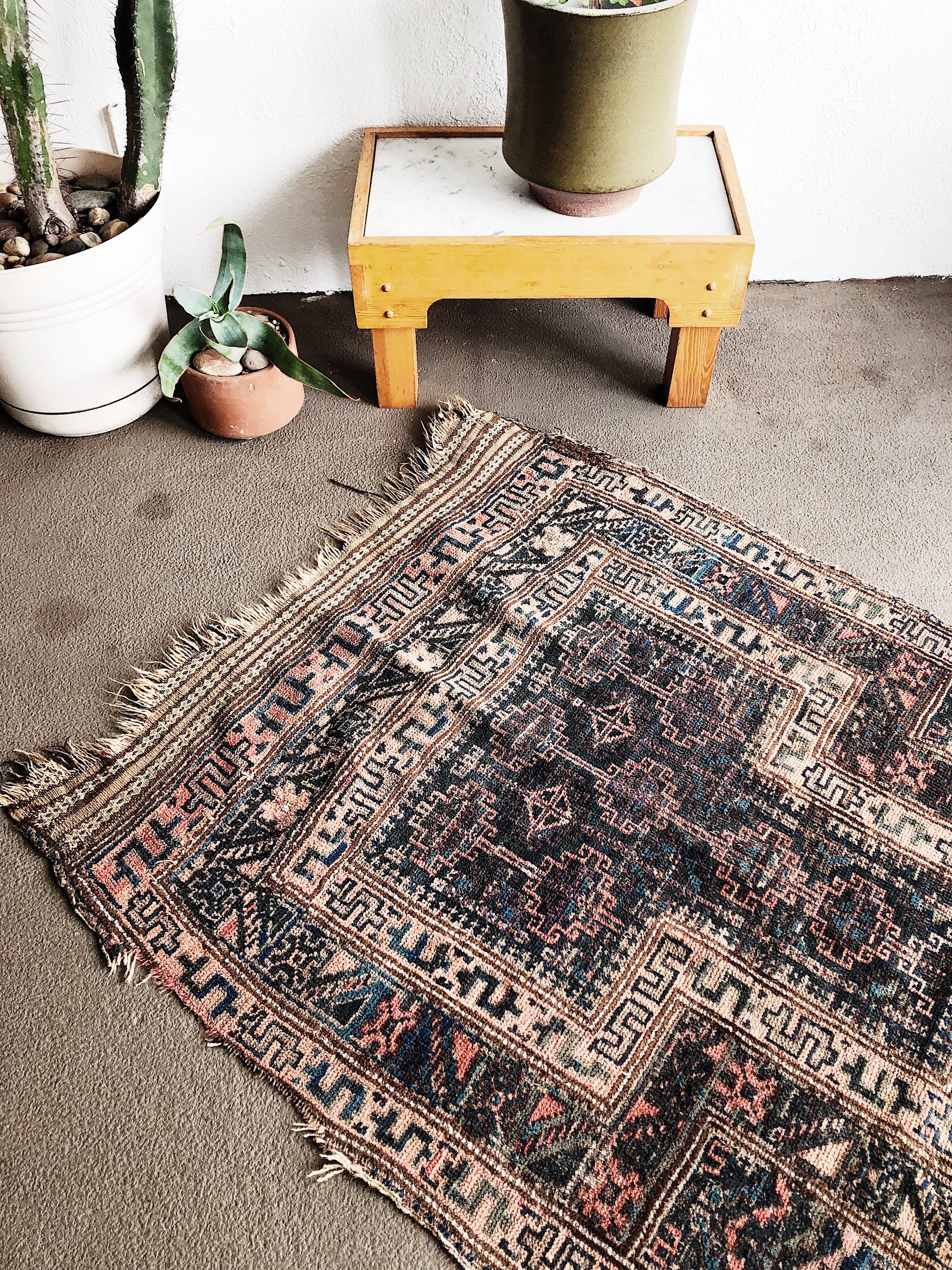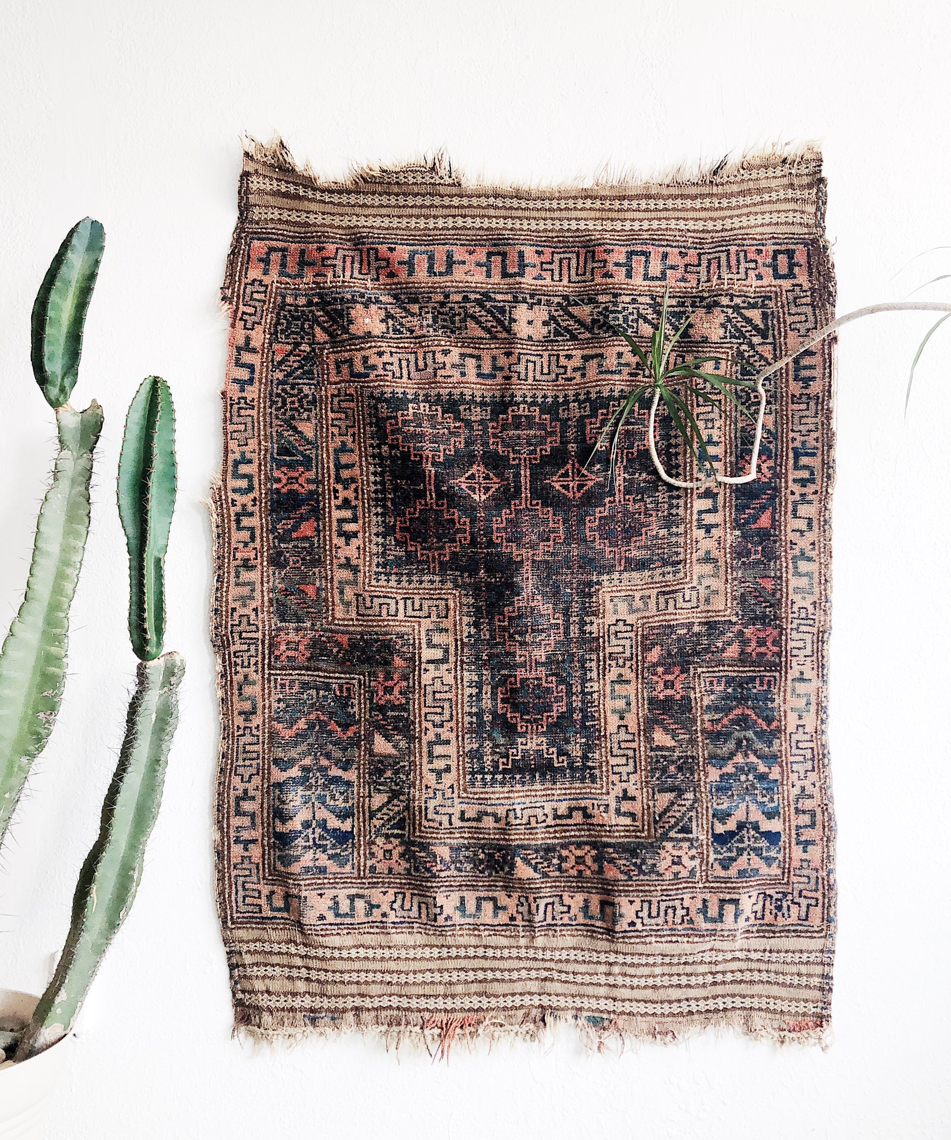 Simple and beautiful, we love these old wool rugs thrown over a headboard as well as for their intended purpose.