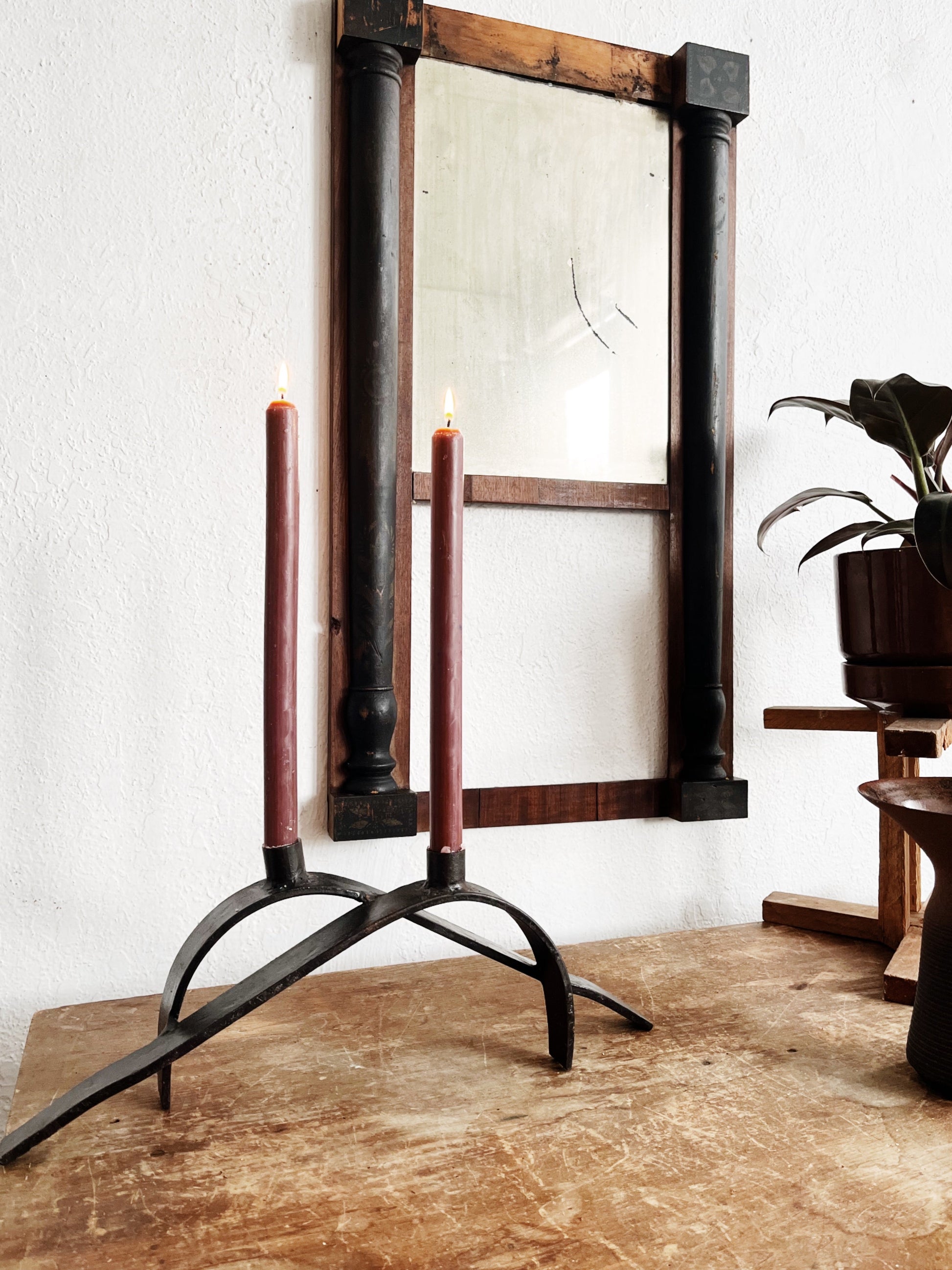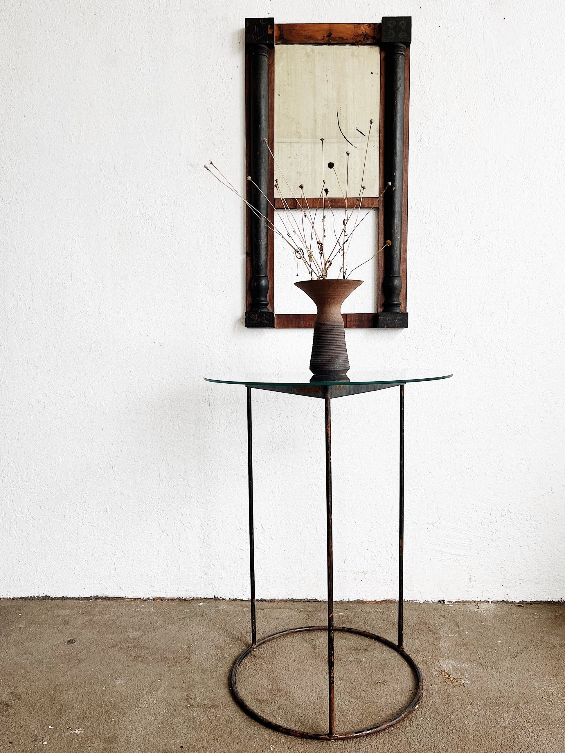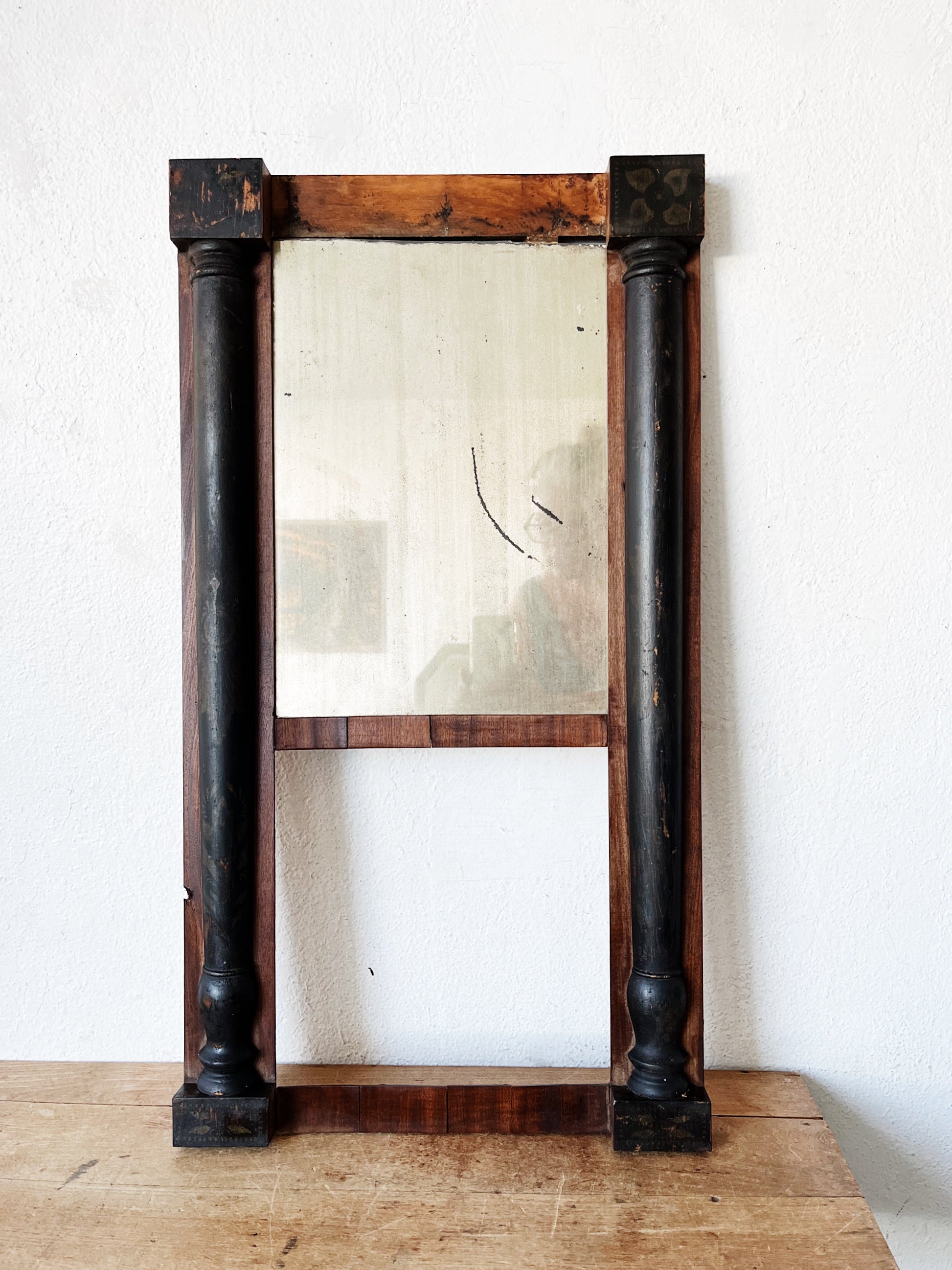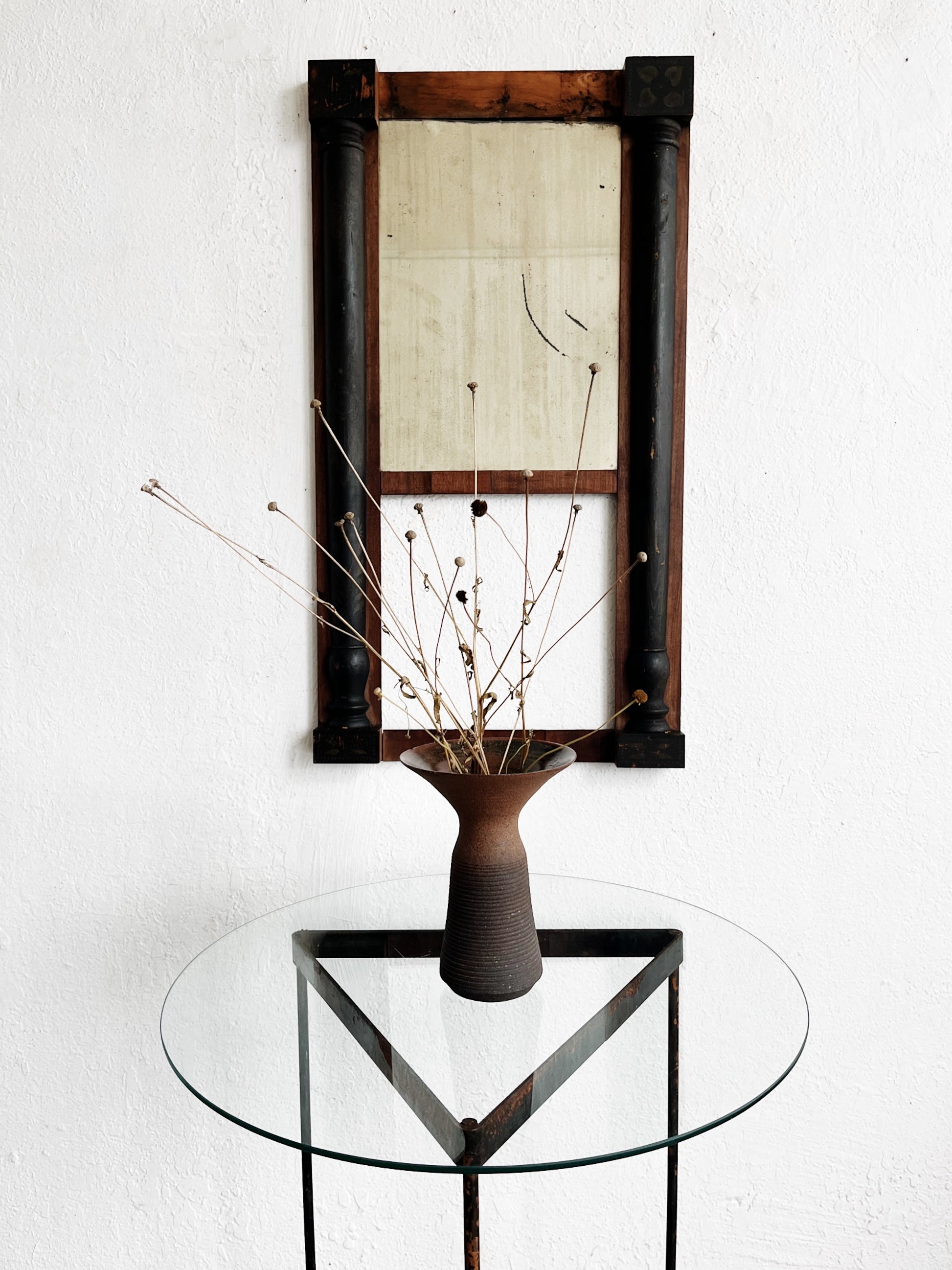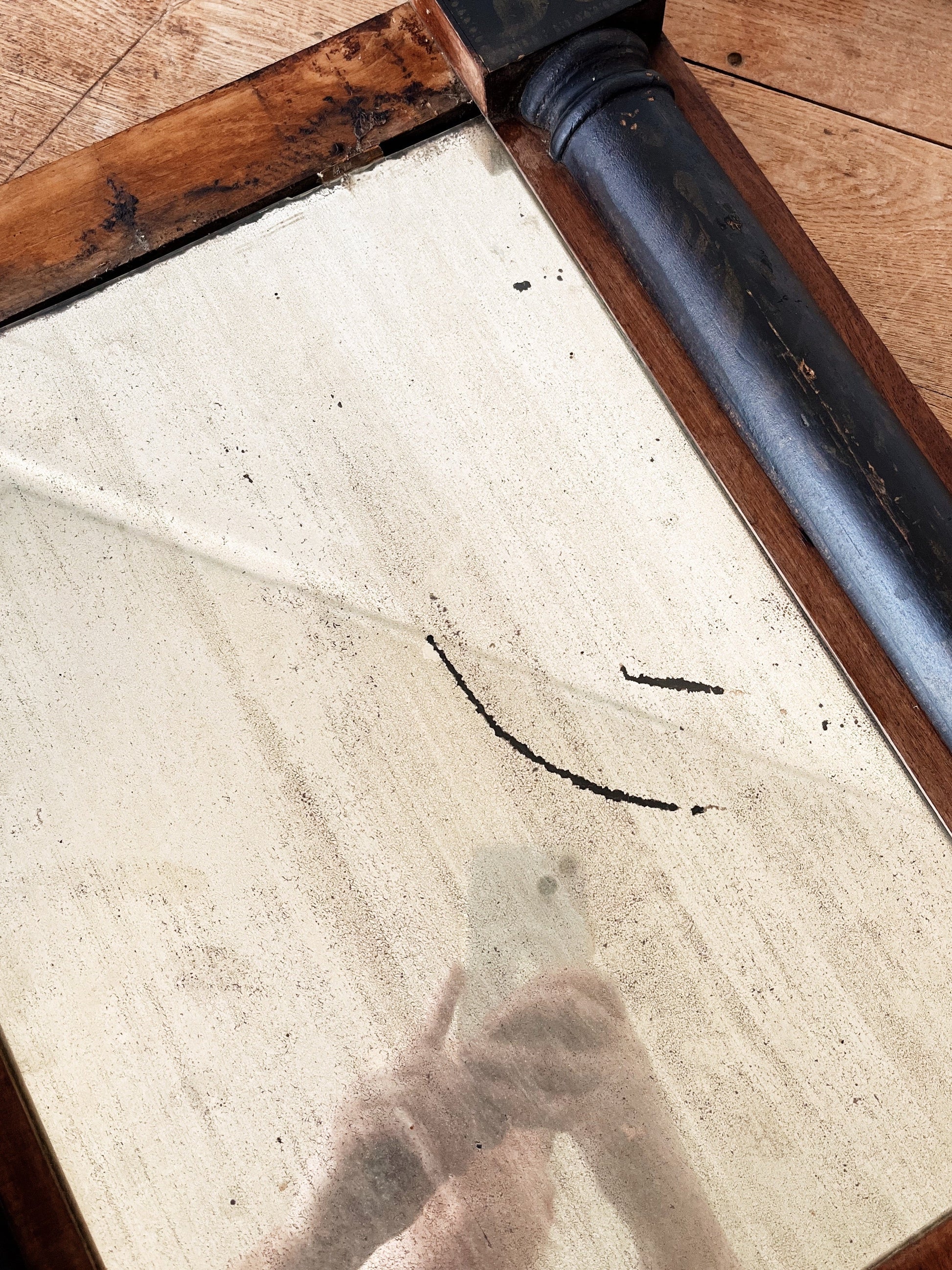 Beautiful old tole painted mirror. The glass is thin and the reflection is ghostly. A really lovely piece for the entry