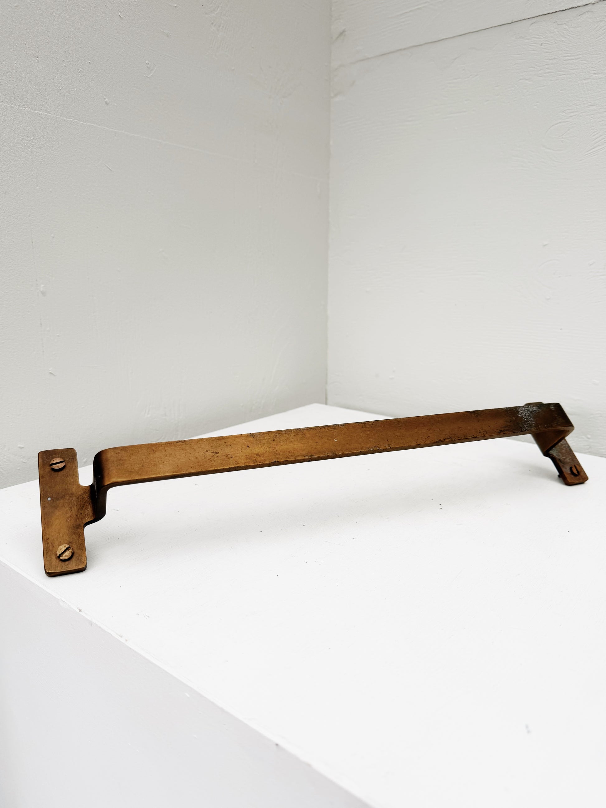 Two fab towel bars in nice shapes. The first is a solid bronze, aged to perfection. Nice squared off shape. The second is enamel paint over steel. More delicately curved.