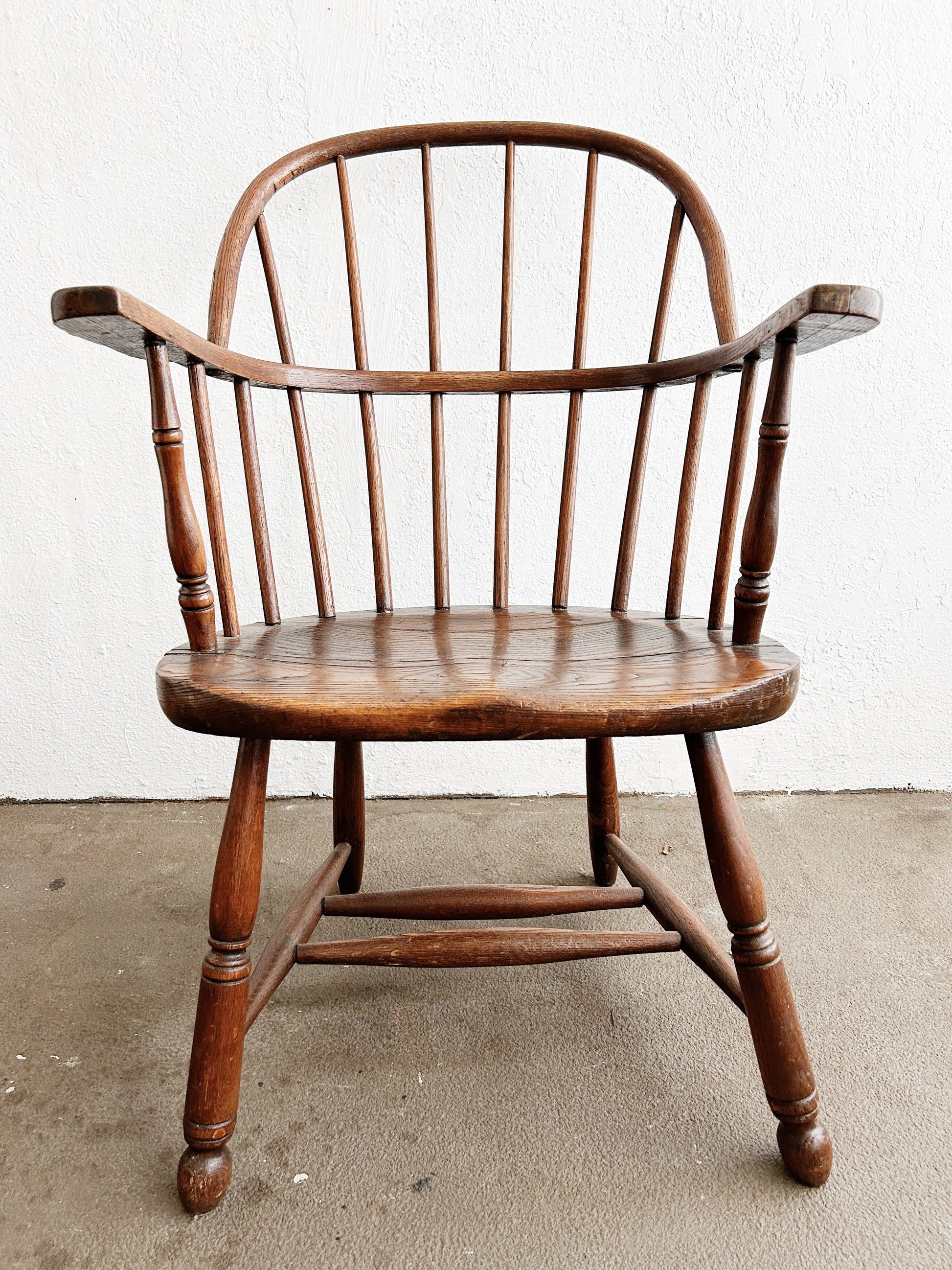 Gorgeous oldie. Extra wide and comfy, forces you to lean back a little and relax. The tone and grain on the wood is beautiful. Sturdy but a little rickety from age. Priced accordingly.