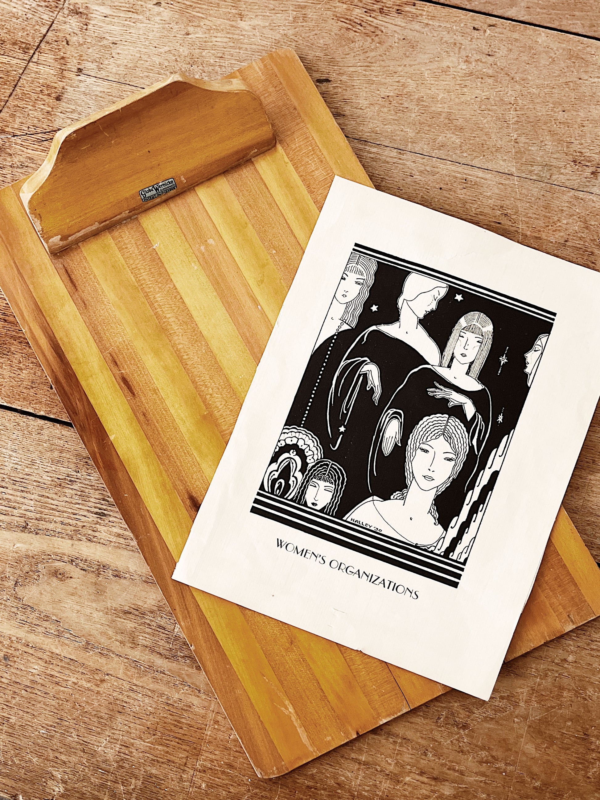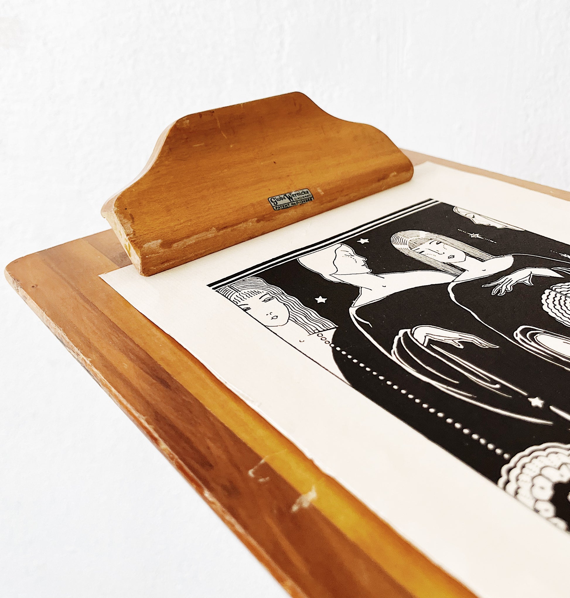 Antique Globe Weinerke wooden clipboard. Nice place for your to do list. Also displays art very well.