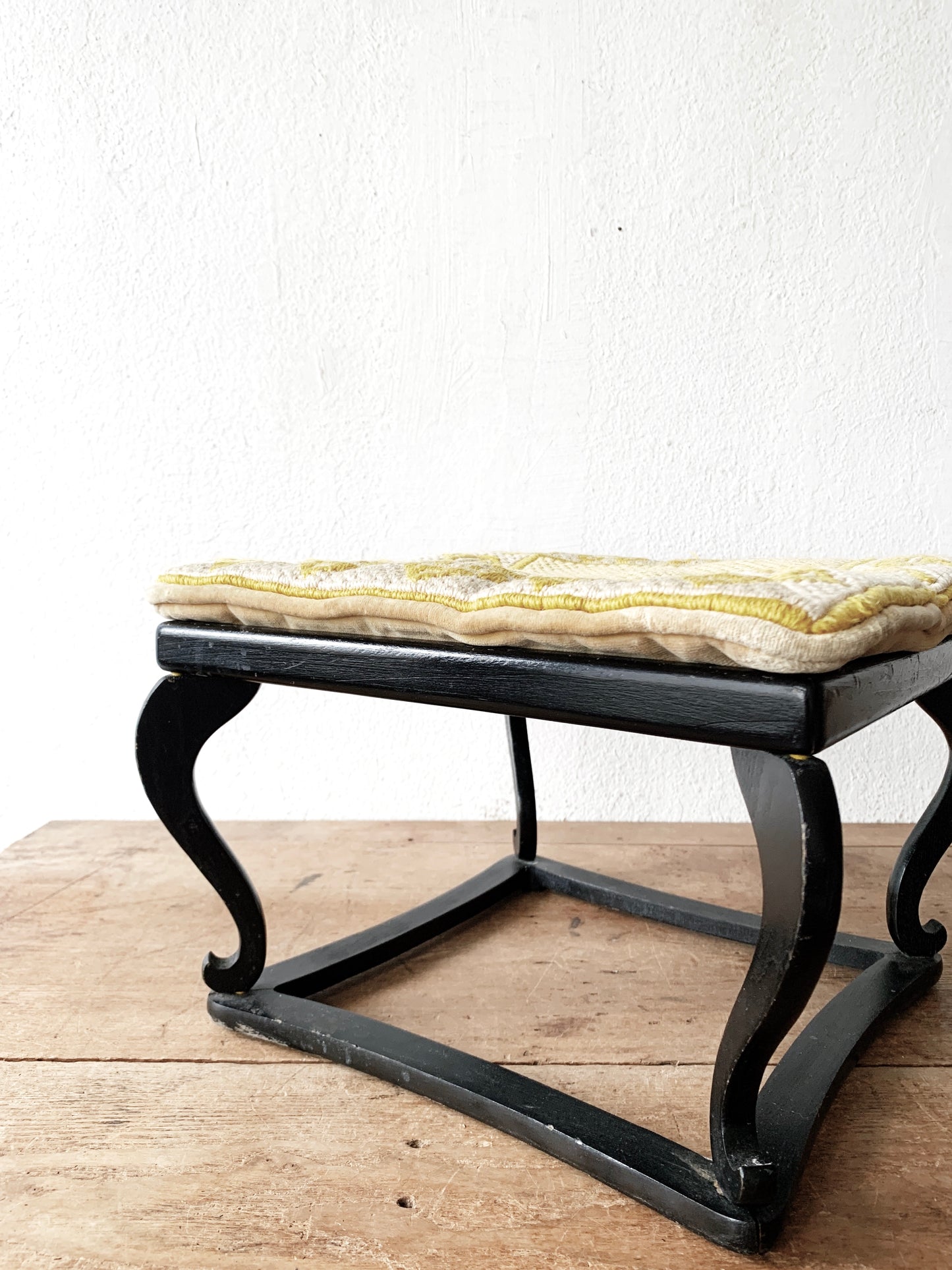 Antique Wood Stool with Cushion, Japan