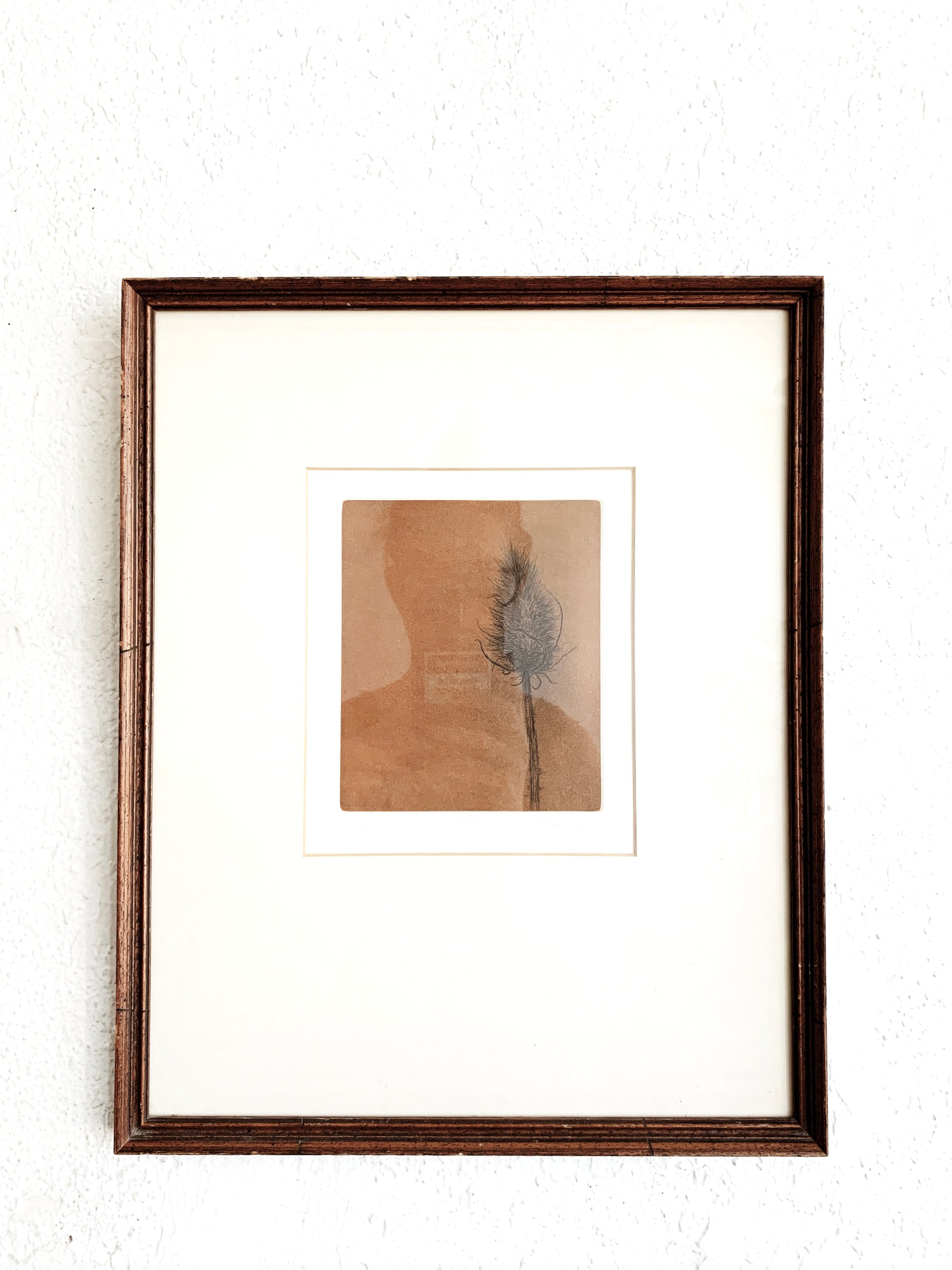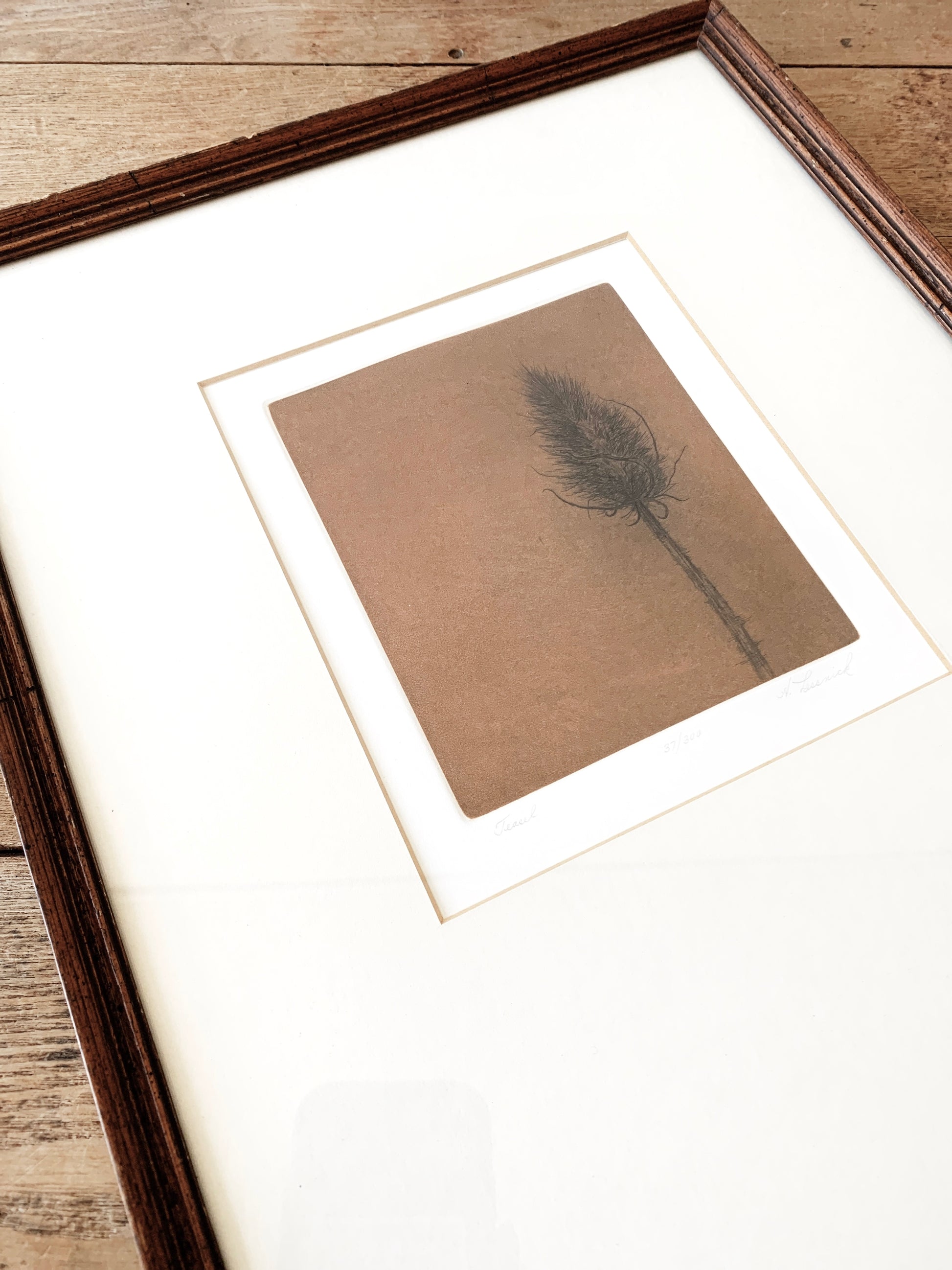 Vintage framed, signed numbered etching in vintage Wood under glass. 12.5x16”