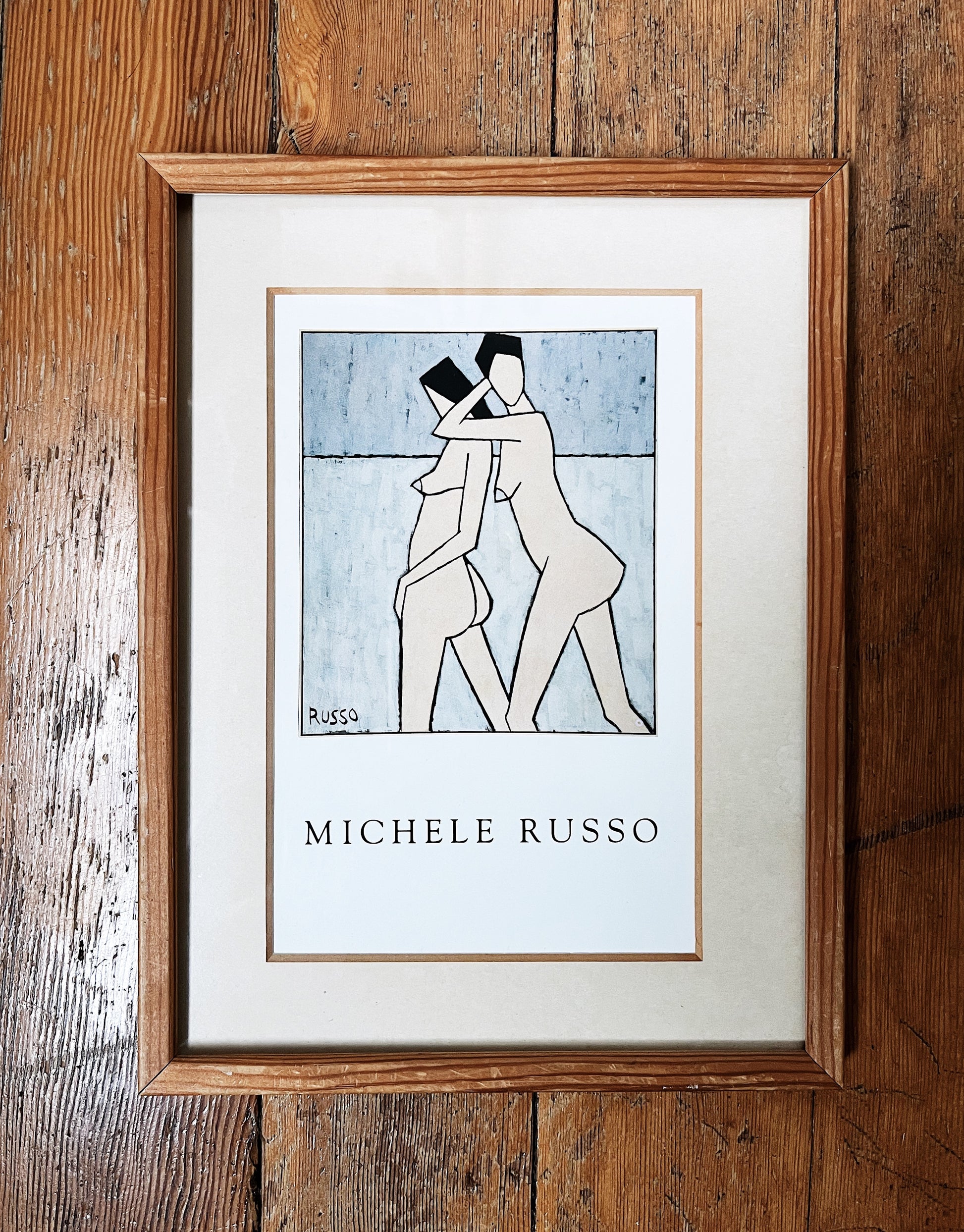 One of our favorites, Michelle Russo, art print framed in vintage wood under glass.