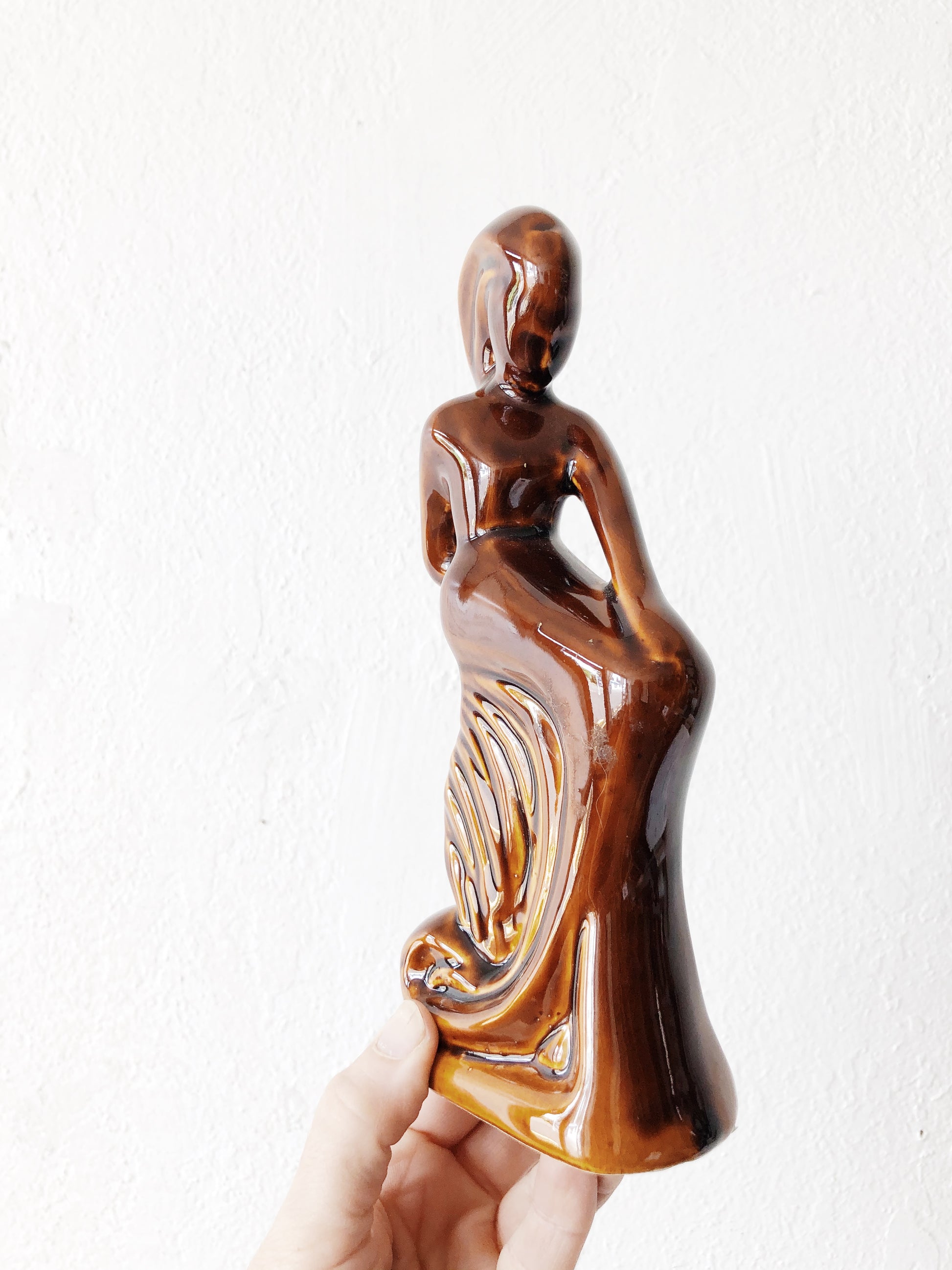 Gorgeous ceramic Art Deco statuette. Glazed brown ceramic