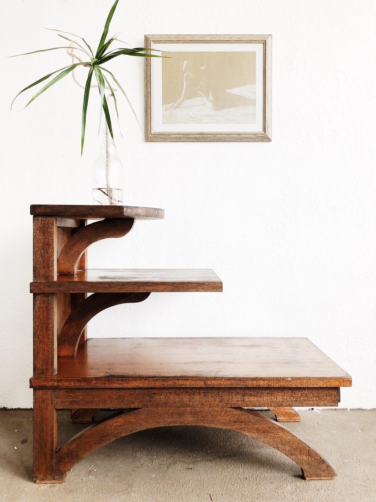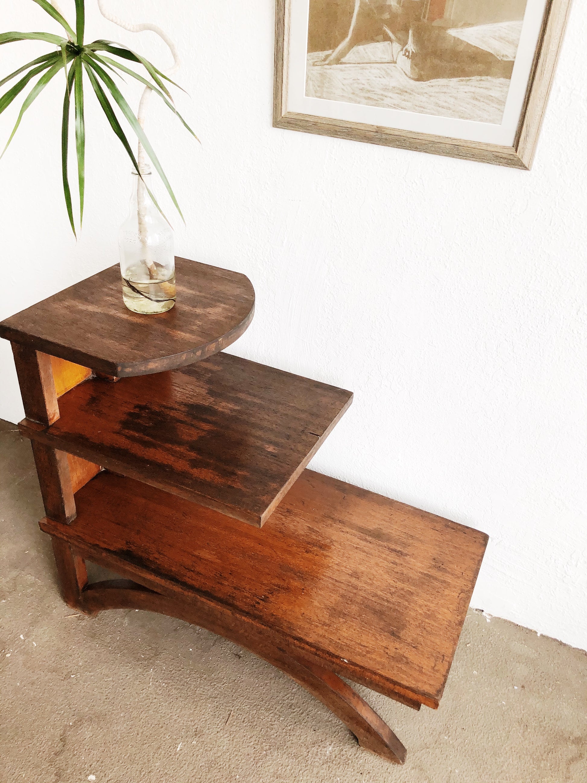 Gorgeous old deco era shelf or multi tier table. Style is fab. All over wear looks a bit less pronounced in person and doesn’t detract from this gorgeous piece