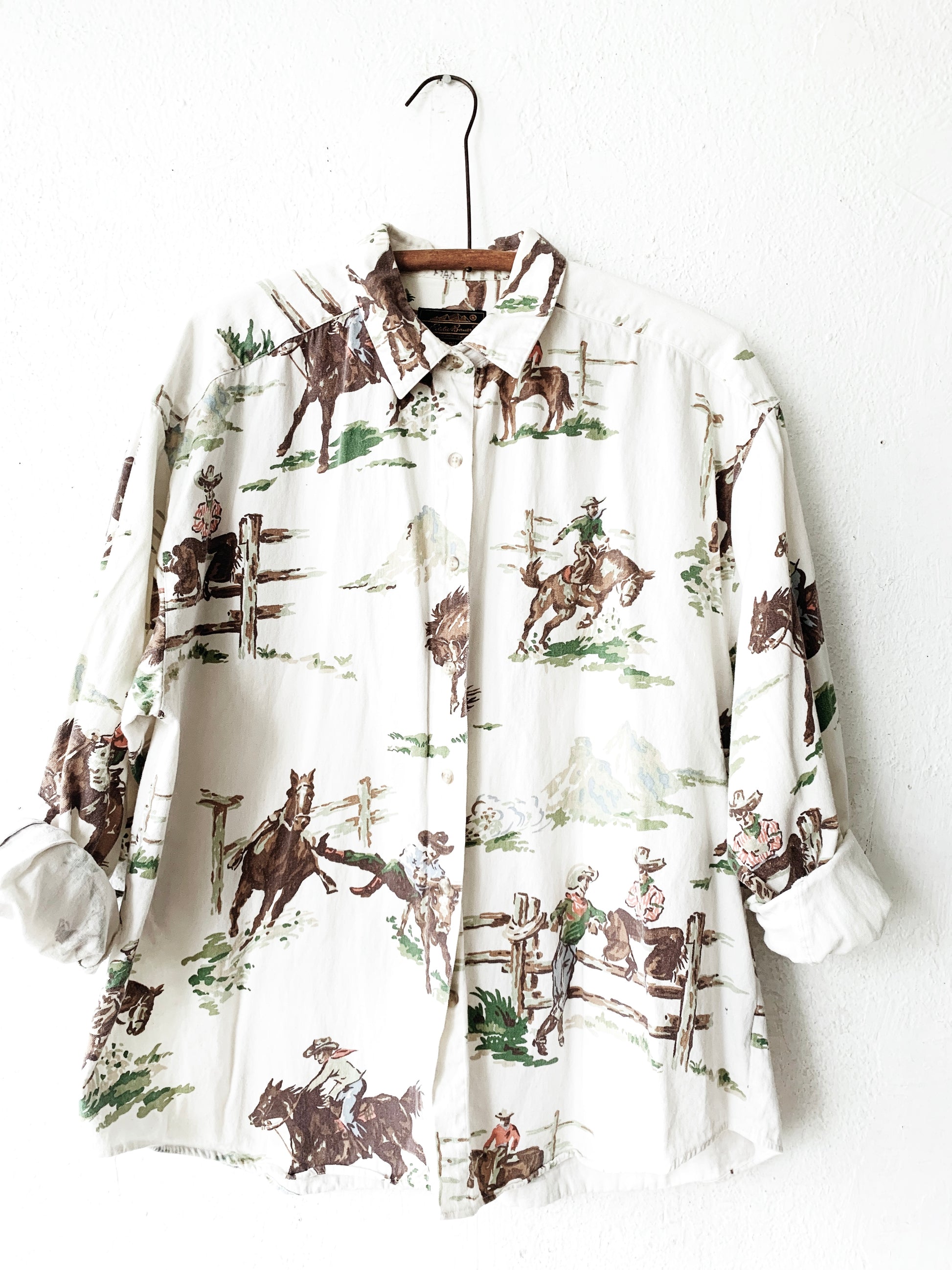 Vintage 100% cotton button up by Eddie Bauer. Women’s size large. Fits great as an oversized medium.