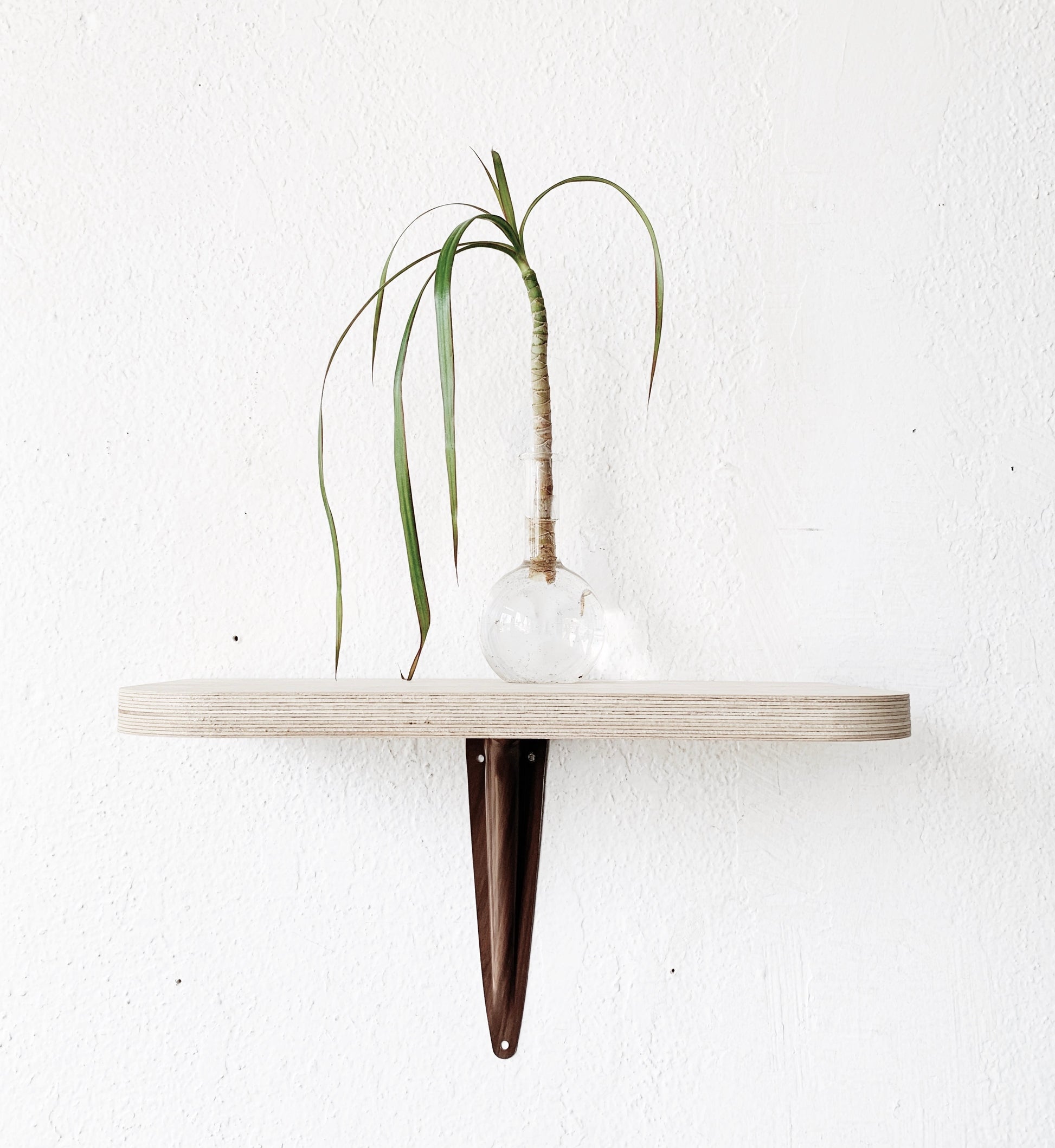Lovely and simple birch ply wall shelf with rounded corners. Metal bracket is sturdy and ready for attaching to the wall.
