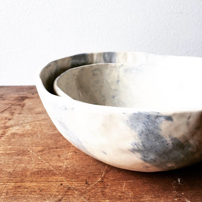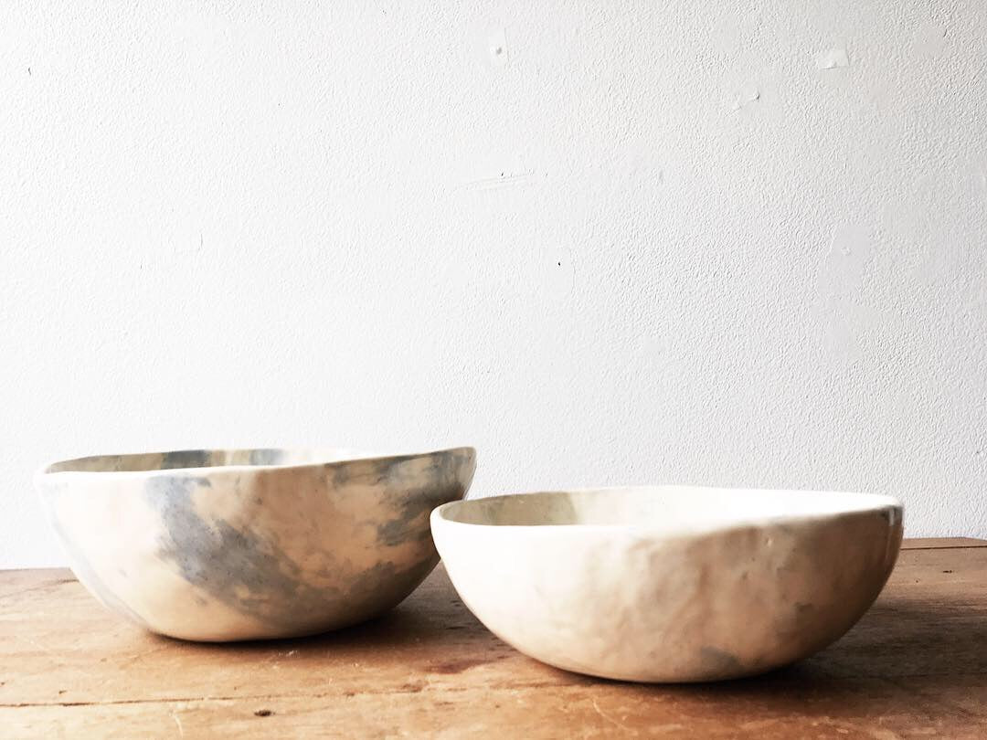 Beautiful handmade ceramic bowls with lovely organic shape and faintest touches of blue glaze. Reminiscent of the sky