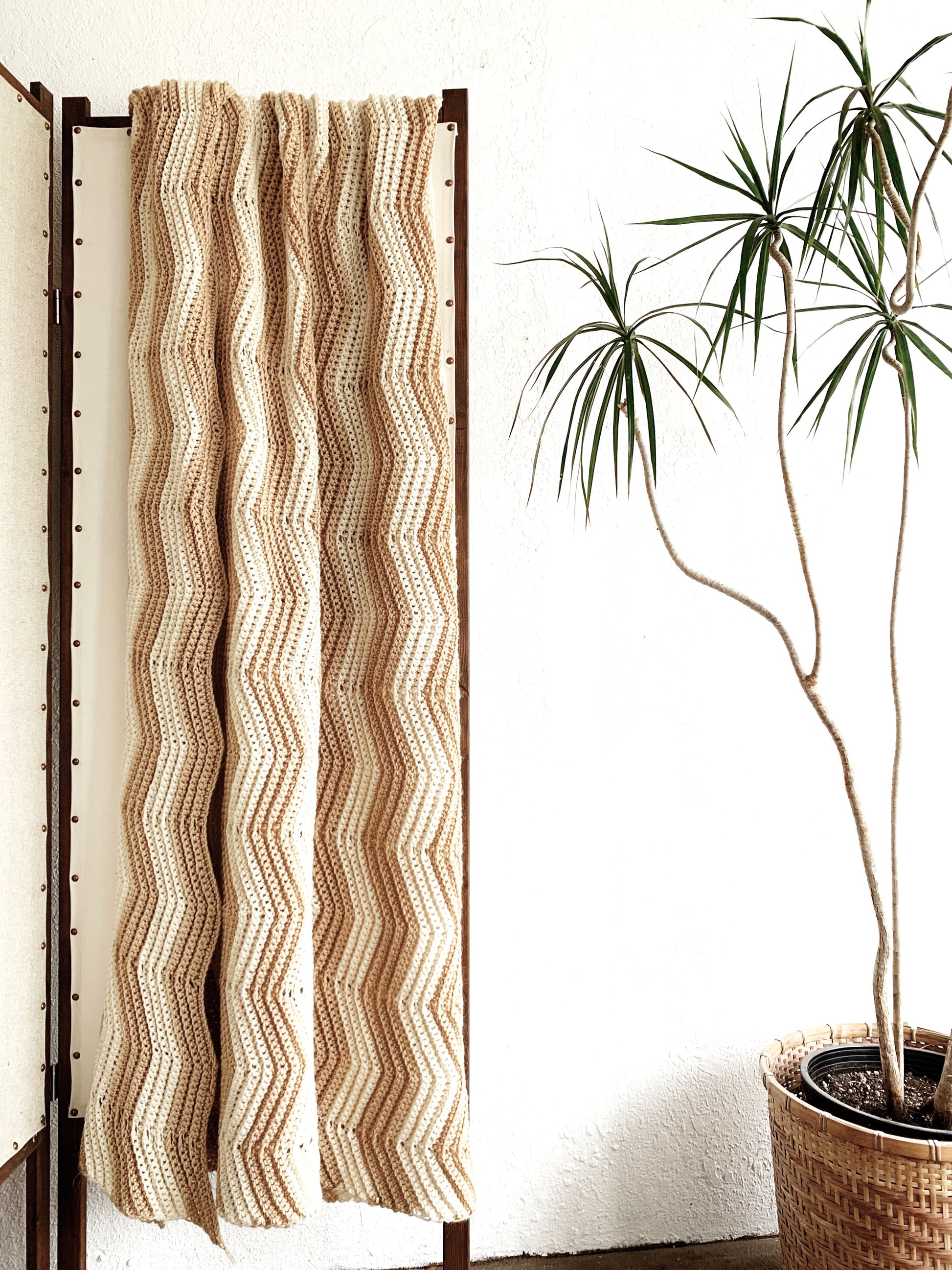 Super soft and neutral beige and ecru zig zag Afghan. It’s huge! Covers a full or Queen size bed. Excellent condition and again, so soft! Washable acrylic