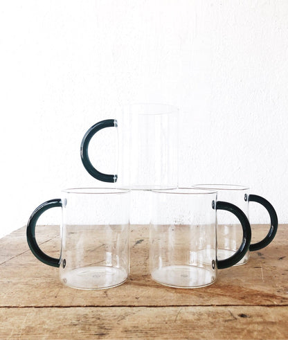 A set of four mouth blown heat safe mugs from FERM. The handles make this…a dark smokey blue grey
