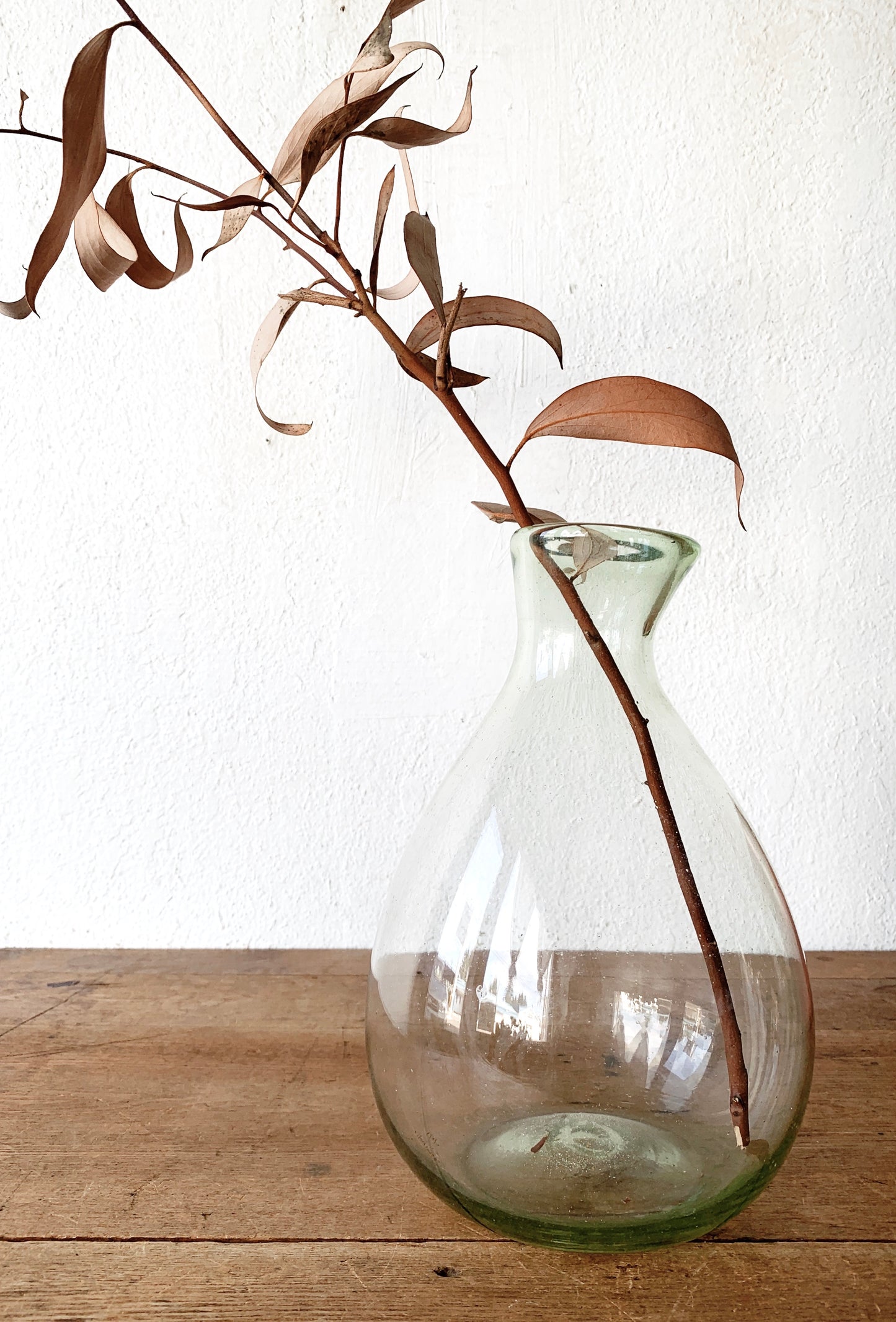 Pretty blown glass vase with off center, organically shaped neck. 11”
