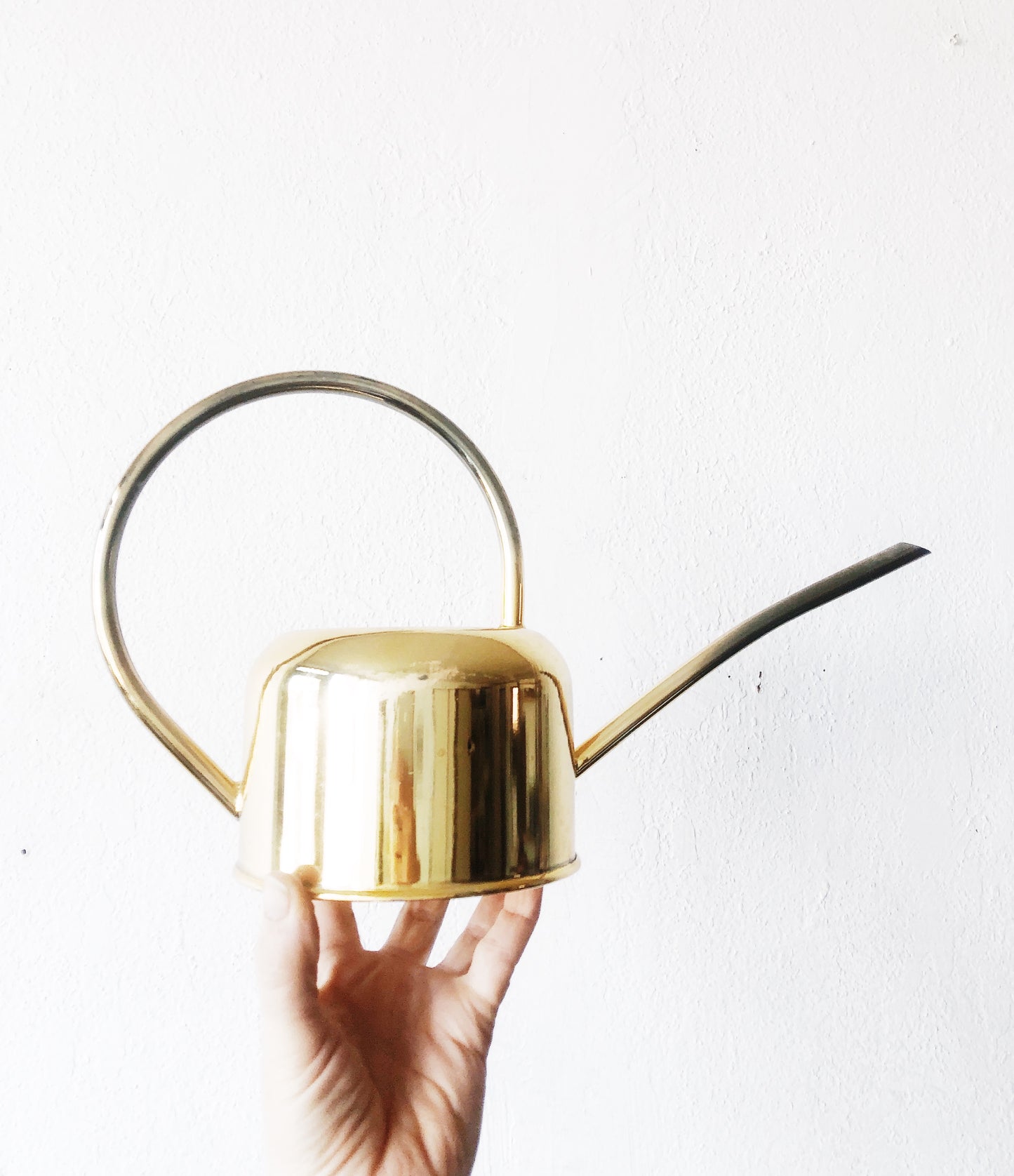 A nice little secondhand find. Solid brass or goldtone watering can with long spout