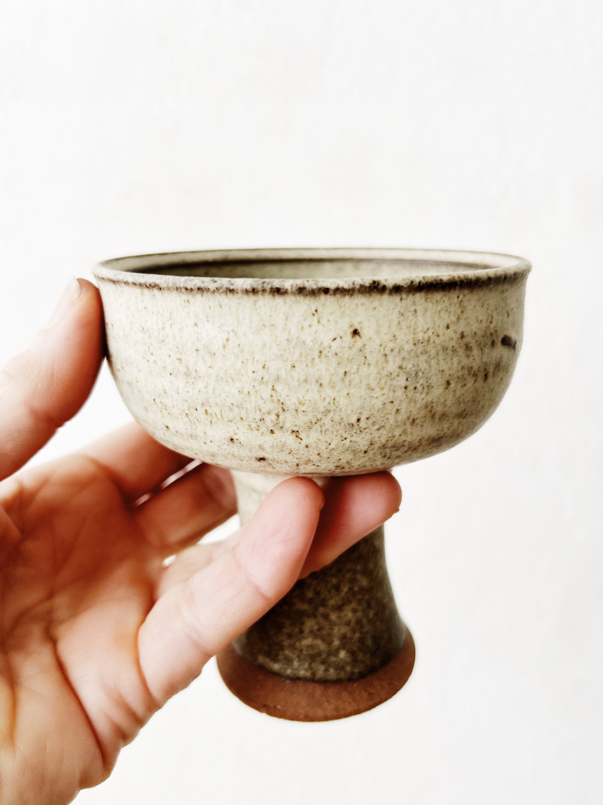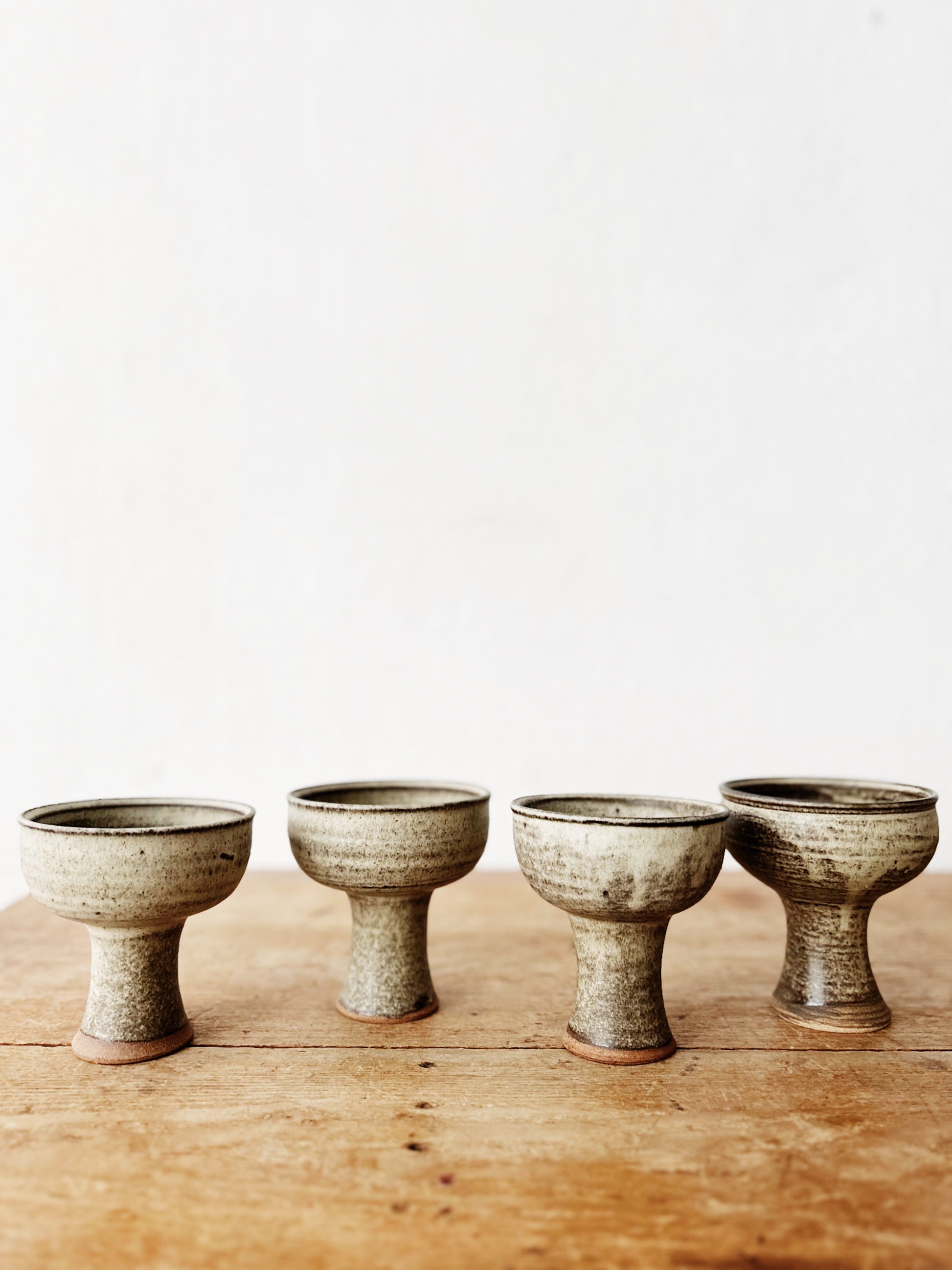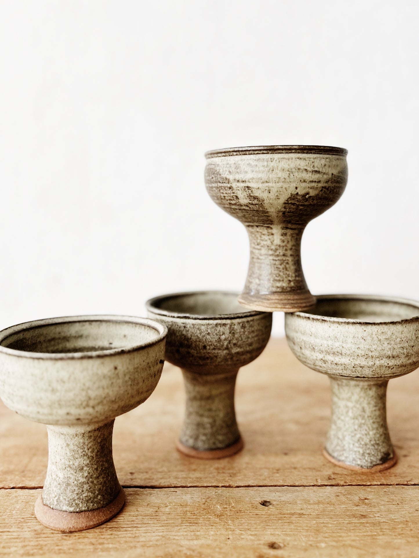 Wonderfully made coupe style goblets by reknown mid century California potter Bruce Anderson 1915-1986. These are just gorgeous. A real masters work. Each is unique yet they’re uniform in size and shape. Incredible feel, comfortable to hold, drinking from these is wonderful. The finish and form of the lip is perfection.