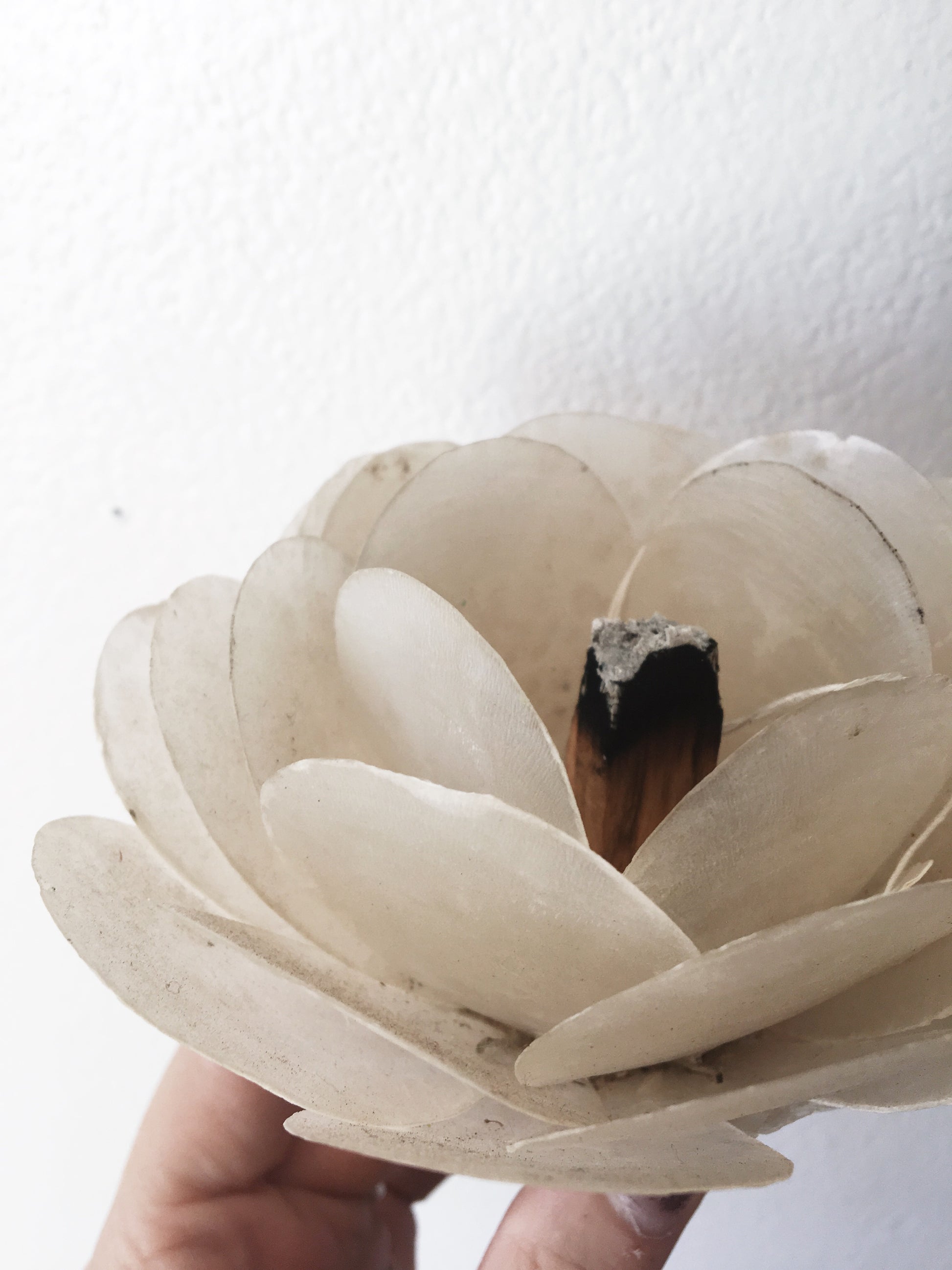 Capiz and Brass lotus candle or incense holder. Delicate and beautiful.