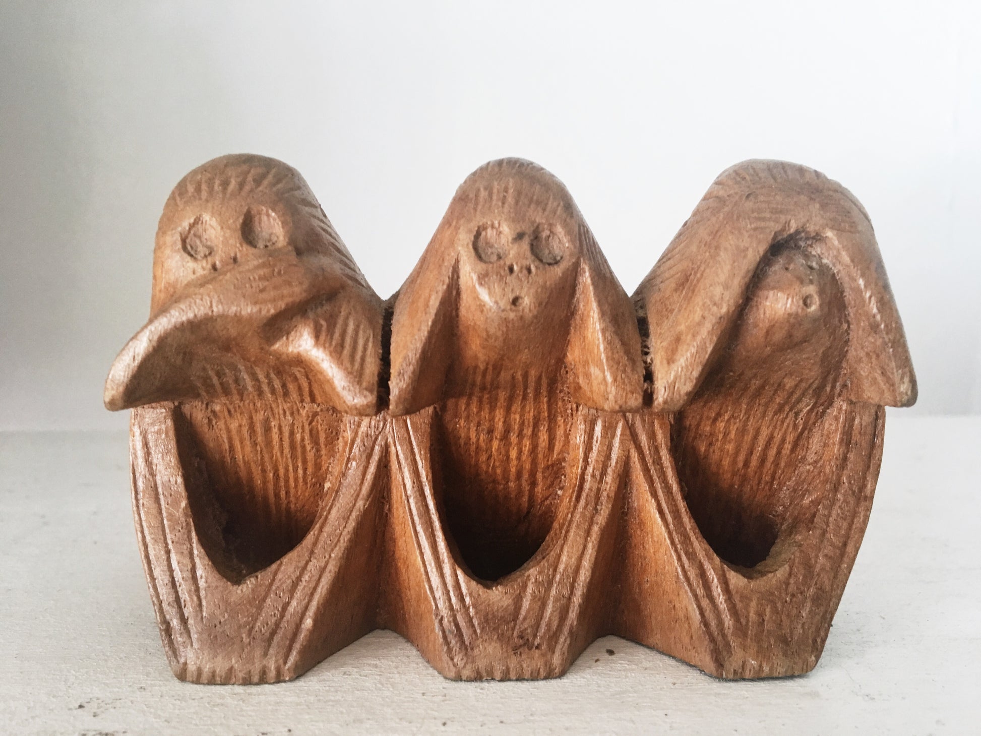 Speak no, hear no, see no evil. Nice little hand carved wood sculpture.