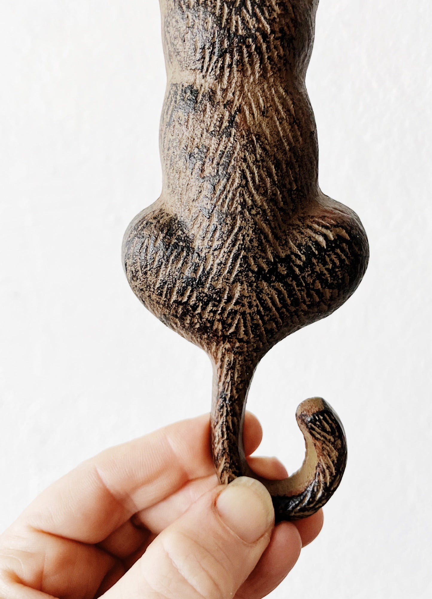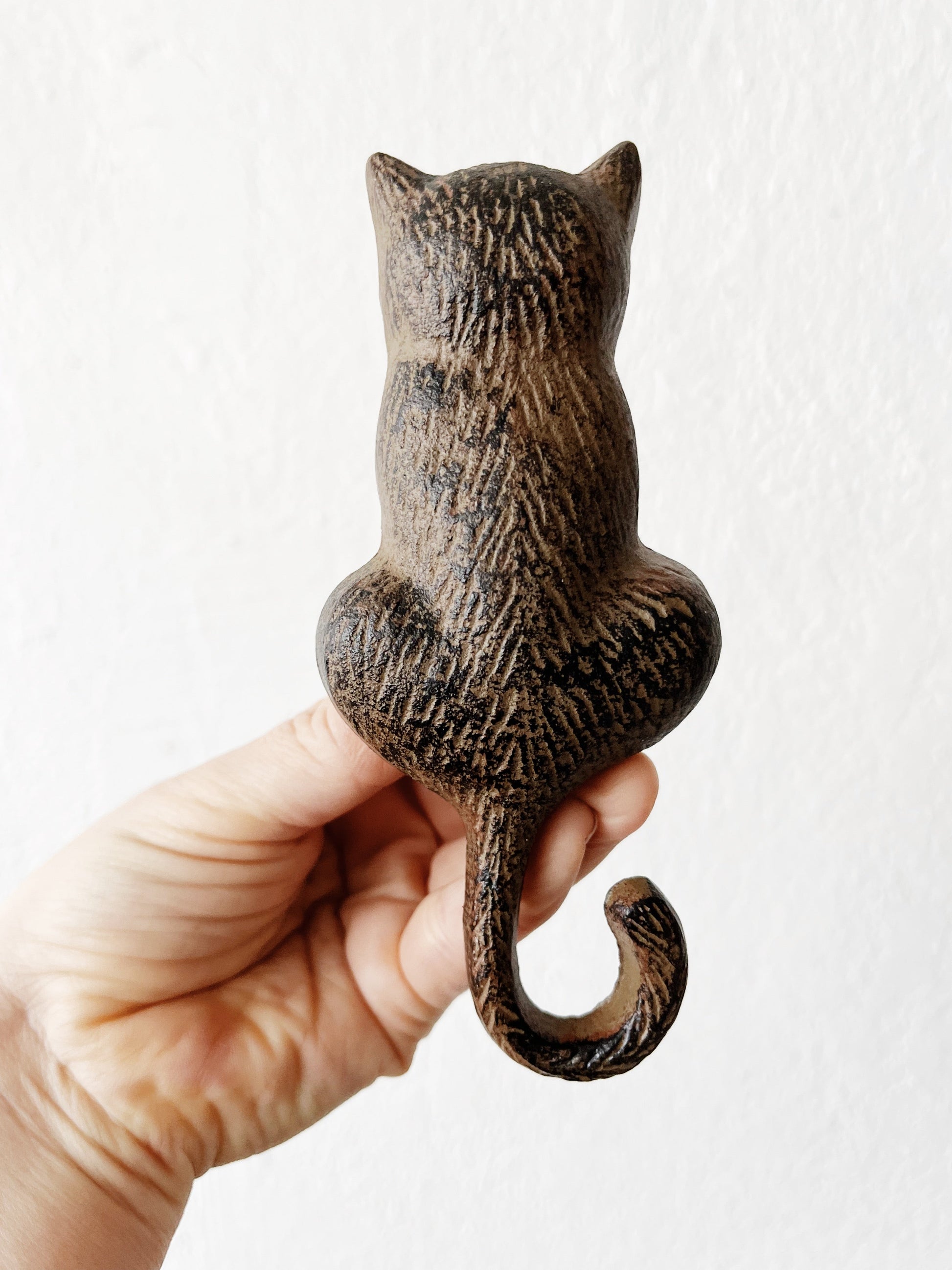 Sweet little sitting kitty. Raise the tail to knockity knock. Solid cast iron.