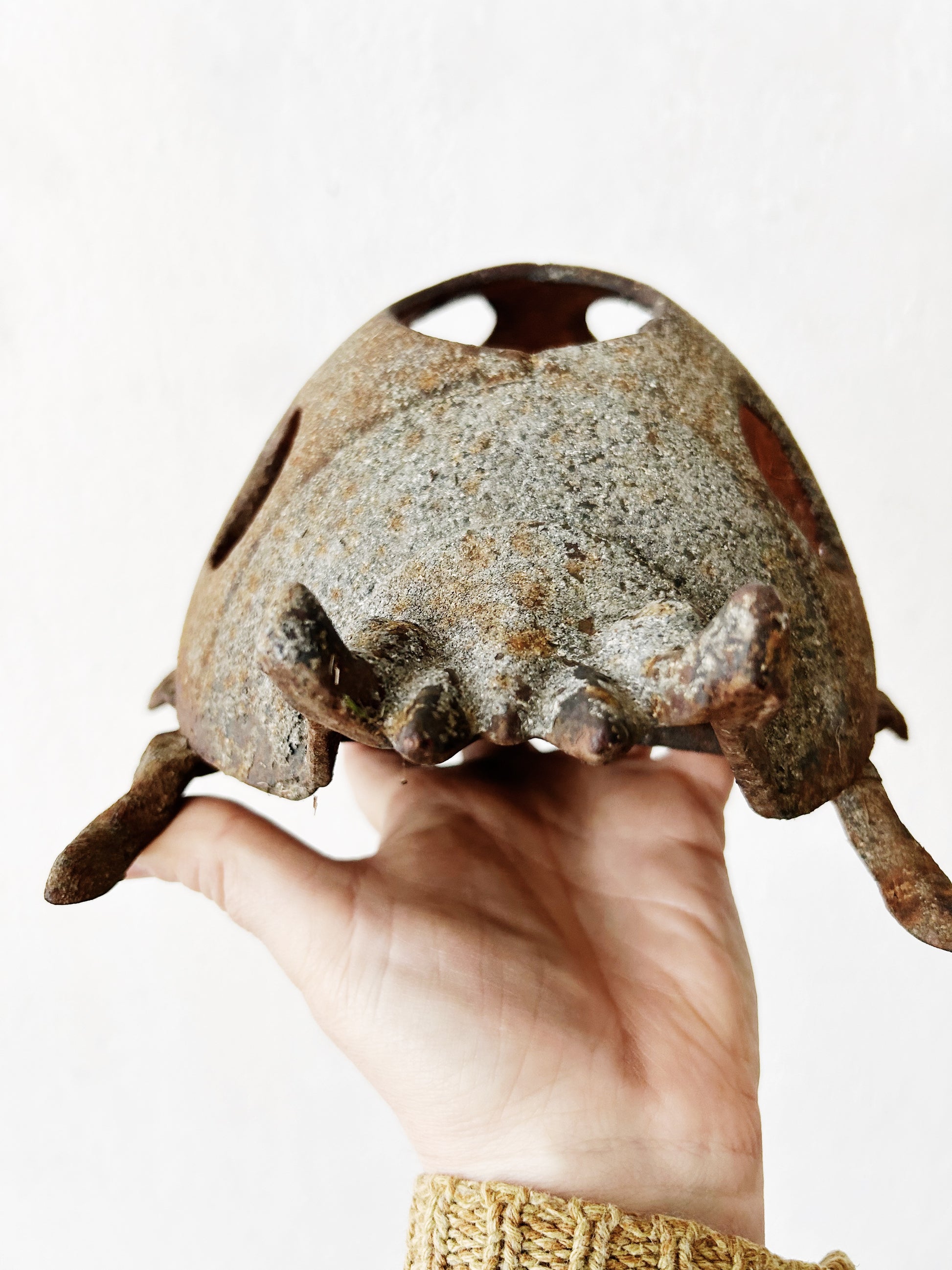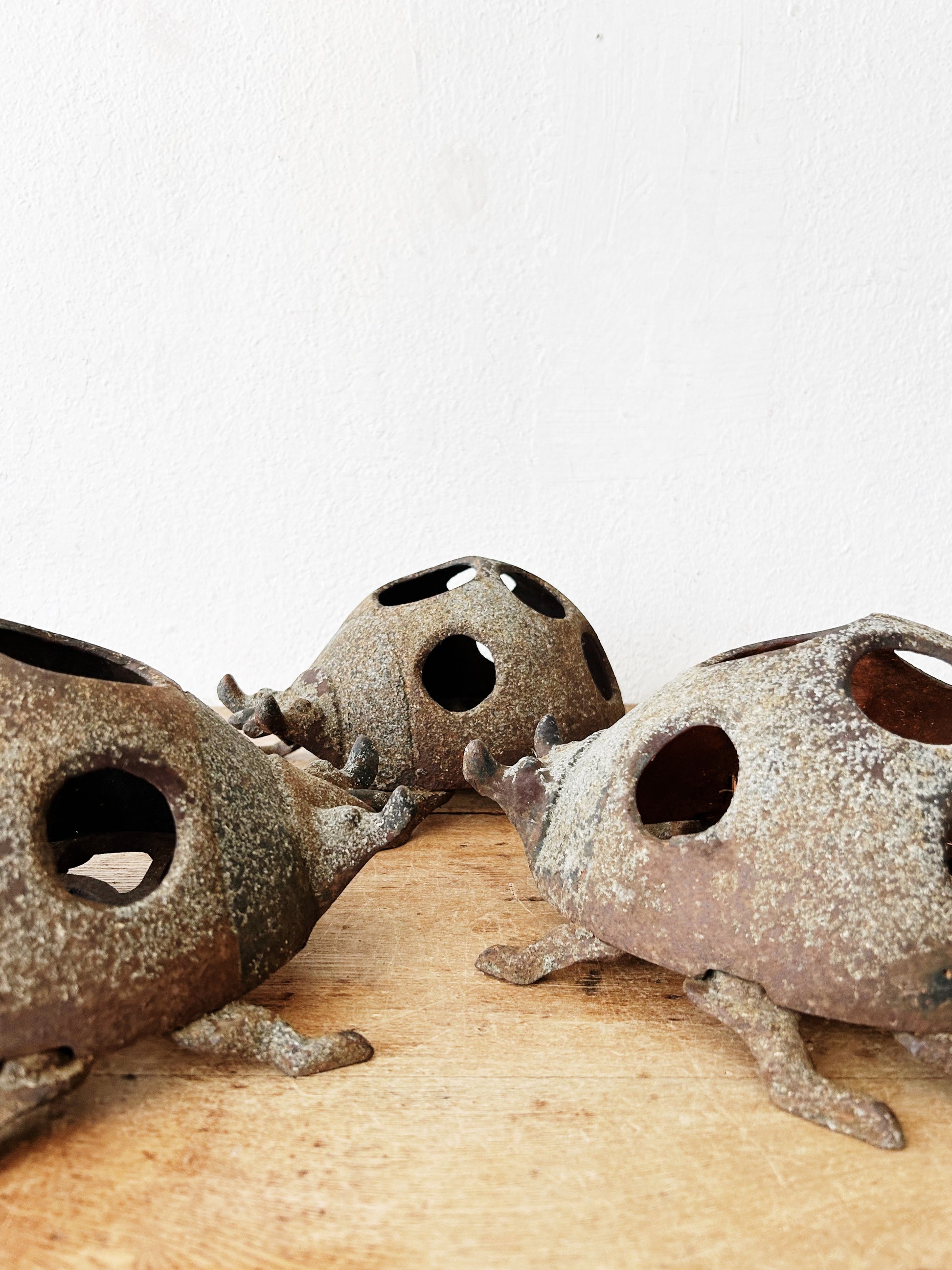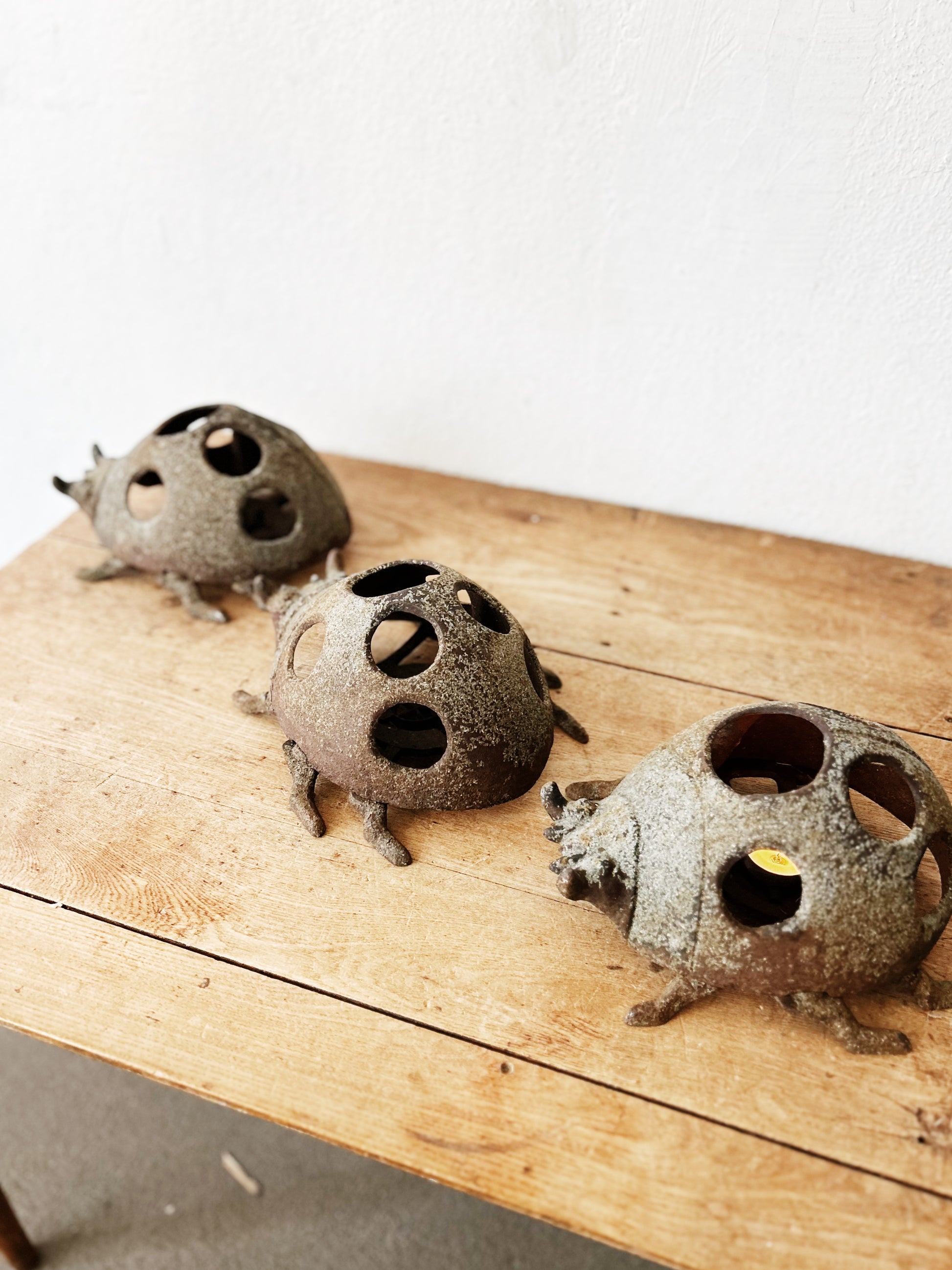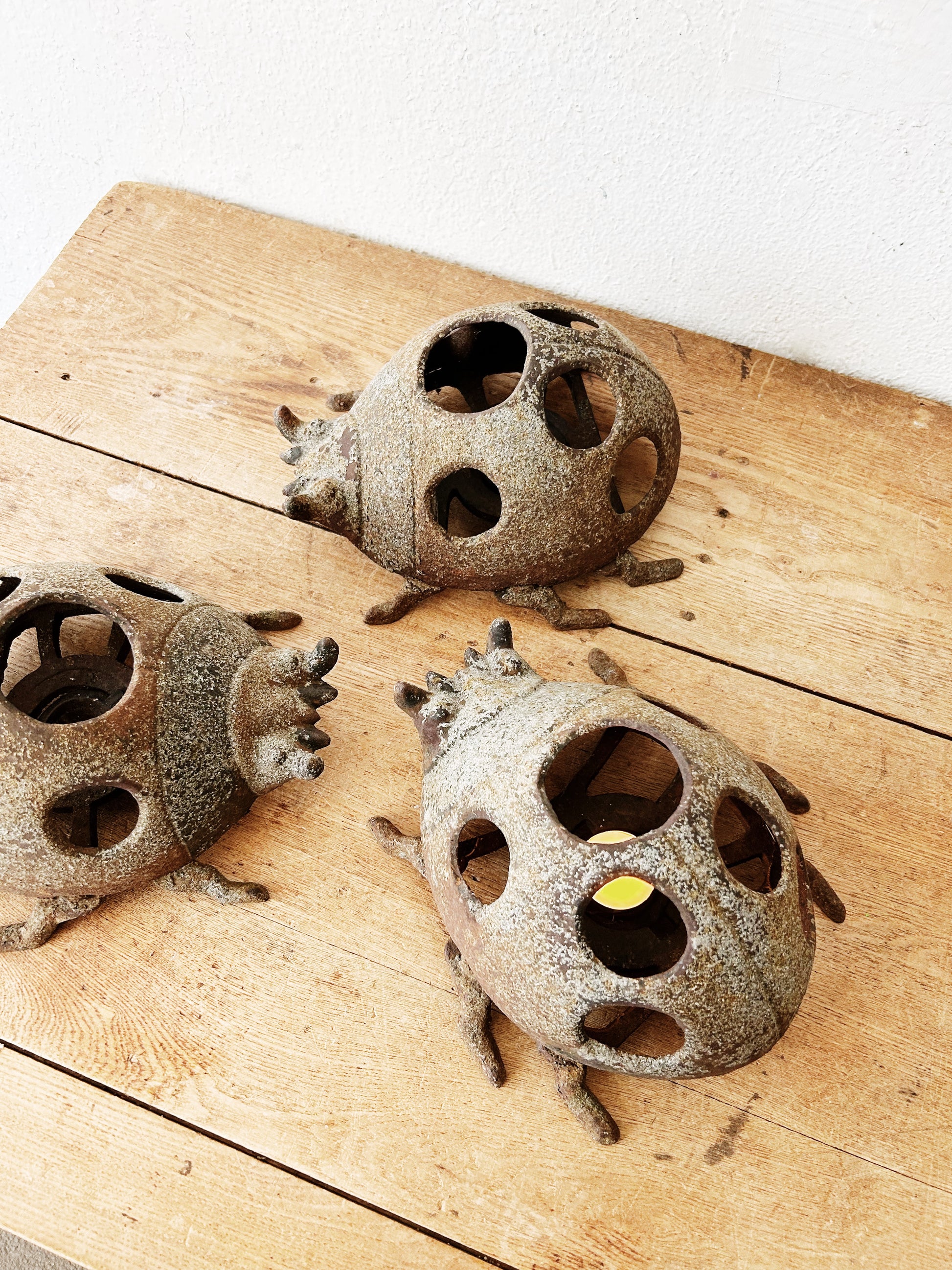 Good luck! Rare Japanese ladybug lantern in heavy cast iron. Beautiful patina. The cup on the bottom screws off to insert a tea light. Really pretty in the garden