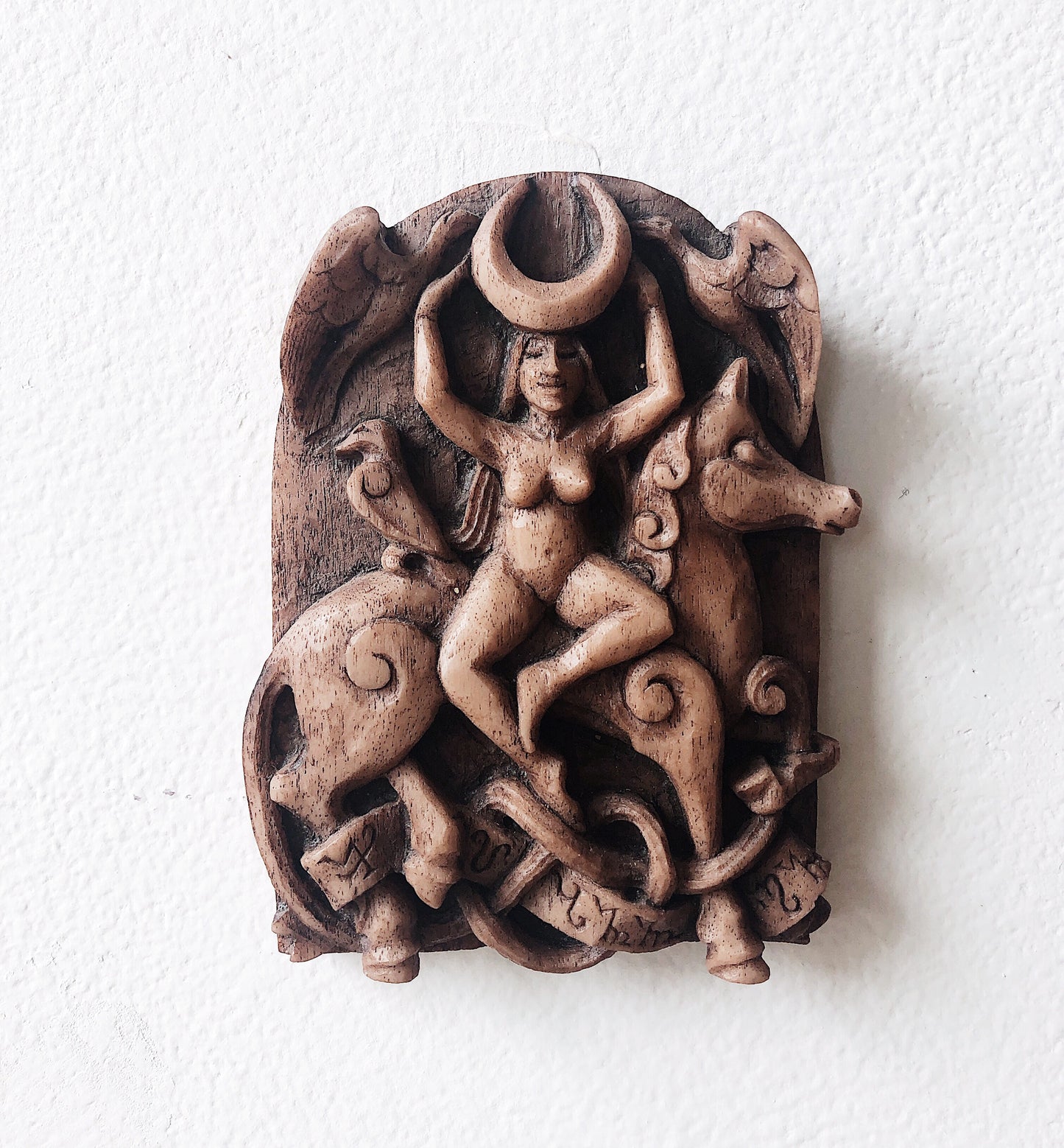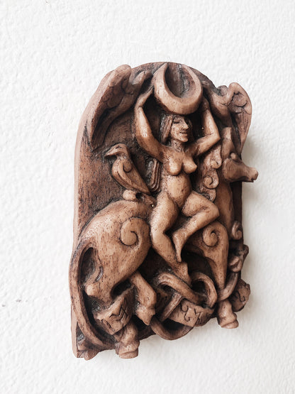 This resin plaque is intricately casted and has beautiful Wiccan imagery.