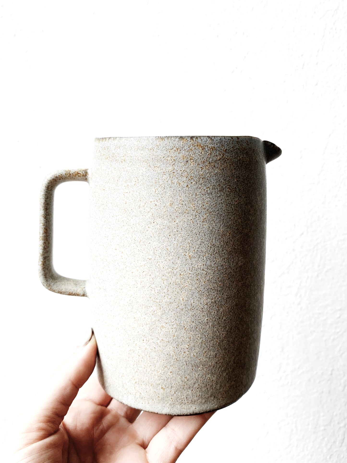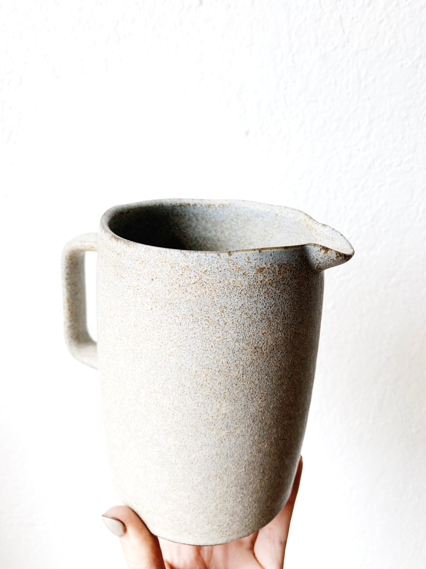 The most perfect, beautiful pitcher. Unmarked but Heath quality. Matte bluish grey mottled glaze. Perfect condition.
