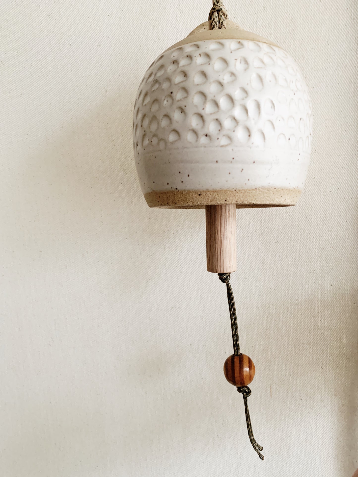the ceramic bell is gorgeous, and unmarked. 6” bell, 21” overall