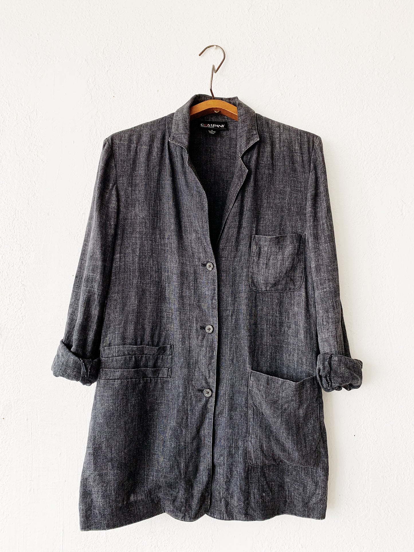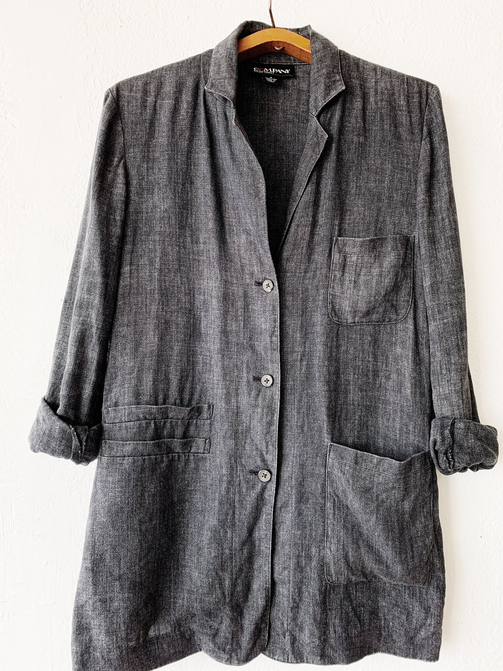 Fantastic charcoal grey 100% linen blazer by Ellen Tracy. Tagged a size 4, but it’s oversized. Check measurements!
