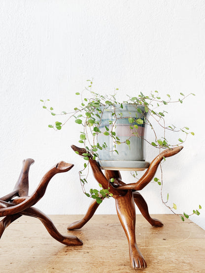 Collapsible carved wood stand in great condition. These are great for holding plants or large crystal specimens.