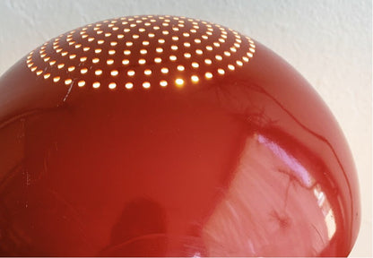 Great looking post modern lamp attributed to Lightolier from the 1970s. Cherry red enamel, features a well balanced and weighted cantilever design. Arm is stationary but the shade rotates and also removes