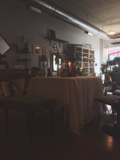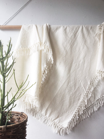 Pretty cotton tablecloth or textile with fringe. Creamy white, excellent condition. Nice large size